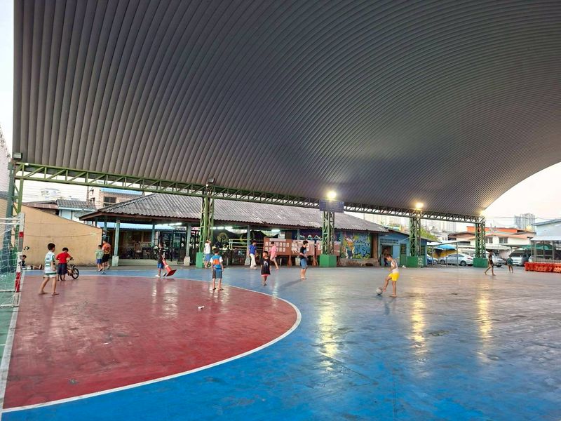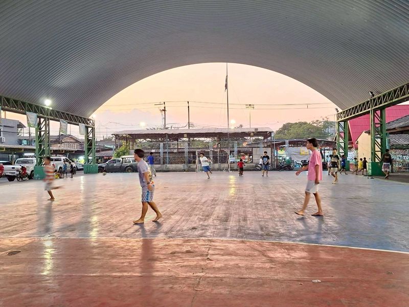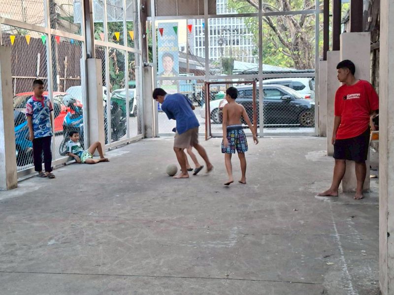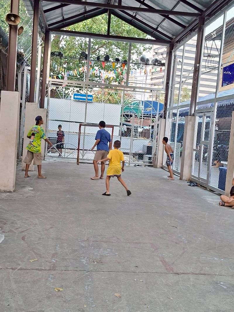 และเล่นกีฬาต่างๆ ภายในลานกีฬาของชุมชน