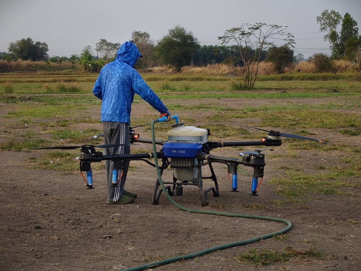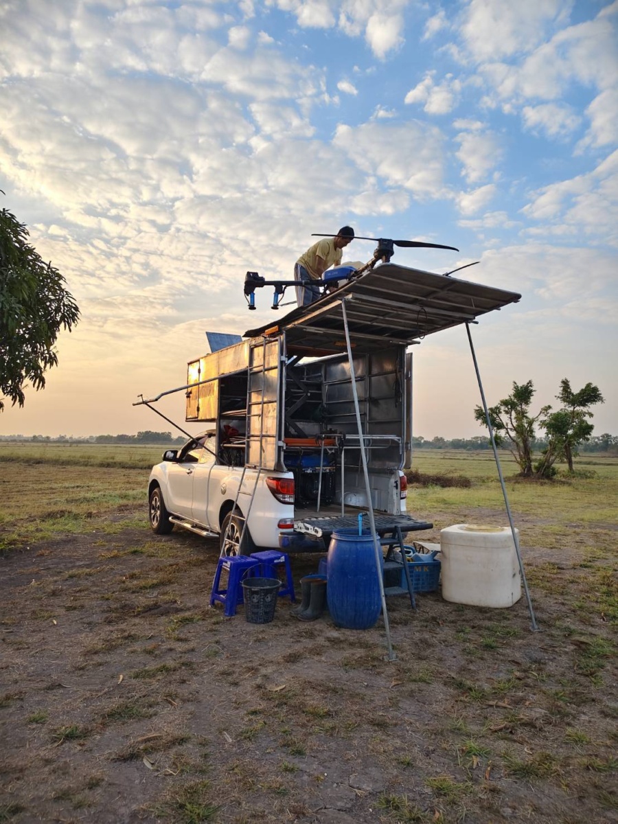 - การสนับสนุนจุลินทรีย์ย่อยสลายตอซัง–ฟางข้าว สำหรับพื้นที่นำร่องกว่า 1,000 ไร่ โดยใช้เทคโนโลยีการฉีดพ่นด้วยโดรน ที่ใช้น้ำเพียงประมาณ 8 ลิตรต่อไร่ ไม่จำเป็นต้องนำน้ำเข้าแปลงนา และสามารถใช้แหล่งน้ำทั่วไป ลดภาระและต้นทุนของเกษตรกร