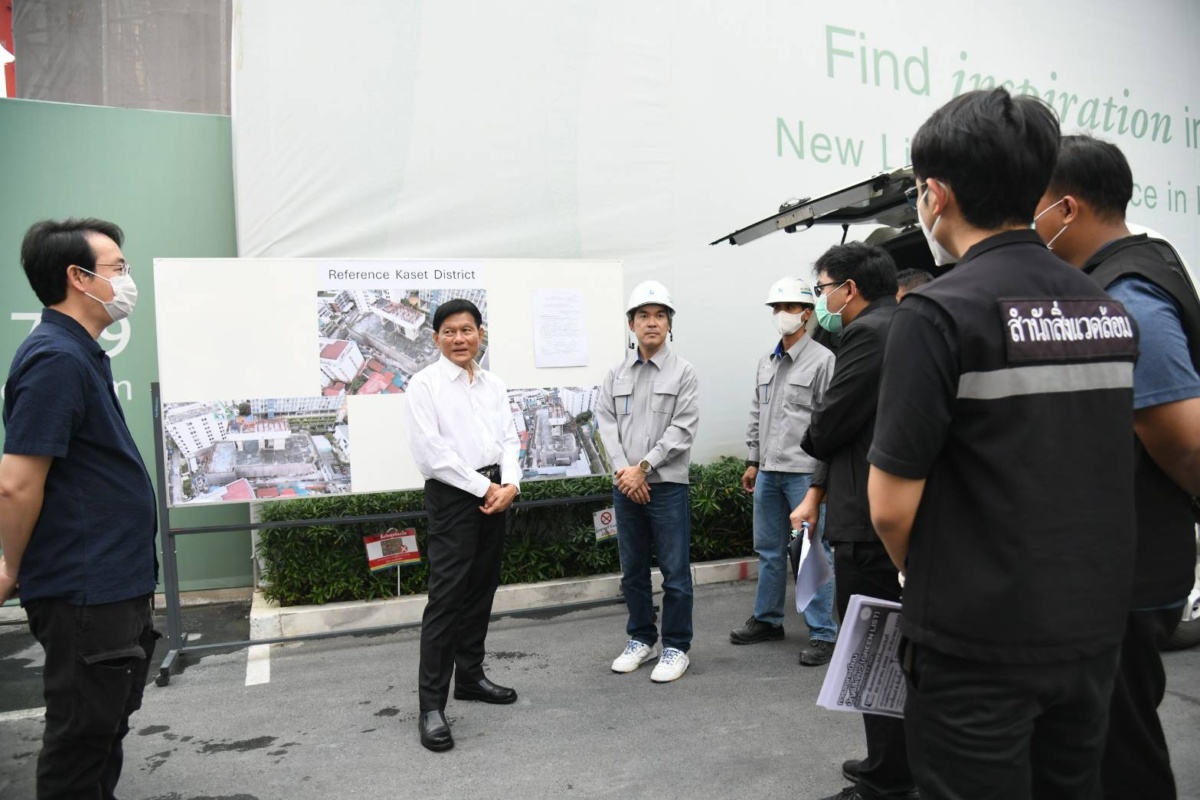 ตรวจมาตรการป้องกันและแก้ไขปัญหาฝุ่น PM2.5 โครงการก่อสร้าง Reference Kaset District (เรฟเฟอเรนซ์ เกษตร ดิสทริค) ถนนงามวงศ์วาน ซึ่งเป็นการก่อสร้างอาคารพักอาศัย ความสูง 21 ชั้น จำนวน 1 อาคาร ผู้ประกอบการจะต้องปฏิบัติตามวิธีและเงื่อนไขแนบท้ายใบอนุญาตในการก่อสร้างตามกฎกระทรวงฉบับที่ 4 (พ.ศ.2526) และแก้ไขเพิ่มเติมตามกฎกระทรวง ฉบับที่ 67 (พ.ศ.2563) และมาตรการป้องกันและแก้ไขปัญหาผลกระทบสิ่งแวดล้อม ตามรายงานการประเมินผลกระทบสิ่งแวดล้อม (EIA) ทั้งนี้ รองผู้ว่าราชการกรุงเทพมหานคร ได้กำชับผู้ประกอบการให้ปฏิบัติตามมาตรการป้องกันฝุ่น PM2.5 อย่างเคร่งครัด ตรวจสอบความสูงของรั้วโดยรอบให้มีความสูงไม่น้อยกว่า 6 เมตร ติดตั้งผ้าใบคลุมอาคารที่กำลังก่อสร้าง ตรวจสอบเครื่องพ่นละอองน้ำให้สามารถทำงานได้อย่างเต็มประสิทธิภาพและเปิดใช้งานตลอดเวลาการทำงาน ฉีดล้างทำความสะอาดล้อรถบรรทุกและรถโม่ปูนก่อนออกจากโครงการ ติดตั้งเครื่องวัดค่าฝุ่น PM2.5 ด้านในพื้นที่ก่อสร้าง และย้ายจอแสดงผลออกมาไว้ด้านหน้าโครงการให้มองเห็นได้ชัดเจน ตรวจวัดค่าควันดำรถบรรทุกให้อยู่ในเกณฑ์มาตรฐานตามรอบที่กำหนด รวมถึงนำรถบรรทุกในโครงการลงทะเบียนบัญชีสีเขียว (Green List) ให้เรียบร้อย