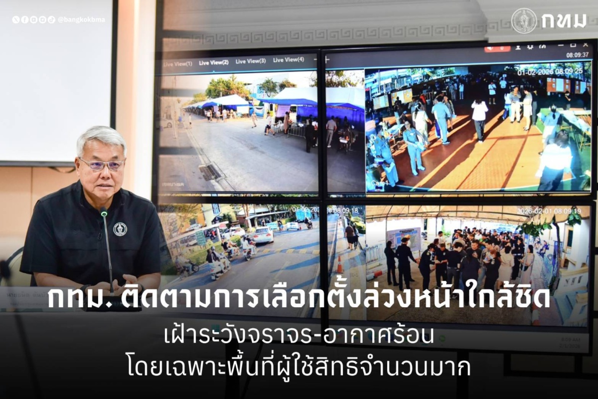 (1 ก.พ. 69) กรุงเทพมหานคร ได้จัดตั้งศูนย์ติดตามสถานการณ์กรุงเทพมหานคร ณ ห้องเจ้าพระยา ศาลาว่าการกรุงเทพมหานคร (เสาชิงช้า) ระหว่างเวลา 06.00 – 18.00 น. เพื่อติดตามสถานการณ์และประสานการปฏิบัติงานให้การจัดการเลือกตั้งล่วงหน้าในพื้นที่กรุงเทพมหานครเป็นไปด้วยความเรียบร้อย