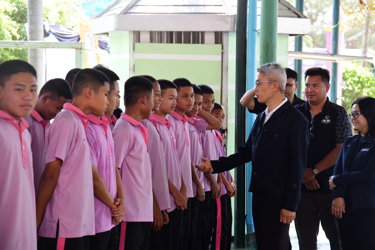 จากนั้น รองปลัดฯ ไทวุฒิ ได้ตรวจเยี่ยมและให้กำลังใจน้อง ๆ นักกีฬาเยาวชนกรุงเทพมหานคร ณ โรงเรียนวัดทองสัมฤทธิ์ เขตมีนบุรี เพื่อรับฟังการดำเนินงานและการดูแลพัฒนาเยาวชนด้านการศึกษา โดยได้พูดคุยสอบถามถึงการเรียน การฝึกซ้อม การพัฒนาศักยภาพนักกีฬา ตลอดจนความเป็นอยู่และสวัสดิการของนักกีฬาเยาวชน พร้อมให้กำลังใจน้อง ๆ นักกีฬาในการฝึกฝนพัฒนาตนเองอย่างต่อเนื่อง มีวินัย และใช้กีฬาเป็นพื้นฐานในการสร้างเสริมสุขภาพที่แข็งแรง ควบคู่กับการเรียนรู้ด้านคุณธรรม จริยธรรม และการอยู่ร่วมกันในสังคม