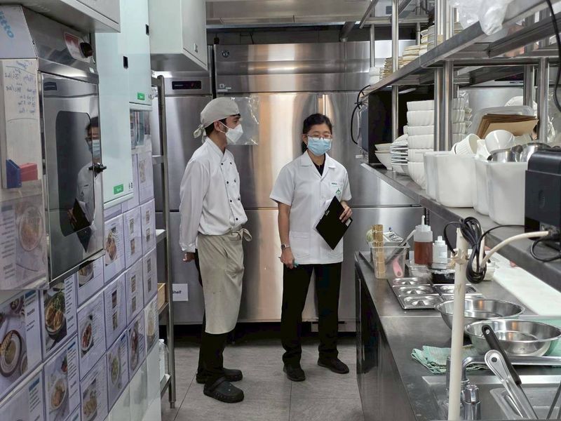 ทั้งนี้ ได้แนะนำการเลือกใช้ภาชนะสำหรับใส่อาหารที่ถูกต้องและปลอดภัยได้รับมาตรฐาน มอก. และแนะนำการทำความสะอาดถังดักไขมัน ทั้งแจ้งแนวทางการเฝ้าระวังคุณภาพอาหาร รวมทั้งให้ปฏิบัติให้ถูกต้องตามข้อบัญญัติกรุงเทพมหานคร เรื่อง สถานที่จำหน่ายอาหารและสถานที่สะสมอาหาร พ.ศ.2565 และไม่ก่อเหตุเดือดร้อนรำคาญตามหมวด 5 แห่ง พ.ร.บ.การสาธารณสุข พ.ศ.2535
