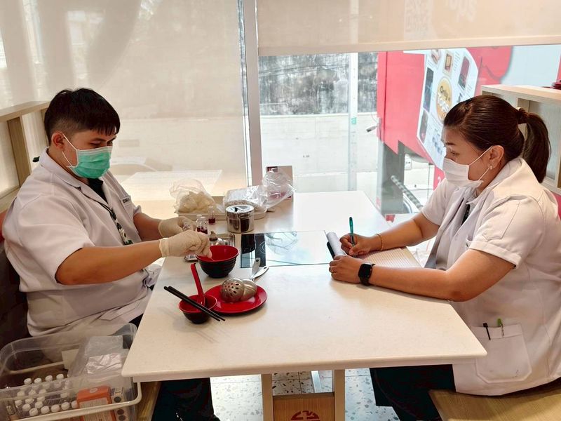 นายอิทธิพล อิงประสาร ผู้อำนวยการเขตยานนาวามอบหมายนายภาณุพันธ์ ปินชัย หัวหน้าฝ่ายสิ่งแวดล้อมและสุขาภิบาล จัดเจ้าหน้าที่ฝ่ายสิ่งแวดล้อมฯ ดำเนินการตรวจประเมินสุขลักษณะและตรวจวิเคราะห์คุณภาพอาหาร โดยสุ่มตรวจตัวอย่างอาหารหาสารเคมีปนเปื้อนโดยใช้ชุดทดสอบเบื้องต้น (Test-kit) และตรวจหาเชื้อจุลินทรีย์ก่อโรค โดยใช้ชุดทดสอบหาเชื้อโคลิฟอร์มแบคทีเรียขั้นต้น (SI-2) และ อ.11 โดยสุ่มเก็บตัวอย่างอาหารจากสถานที่จำหน่ายอาหาร จำนวน 5 แห่ง ในพื้นที่เขตยานนาวา