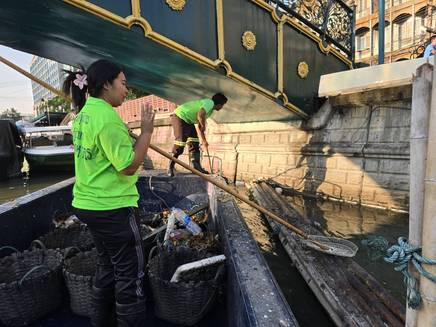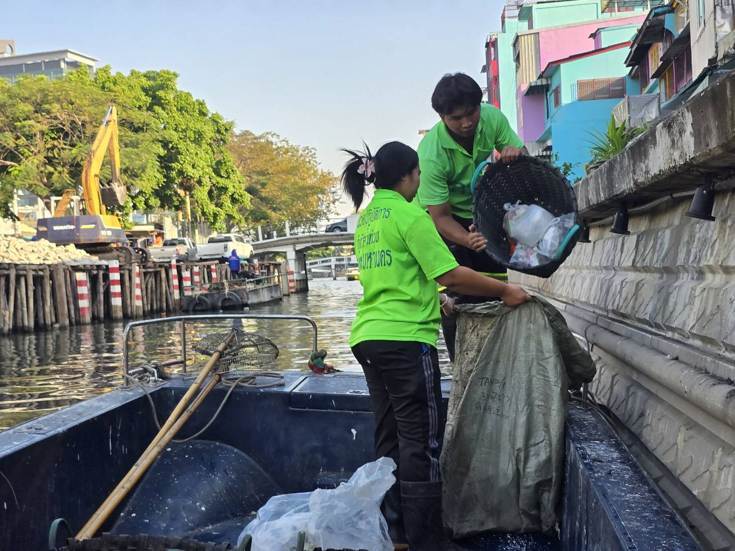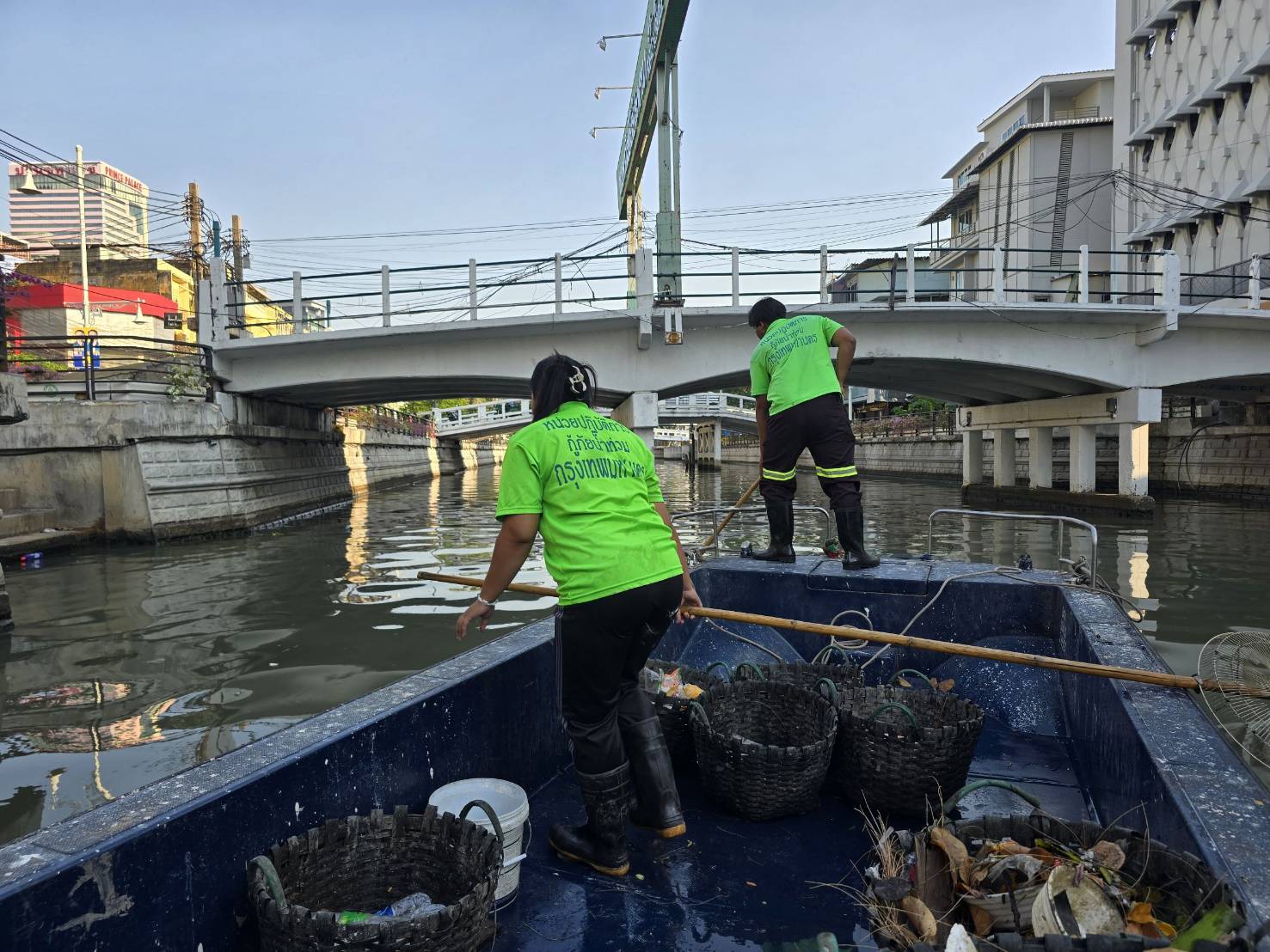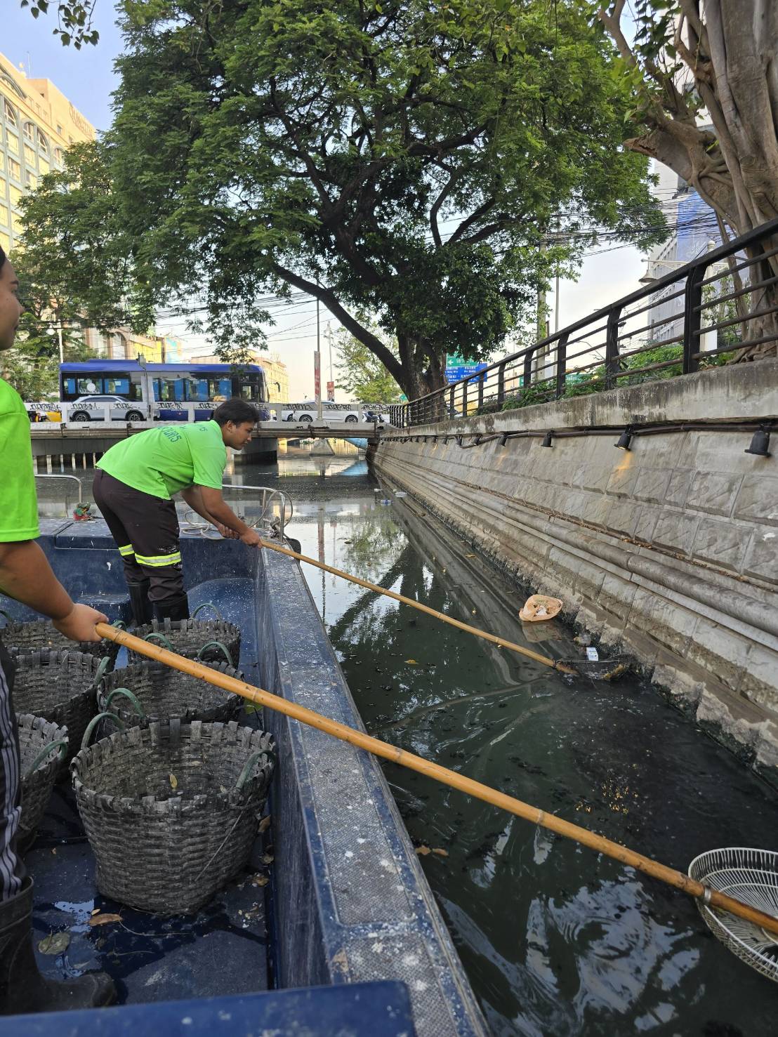 เจ้าหน้าที่ เก็บขยะช่วงสถานีสูบน้ำกรุงเกษม-สะพานเจริญสวัสดิ์-สะพานนพวงศ์-สะพานกษัตริย์ศึก หน้าตลาดโบ้เบ๊ถึงสี่แยกมหานาคพื้นที่เขตปทุมวัน เขตป้อมปราบศัตรูพ่าย