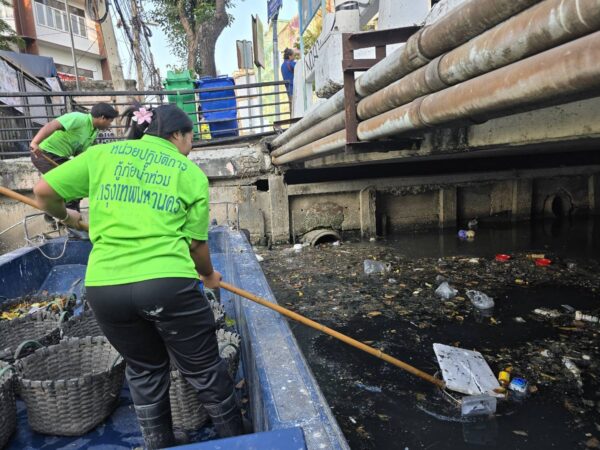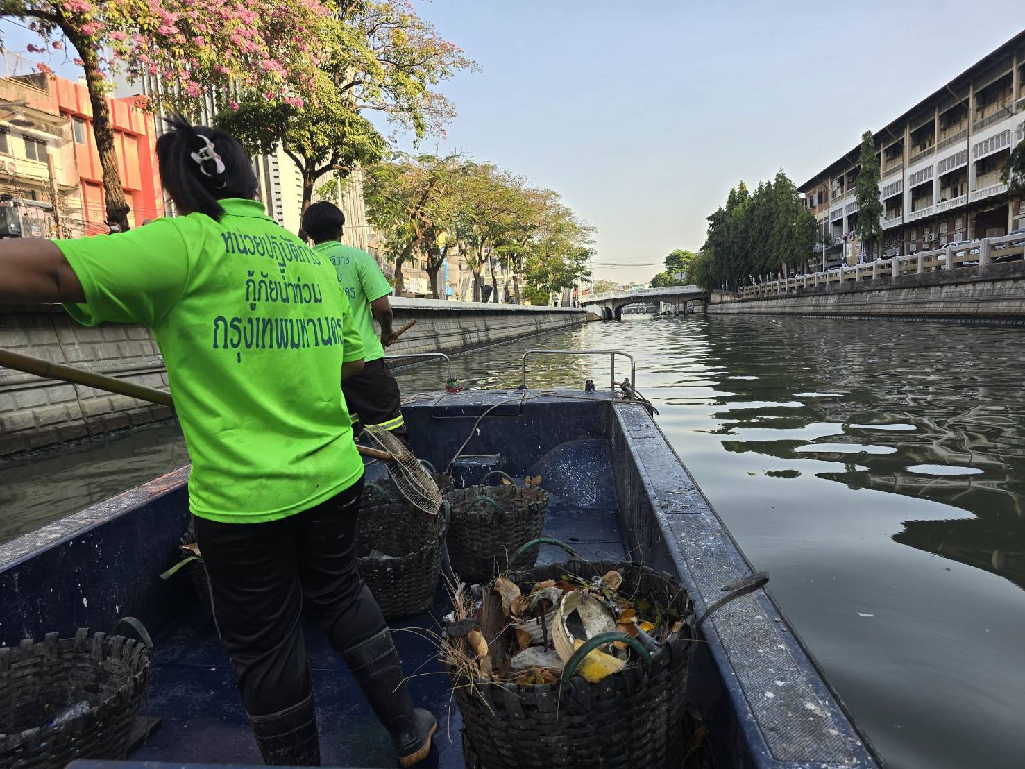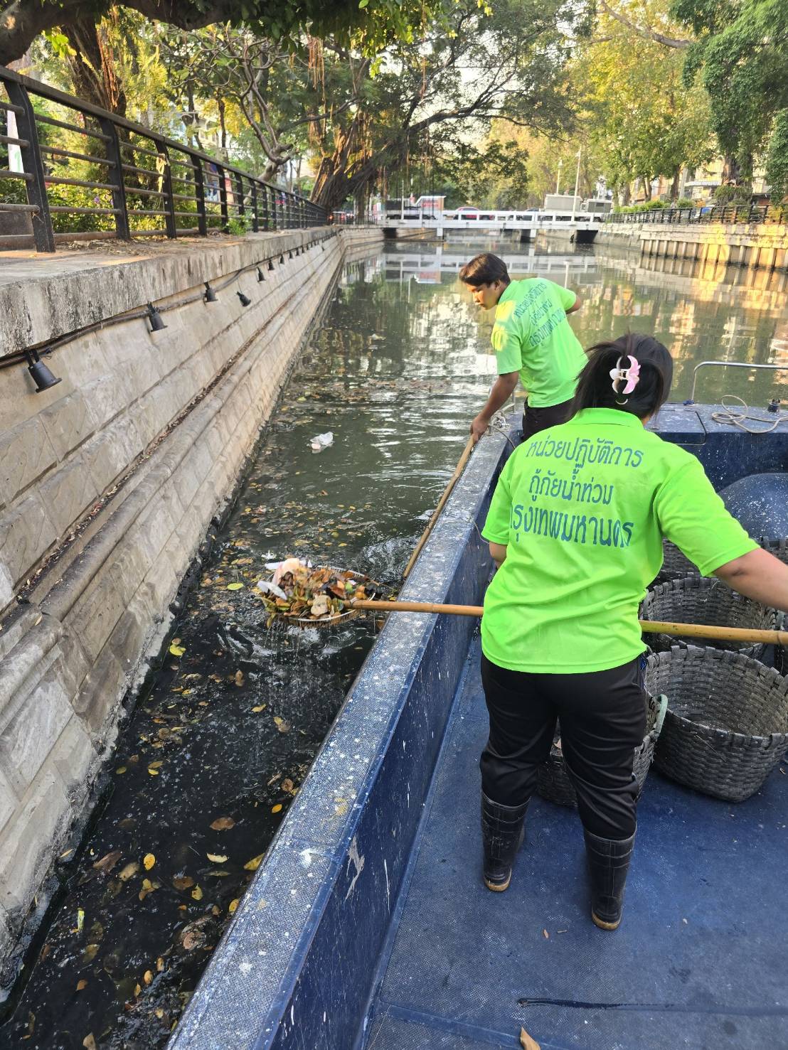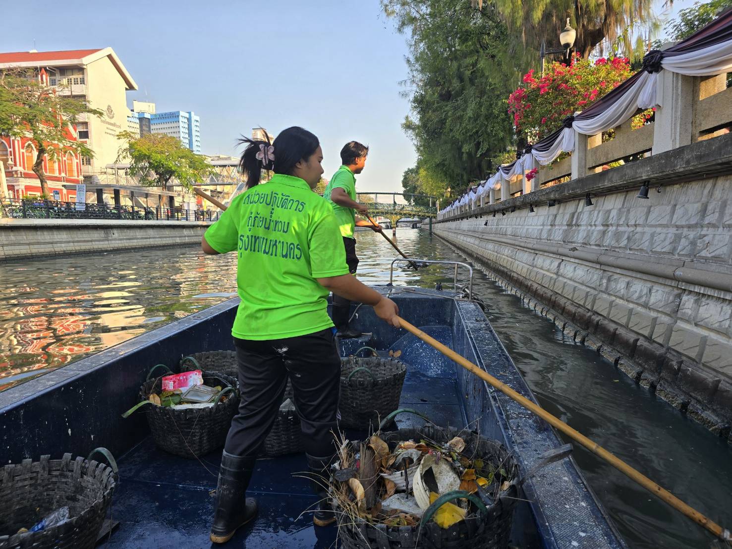 เจ้าหน้าที่ เก็บขยะช่วงสถานีสูบน้ำกรุงเกษม-สะพานเจริญสวัสดิ์-สะพานนพวงศ์-สะพานกษัตริย์ศึก หน้าตลาดโบ้เบ๊ถึงสี่แยกมหานาคพื้นที่เขตปทุมวัน เขตป้อมปราบศัตรูพ่าย