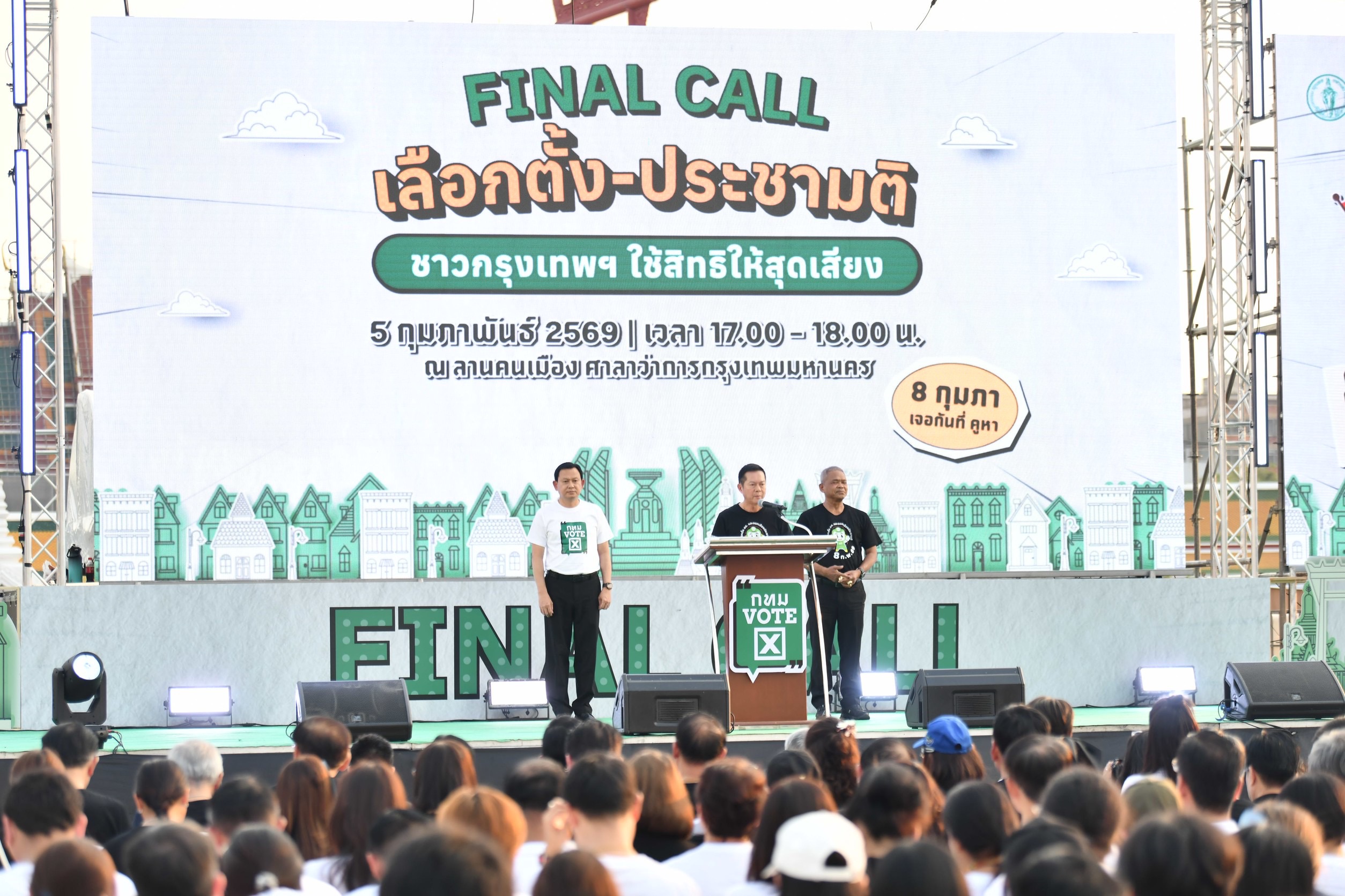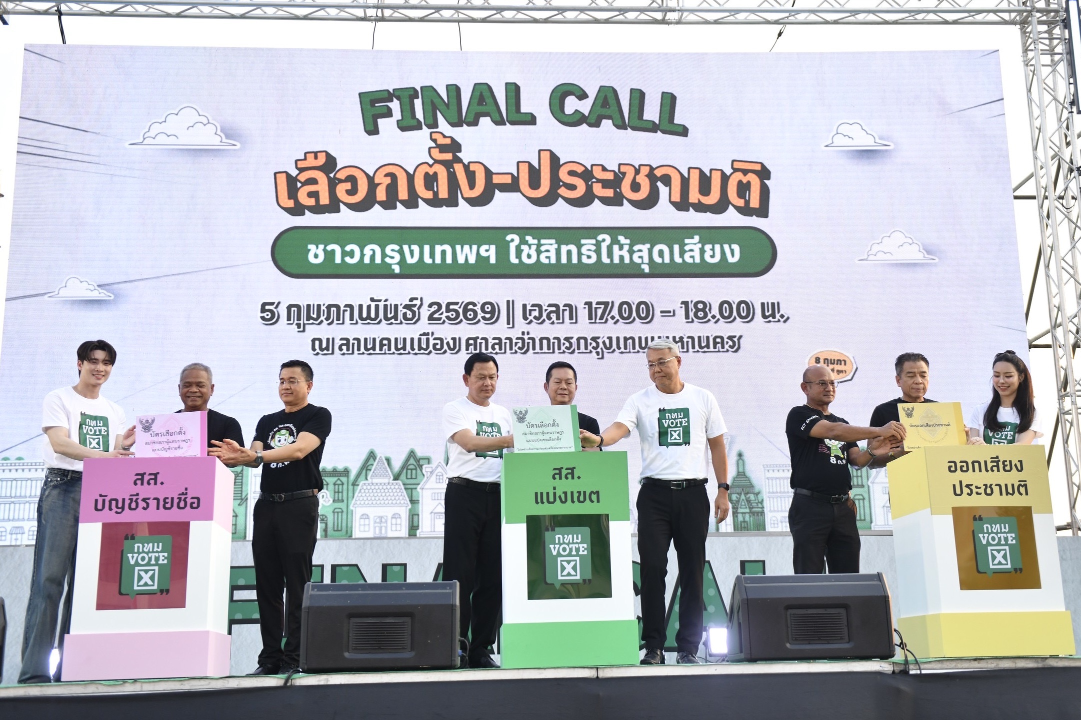 (5 ก.พ. 69) กรุงเทพมหานคร ร่วมกับสำนักงานคณะกรรมการการเลือกตั้ง (กกต.) จัดกิจกรรมรณรงค์และประชาสัมพันธ์การเลือกตั้งสมาชิกสภาผู้แทนราษฎรและการออกเสียงประชามติ ภายใต้ชื่อ “Final Call เลือกตั้ง–ประชามติ ชาวกรุงเทพฯ ใช้สิทธิให้สุดเสียง” ณ ลานคนเมือง ศาลาว่าการกรุงเทพมหานคร (เสาชิงช้า) เขตพระนคร โดยมีผู้เข้าร่วมกิจกรรมกว่า 800 คน ร่วมปลุกพลังคนกรุงเทพฯ เชิญชวนประชาชนออกไปใช้สิทธิเลือกตั้ง ส.ส. และออกเสียงประชามติ ในวันที่ 8 กุมภาพันธ์ 2569