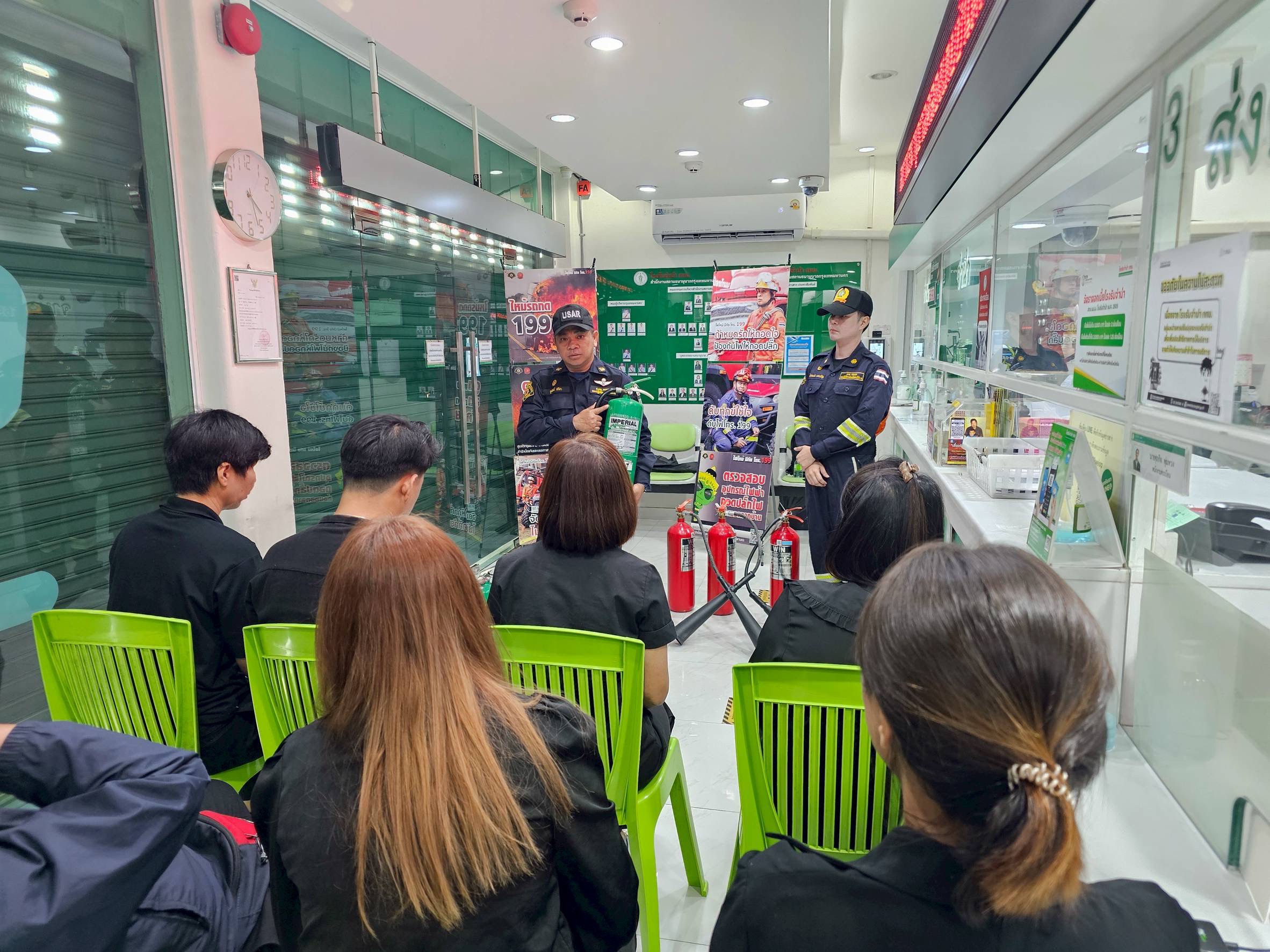 สถานีดับเพลิงและกู้ภัยคลองเตย อบรมการใช้อุปกรณ์ป้องกันอัคคีภัย และการอพยพหนีไฟให้กับสถานธนานุบาลกรุงเทพมหานคร (คลองเตย)