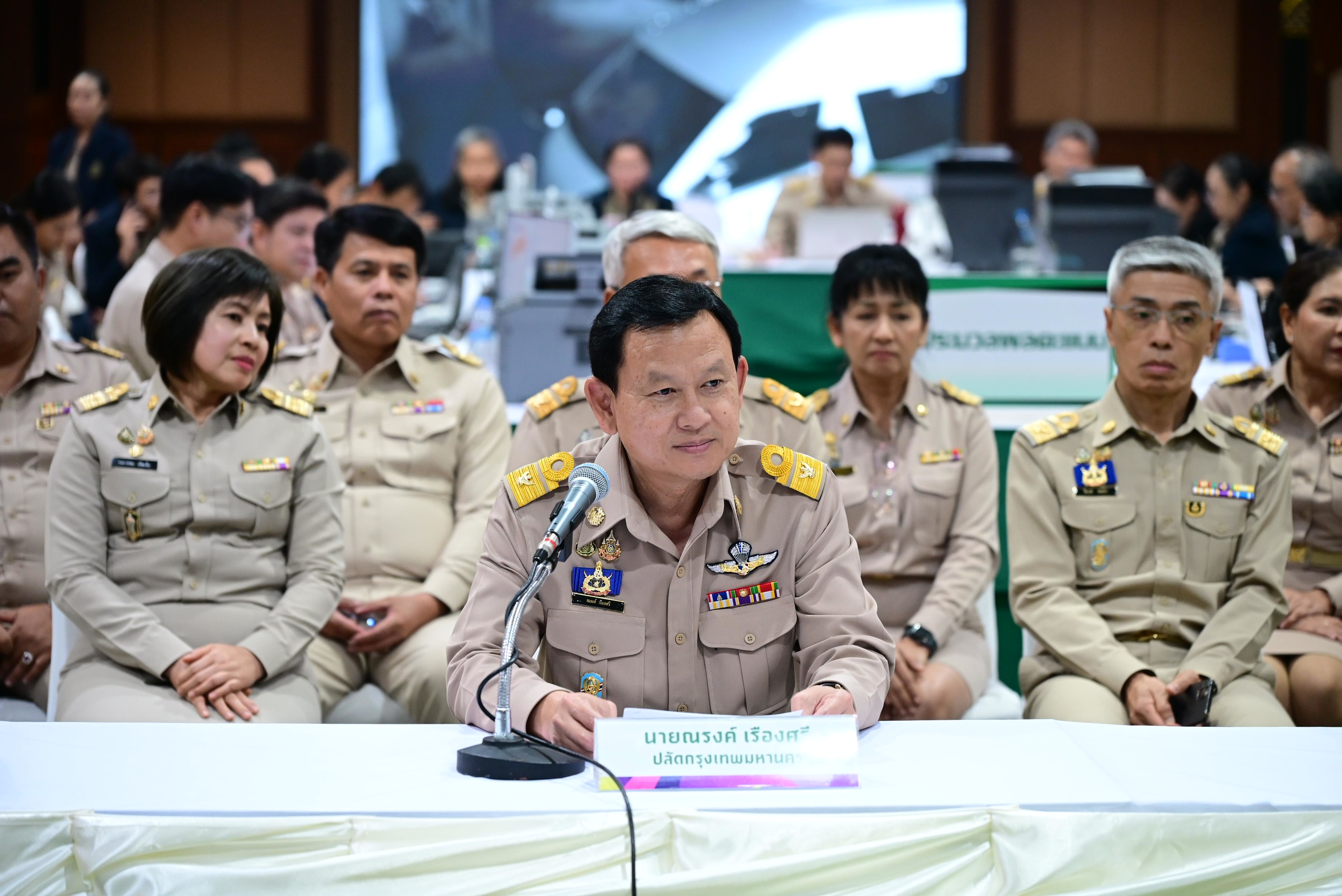 (8 ก.พ.69) เวลา 23.20 น. ณ ศูนย์ประสานงานการเลือกตั้งสมาชิกสภาผู้แทนราษฎรและการออกเสียงประชามติกรุงเทพมหานคร ห้องรัตนโกสินทร์ ศาลาว่าการกรุงเทพมหานคร เสาชิงช้า : นายณรงค์ เรืองศรี ปลัดกรุงเทพมหานคร พร้อมด้วย ว่าที่ร้อยตรี ดร.สัมพันธ์ แสงคำเลิศ ผู้อำนวยการสำนักงานคณะกรรมการการเลือกตั้งประจำกรุงเทพมหานคร ร่วมแถลงข่าวความคืบหน้าล่าสุดของการนับคะแนนเลือกตั้งในพื้นที่กรุงเทพมหานคร