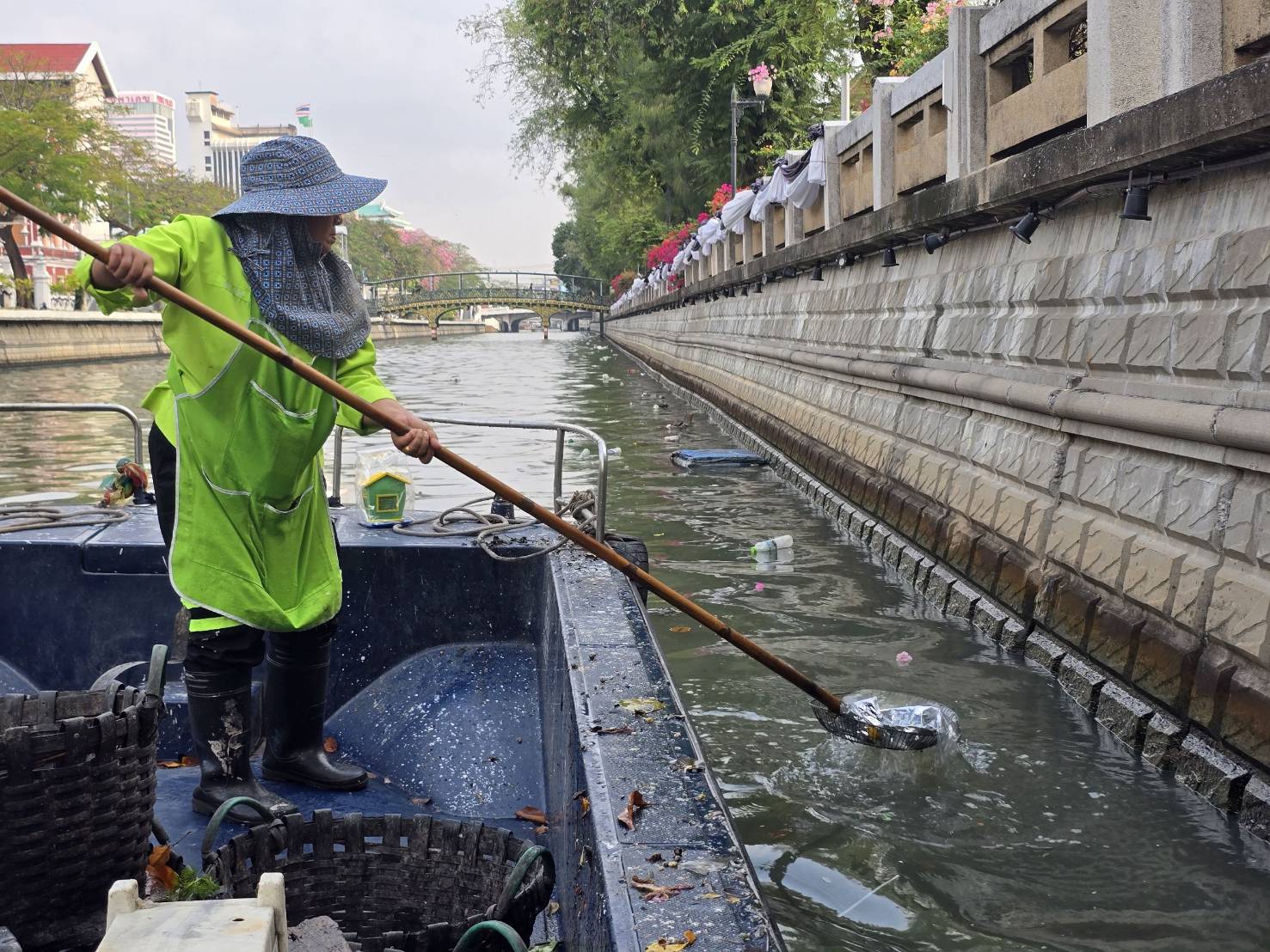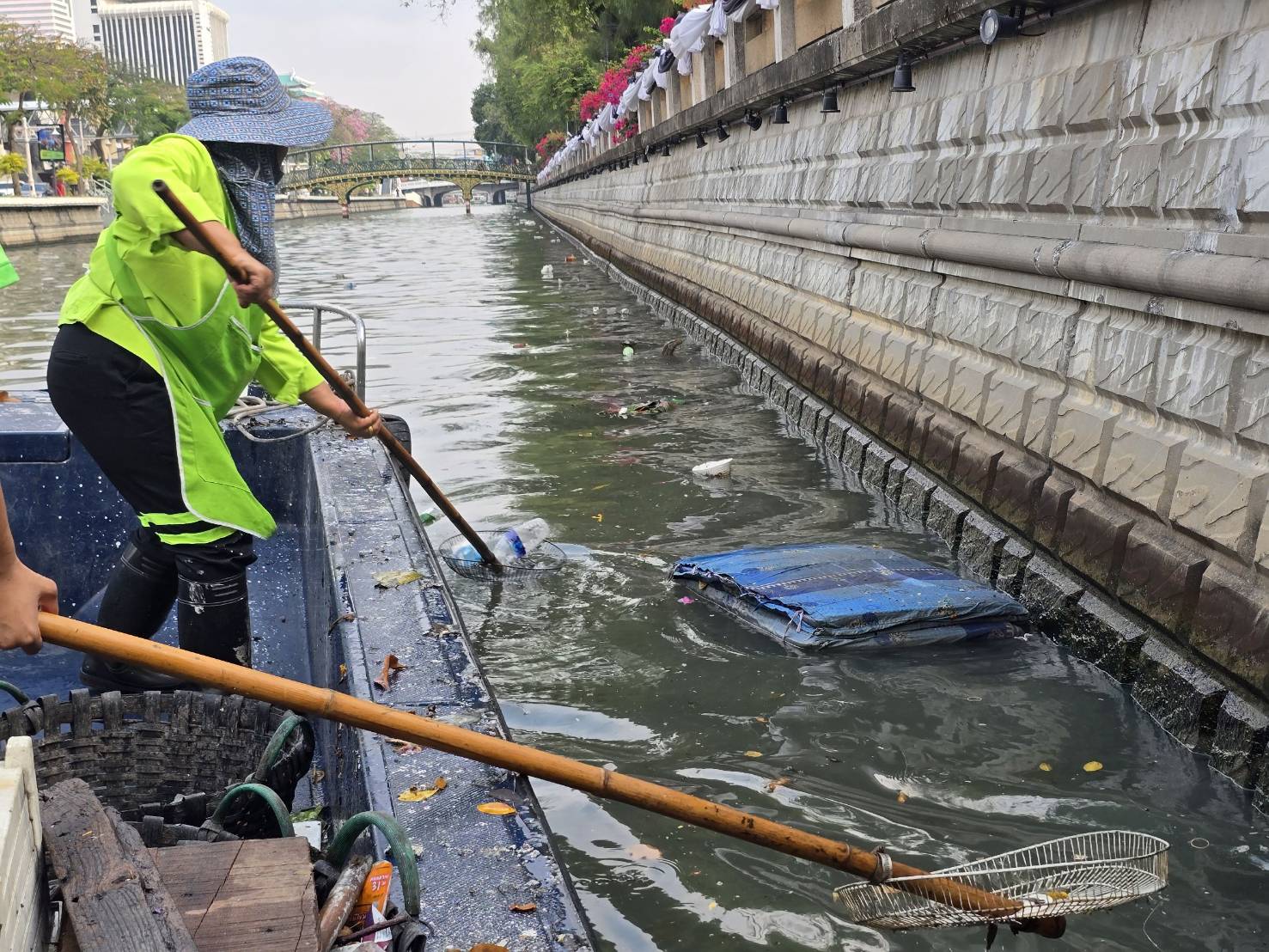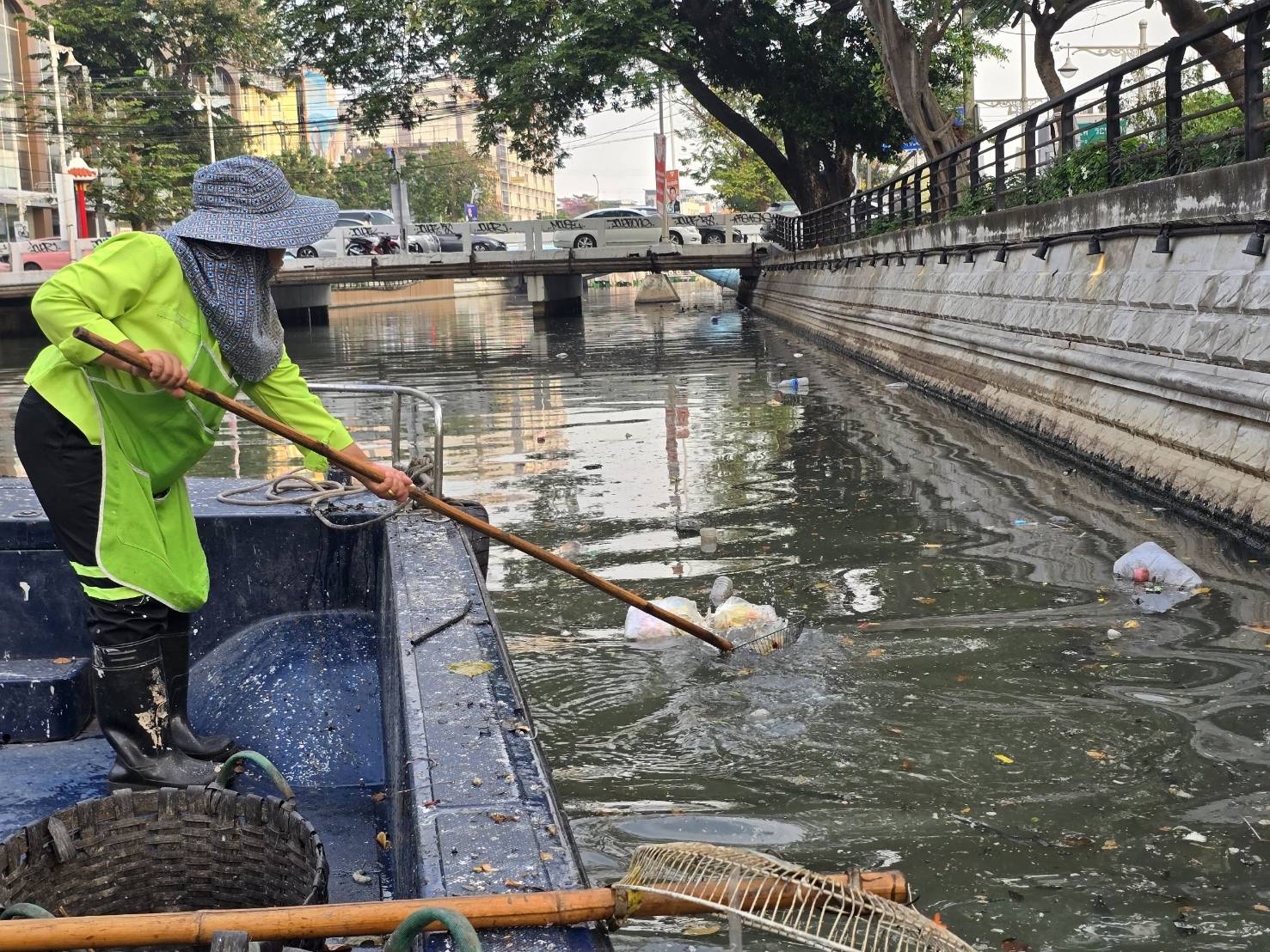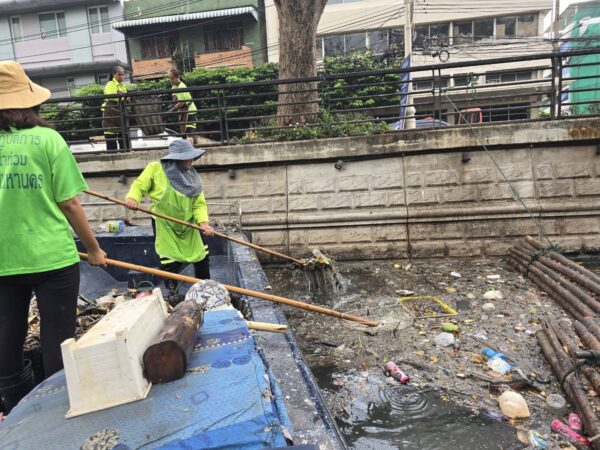 เจ้าหน้าที่ เก็บขยะช่วงสถานีสูบน้ำกรุงเกษมสะพานเจริญสวัสดิ์-สะพานนพวงศ์-สะพานกษัตริย์ศึก ถึงสี่แยกมหานาค เขตปทุมวันและเขตป้อมปราบศัตรูพ่าย