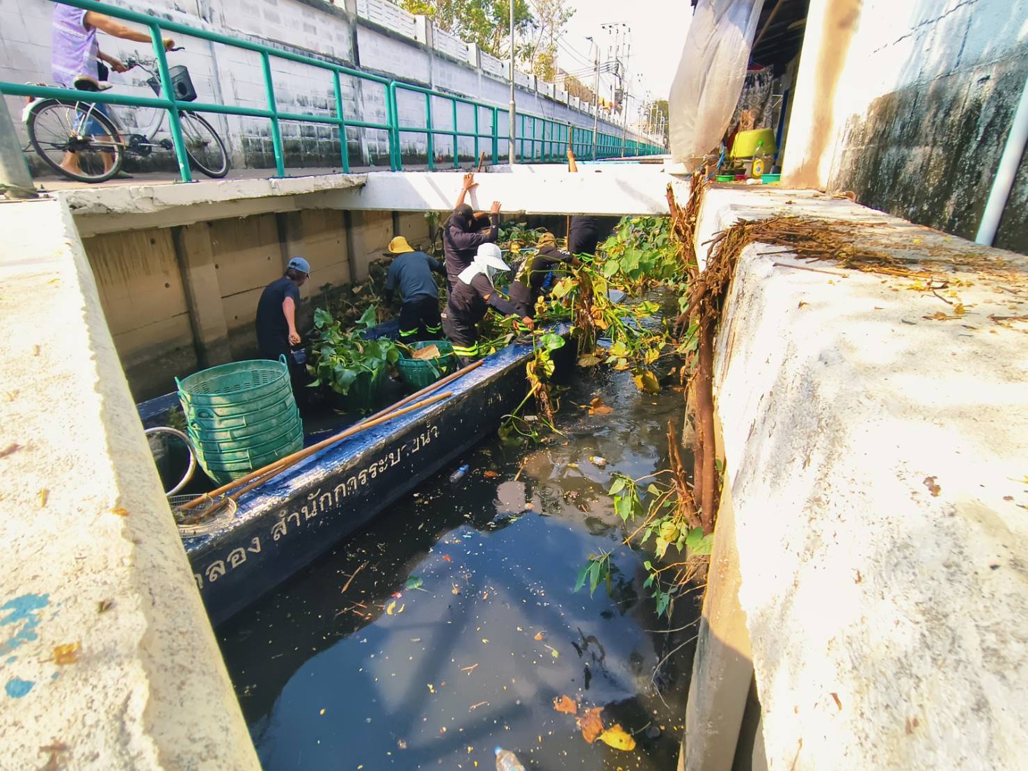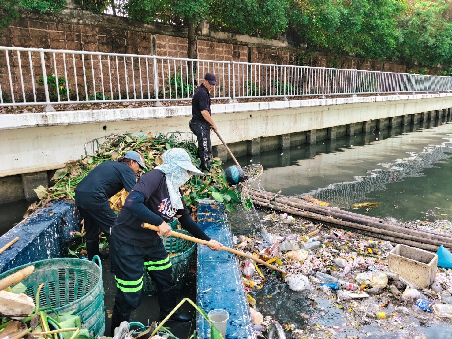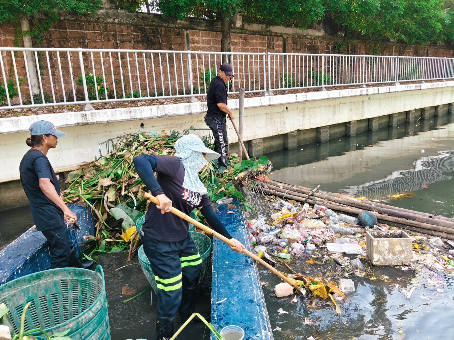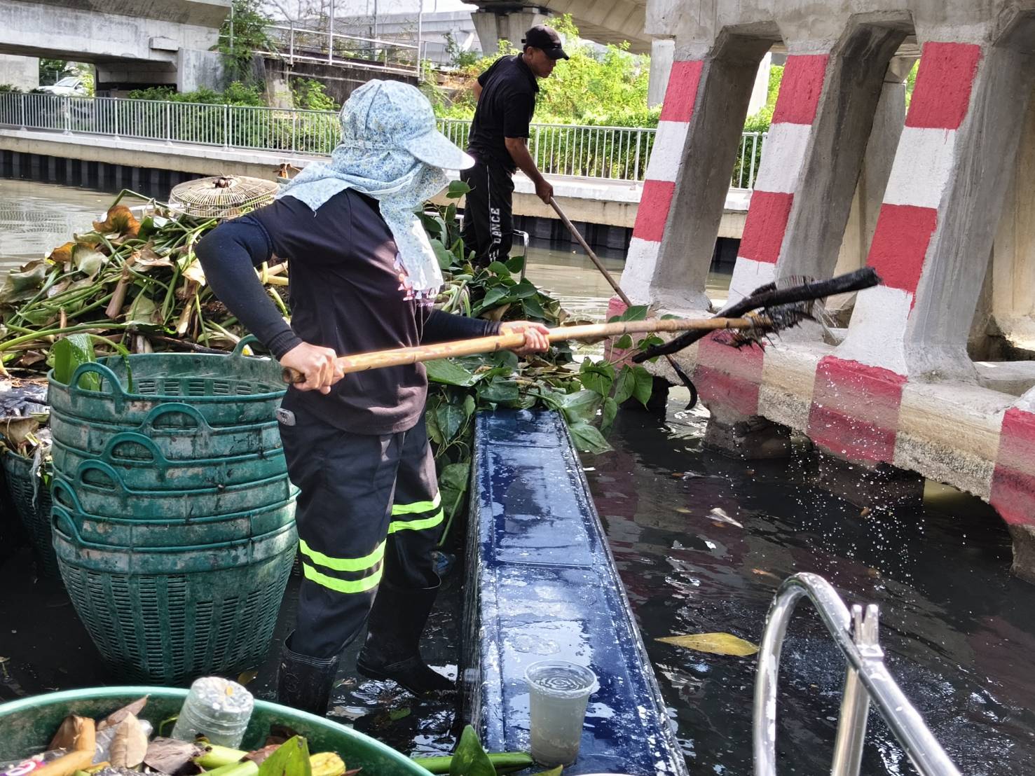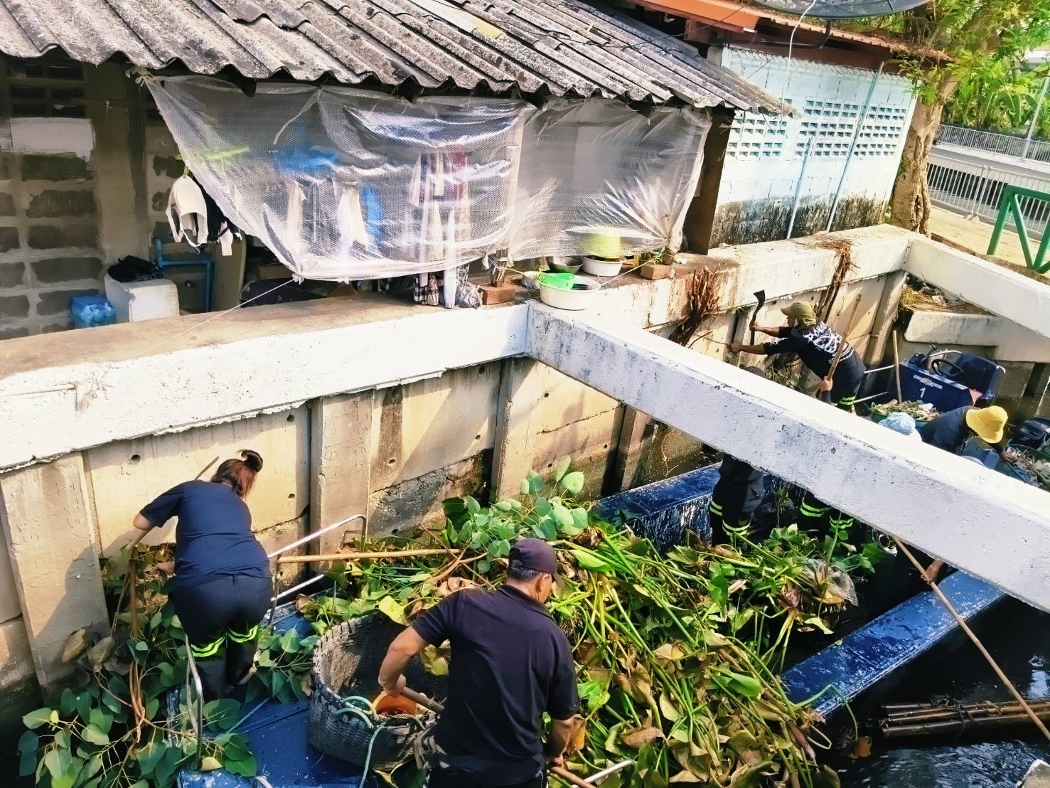 เจ้าหน้าที่ เก็บขยะและวัชพืชคลองเปรมประชากร ช่วงชุมชนตึกแดงบางซื่อเขตบางซื่อถึงสะพานงามวงศ์วานเขตจตุจักร