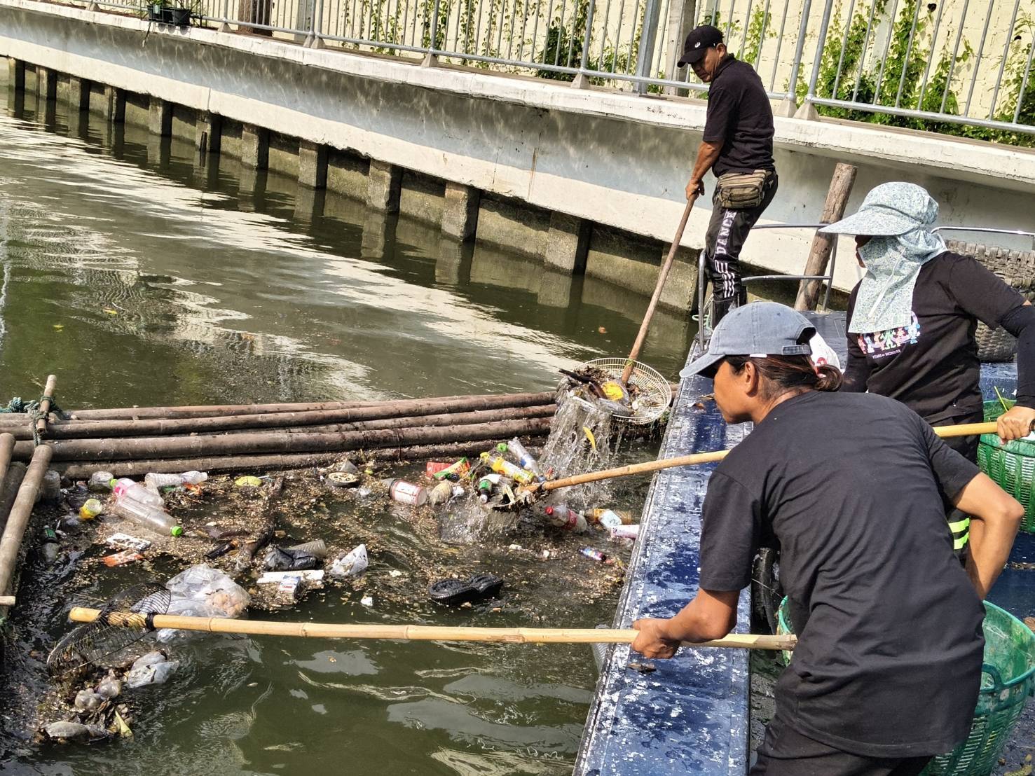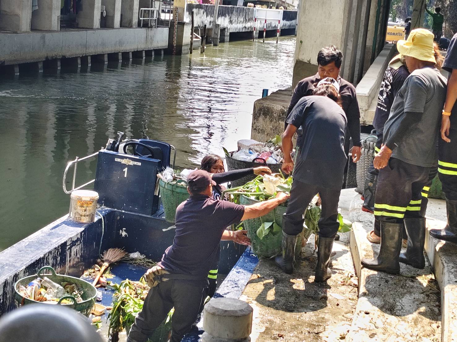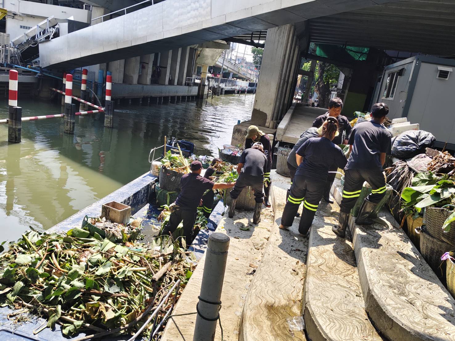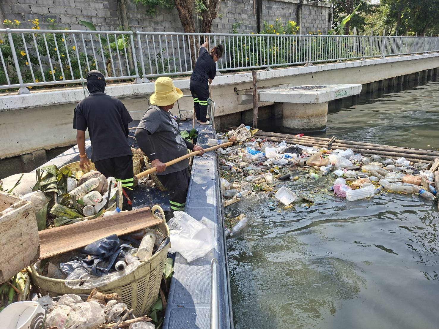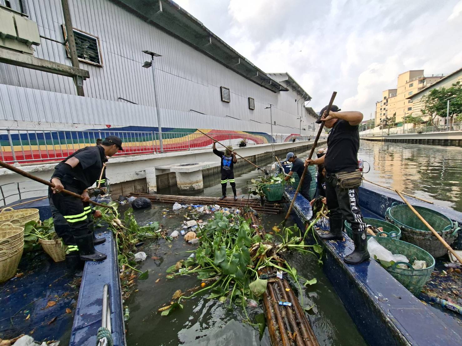 เจ้าหน้าที่ เก็บขยะและวัชพืชคลองเปรมประชากร ช่วงชุมชนตึกแดงบางซื่อเขตบางซื่อถึงสะพานงามวงศ์วานเขตจตุจักร