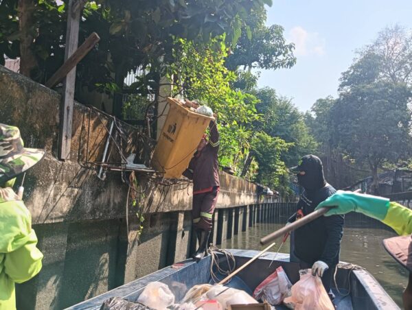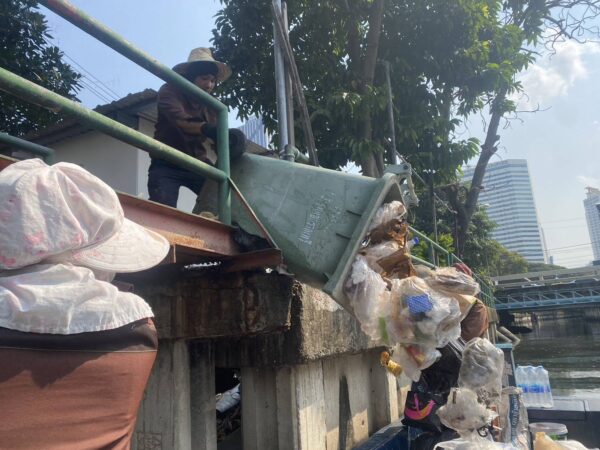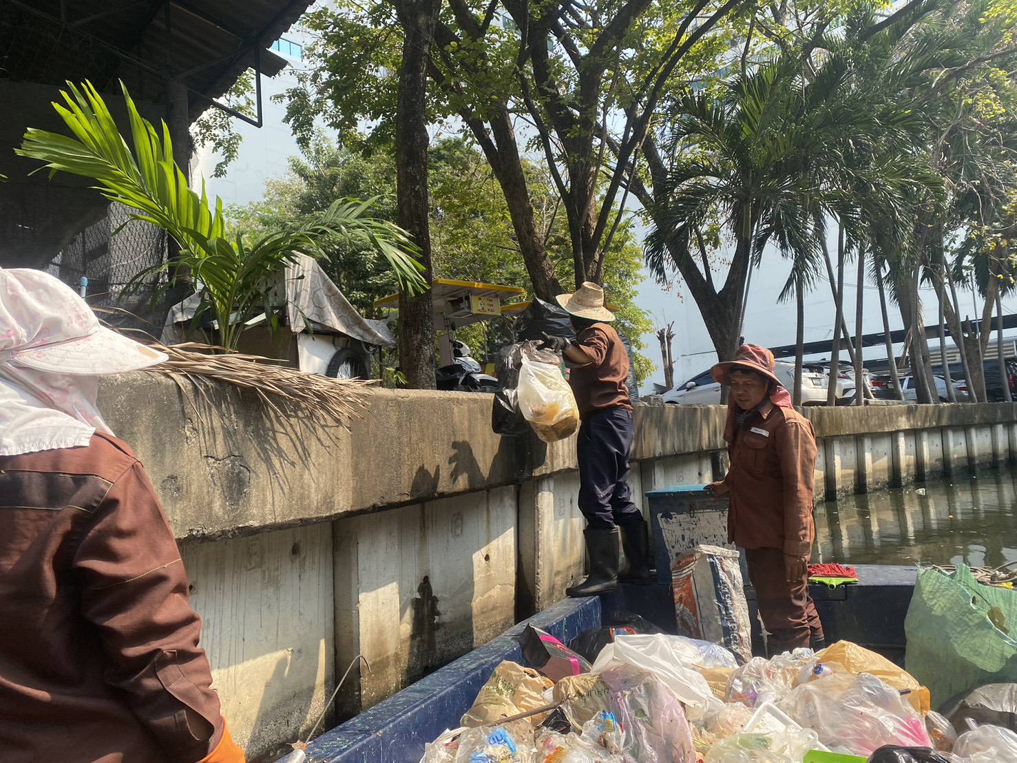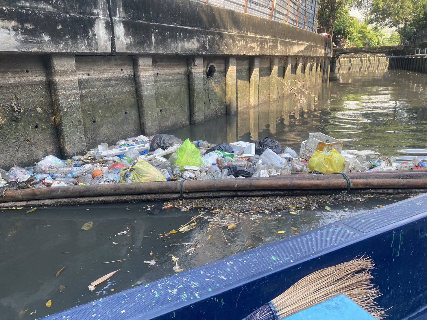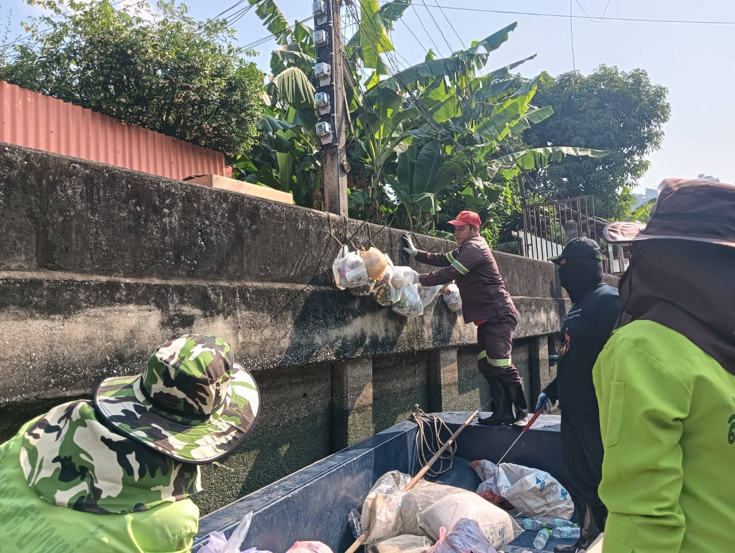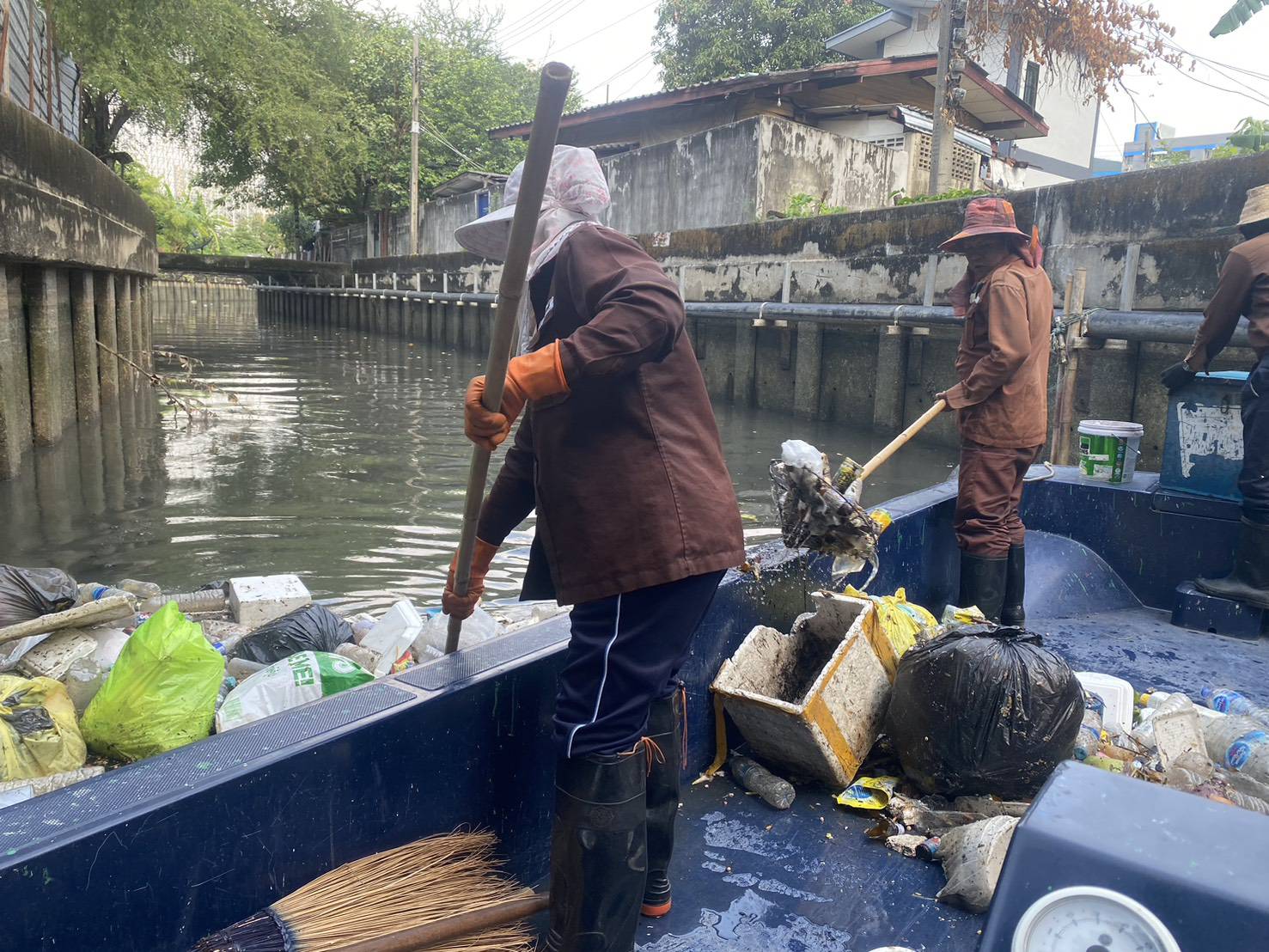 เจ้าหน้าที่ เก็บขยะแนวสันเขื่อนและตักขยะในคลองสามเสน พื้นที่เขตห้วยขวาง เขตดินแดงและเขตราชเทวี