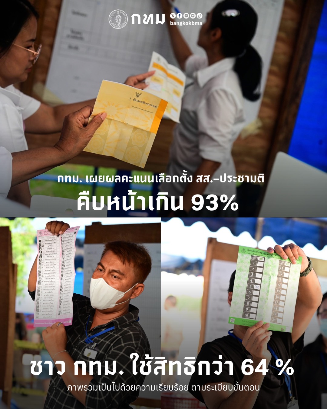 ทั้งนี้ ภาพรวมสถานการณ์เป็นไปด้วยความเรียบร้อย โดยปลัดกรุงเทพมหานครย้ำว่า เจ้าหน้าที่ทุกฝ่ายได้ปฏิบัติหน้าที่อย่างเต็มกำลัง เพื่อให้กระบวนการรายงานผลการนับคะแนนเป็นไปอย่างถูกต้อง โปร่งใส และเป็นธรรม พร้อมเชิญชวนประชาชนร่วมติดตามและตรวจสอบผลคะแนนผ่านระบบ ECT Report ของคณะกรรมการการเลือกตั้ง ได้ที่ Link : https://ectreport69.ect.go.th