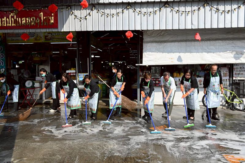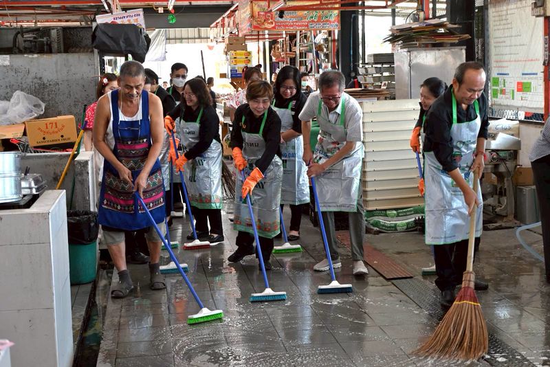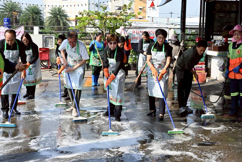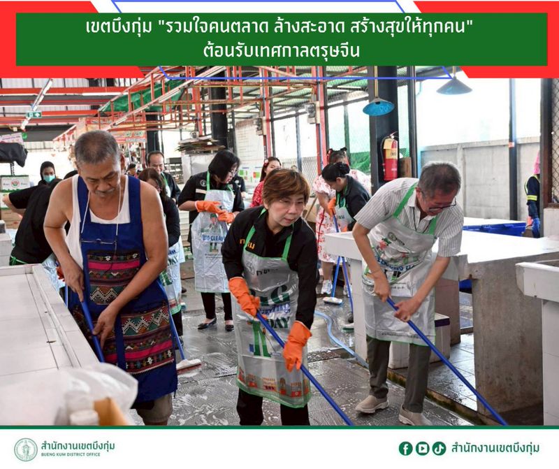นางสาวเบญจพร ศักดิ์เรืองแมน ผู้อำนวยการเขตบึงกุ่ม พร้อมผู้บริหารเขต และเจ้าหน้าที่ ร่วมกับเจ้าของตลาดในพื้นที่เขตบึงกุ่ม จัดกิจกรรมล้างตลาดตามหลักสุขาภิบาล เพื่อเตรียมความพร้อมต้อนรับเทศกาลตรุษจีน ยกระดับความสะอาด ความเป็นระเบียบเรียบร้อย และสร้างความมั่นใจด้านสุขอนามัยให้แก่พี่น้องประชาชน ณ ตลาดแฮปปี้แลนด์ @ เสรีไทย 41 และตลาดโพธิ์สุวรรณ