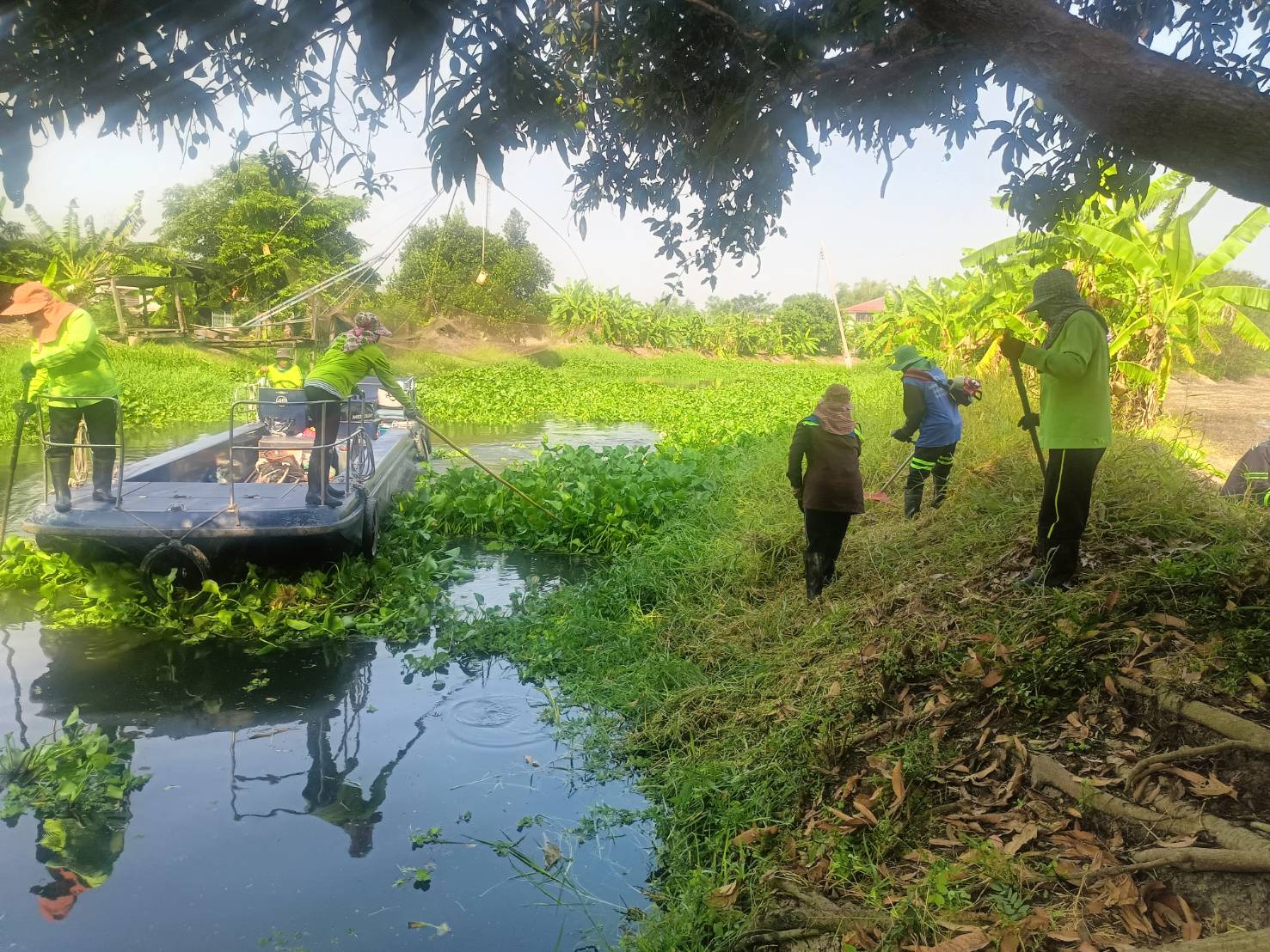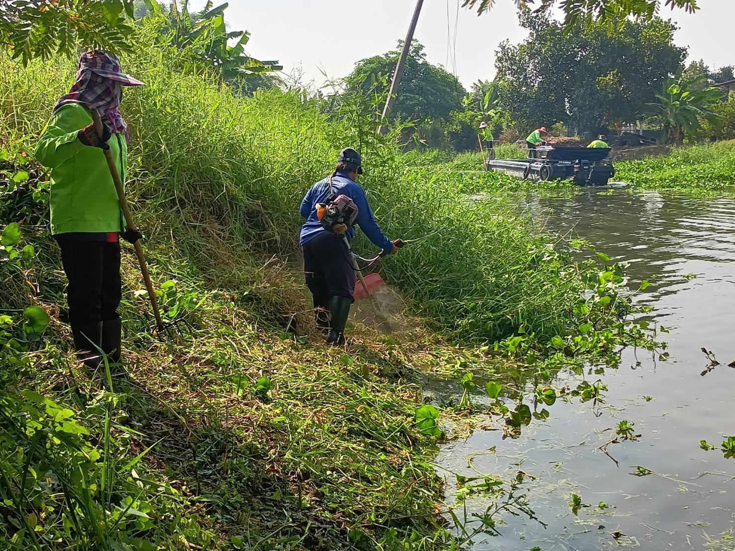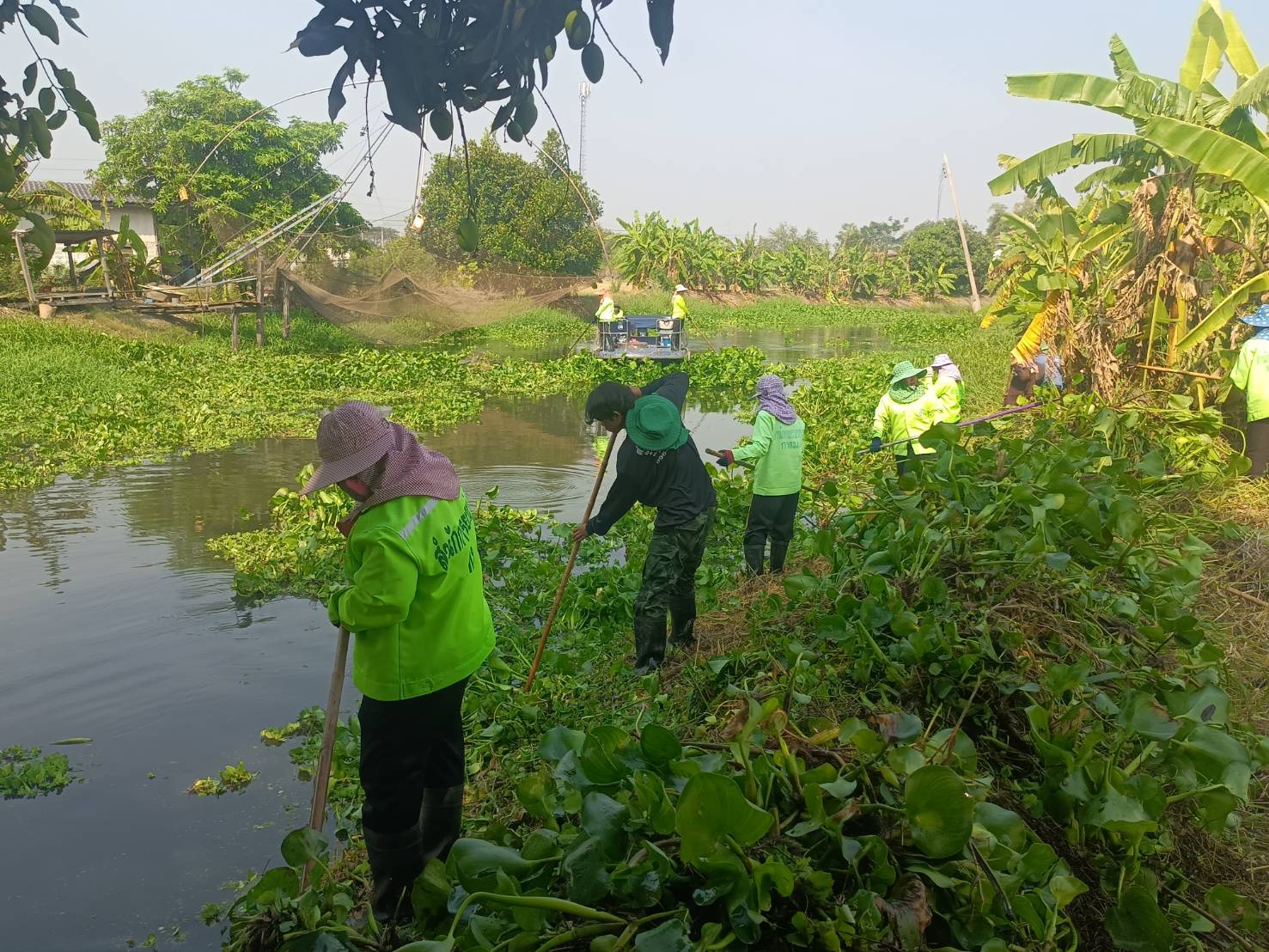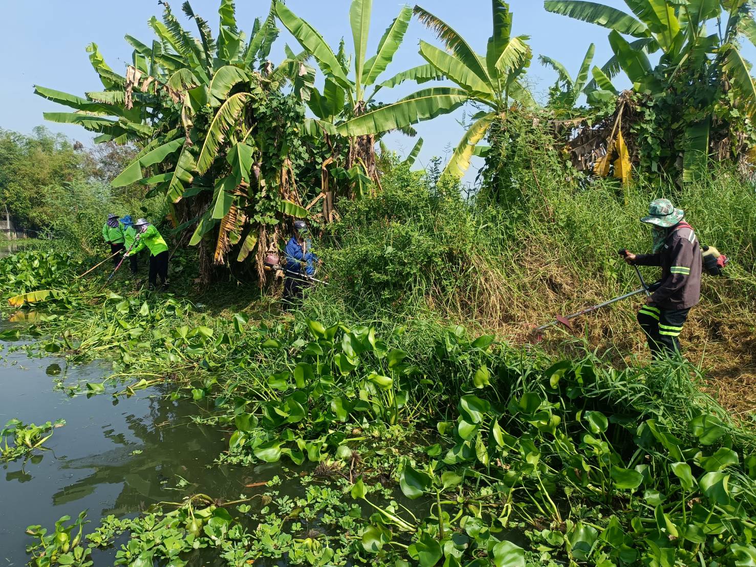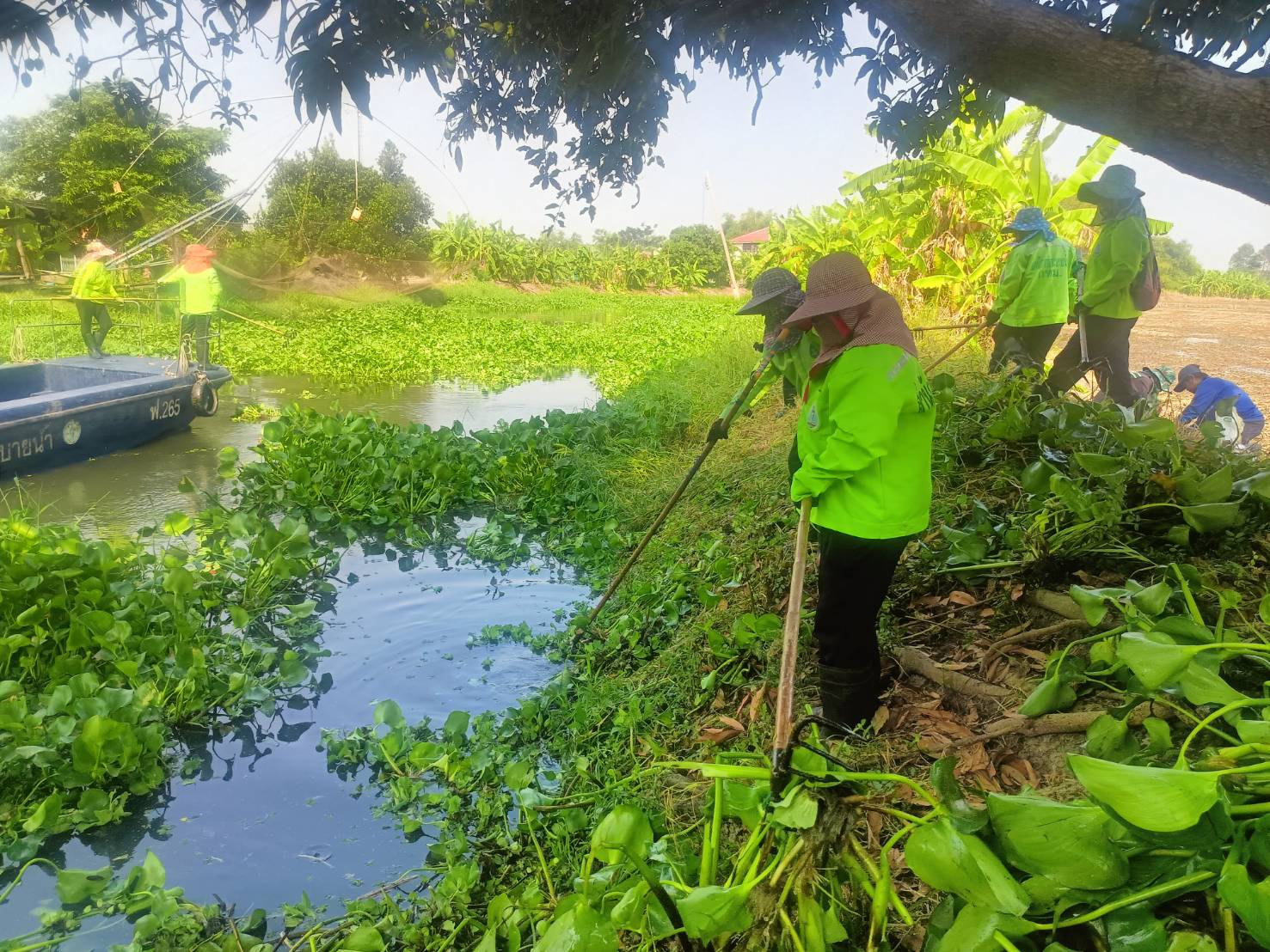 เจ้าหน้าที่ จัดเก็บวัชพืช คลองทับยาว พื้นที่เขตลาดกระบัง