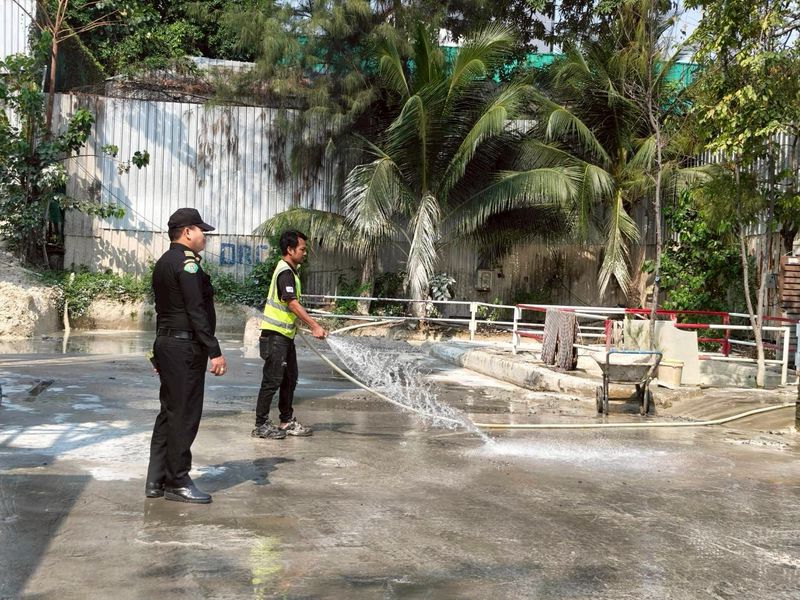 ***ดูแลความเป็นระเบียบเรียบร้อยประชาสัมพันธ์รถบรรทุก ตามมาตรการป้องกันฝุ่นละออง PM 2.5 ขอให้จัดการป้องกันเศษวัสดุตกหล่นบนผิวจราจร ล้างทำความสะอาดบริเวณไซต์งาน ถนนพระราม 9 ซอย 21 และถนนประดิษฐ์มนูธรรม