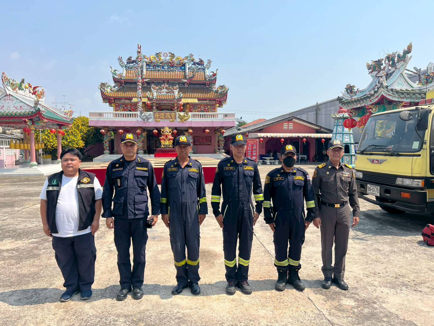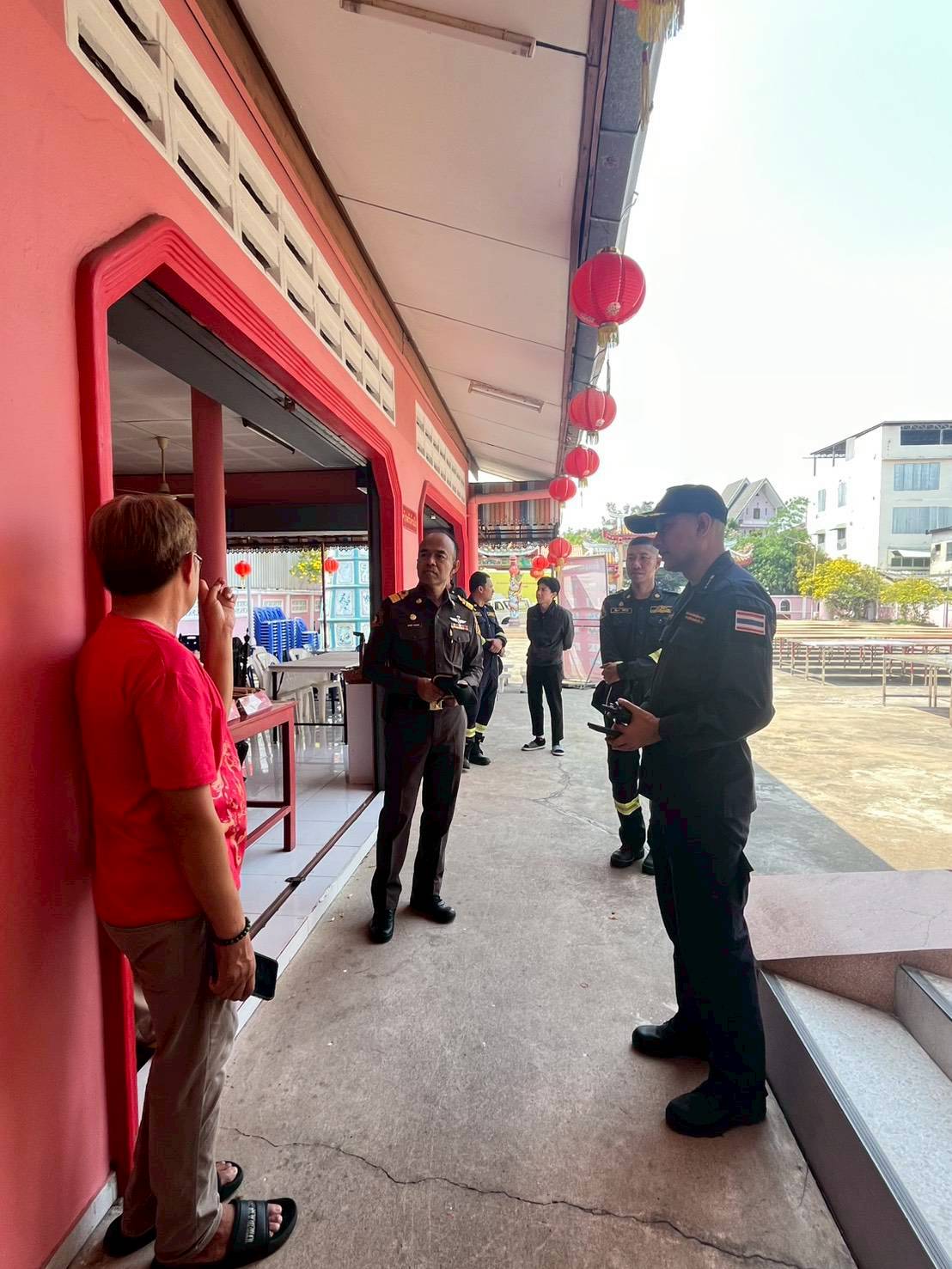 สถานีดับเพลิง หนองแขม กปก.6 จ.ส.อ.เจษฎา วิทยาสมบูรณ์ หน.ส.ดพ.หนองแขม และ ส.ต.อ.ธีรศักดิ์ หาญพนม พนง.ป้องกันฯ อาวุโส ตรวจเยี่ยมจุดเฝ้าระวังเทศกาลตรุษจีน ณ ศาลเจ้าแม่กวนอิม