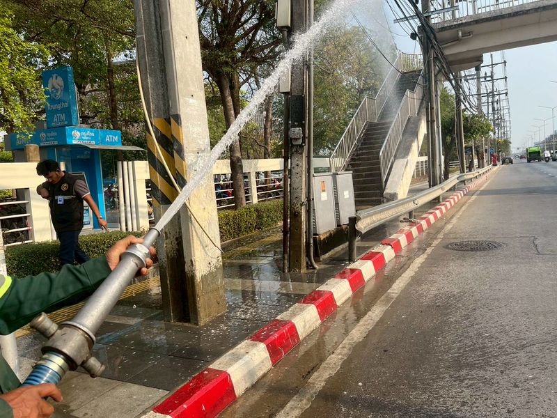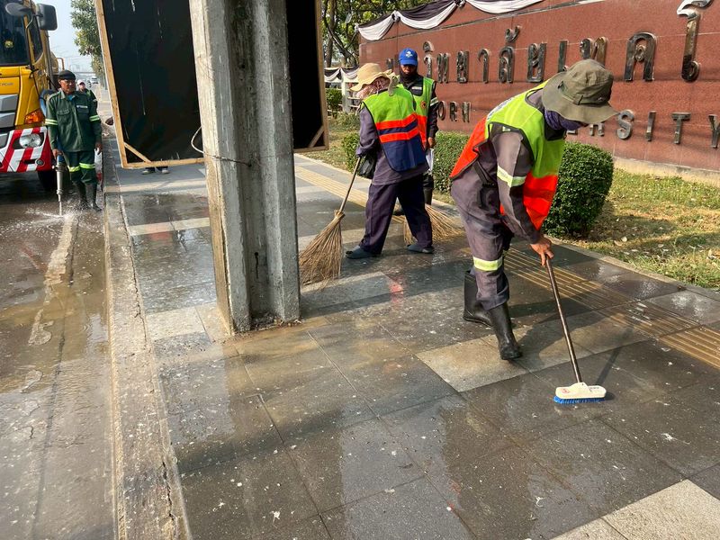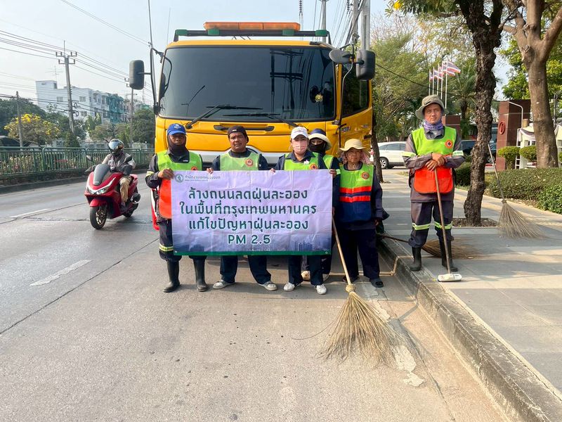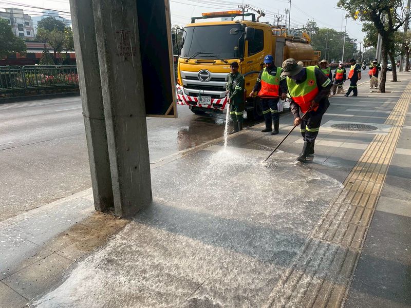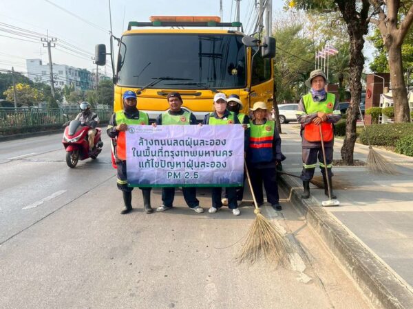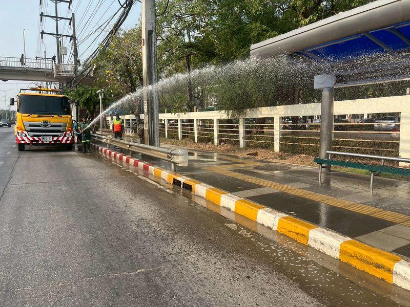 นางสาวยุวนุช นงพรมมา ผู้อำนวยการเขตหนองจอก มอบหมายให้ นางภัทรวรินทร์ มากเพ็ง หัวหน้าฝ่ายรักษาความสะอาดและสวนสาธารณะจัดเจ้าหน้าที่ฝ่ายรักษาความสะอาดฯกลุ่มงานกวาด ฉีดล้างฟุตบาท ศาลาพักผู้โดยสาร สะพานลอยและบนต้นไม้ ถนนเชื่อมสัมพันธ์ ให้สะอาดปราศจากเชื้อโรคและล้างเพื่อป้องกันฝุ่นละอองPM2.5