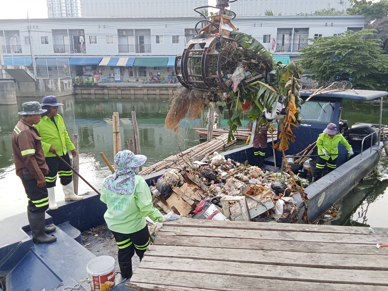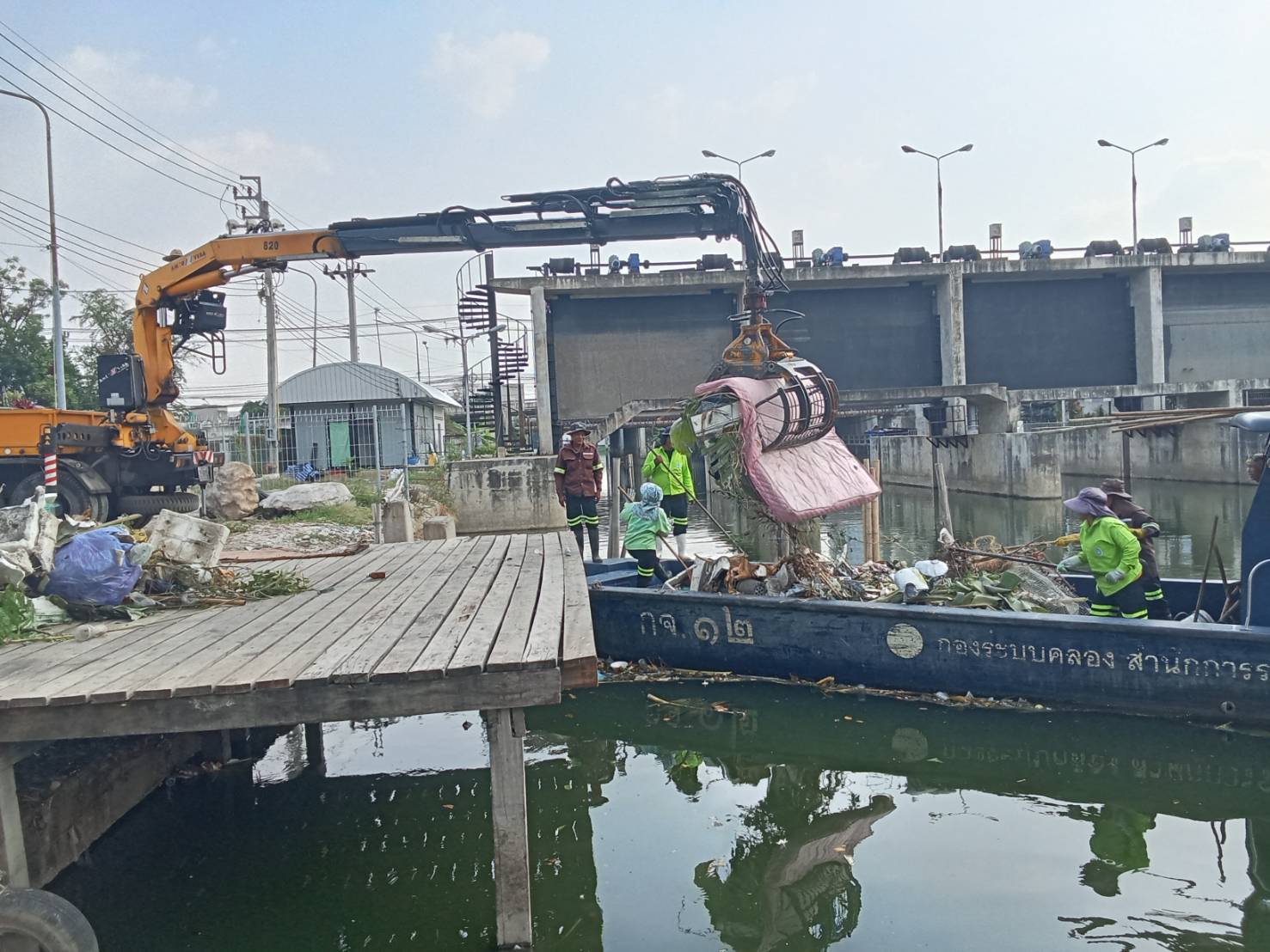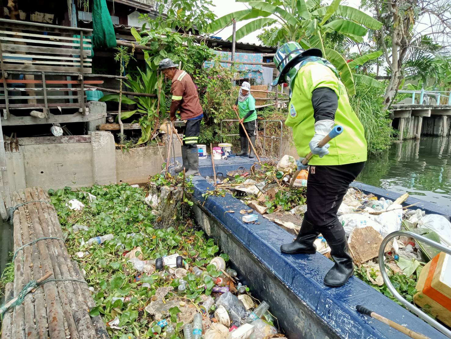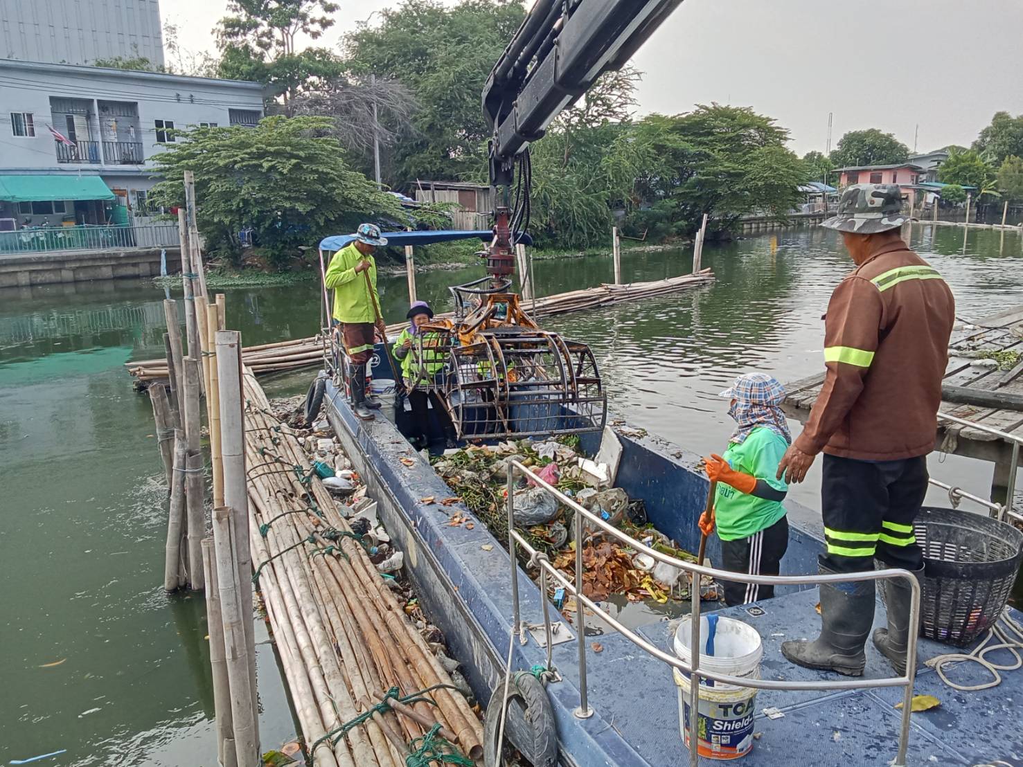 เจ้าหน้าที่ เก็บขยะและวัชพืช คลองสอง-คลองลาดพร้าว พื้นที่เขตหลักสี่ เขตบางเขนและเขตลาดพร้าว