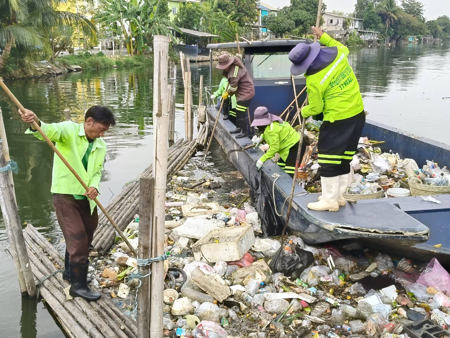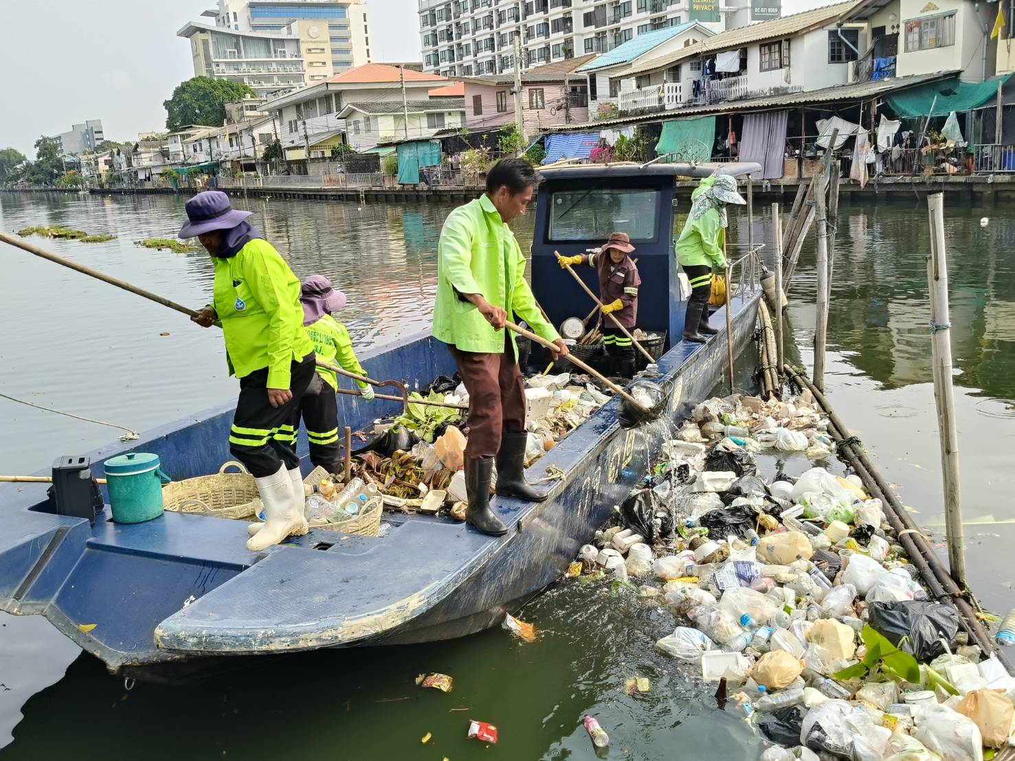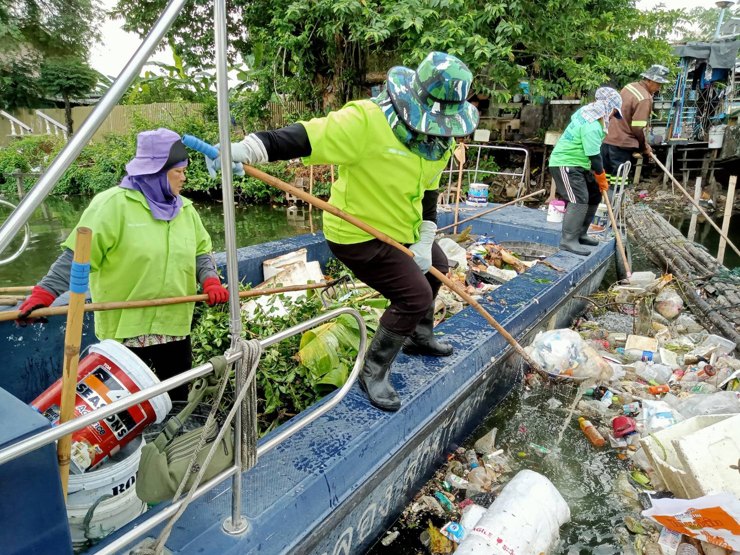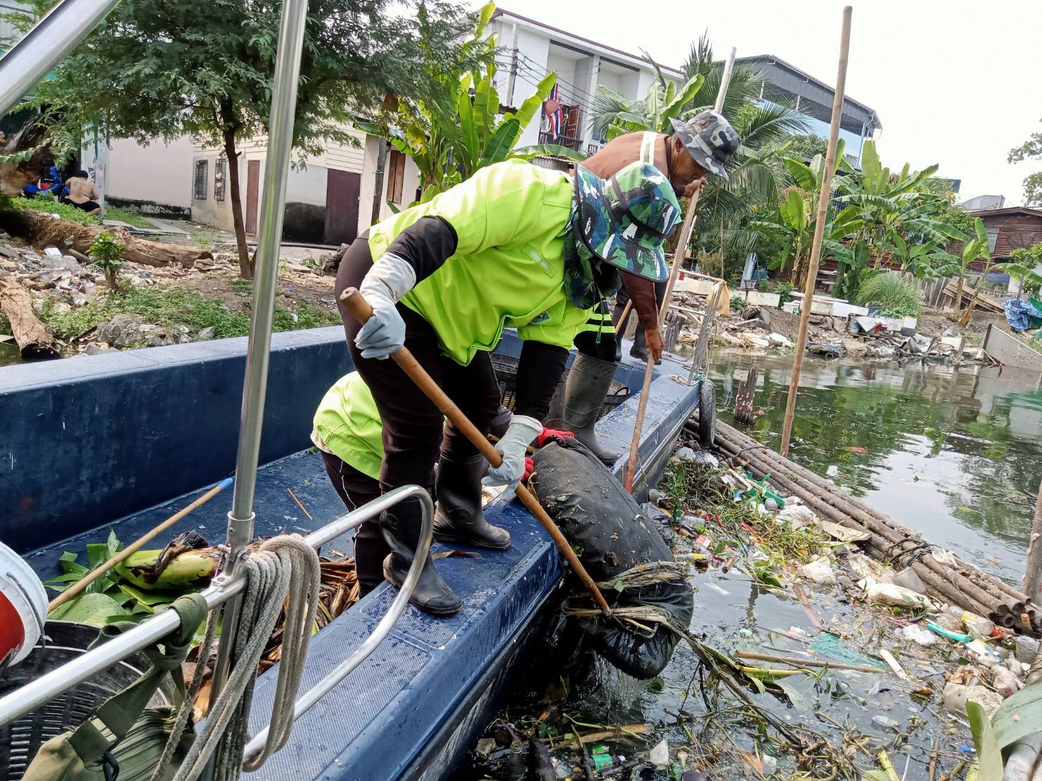 เจ้าหน้าที่ เก็บขยะและวัชพืช คลองสอง-คลองลาดพร้าว พื้นที่เขตหลักสี่ เขตบางเขนและเขตลาดพร้าว