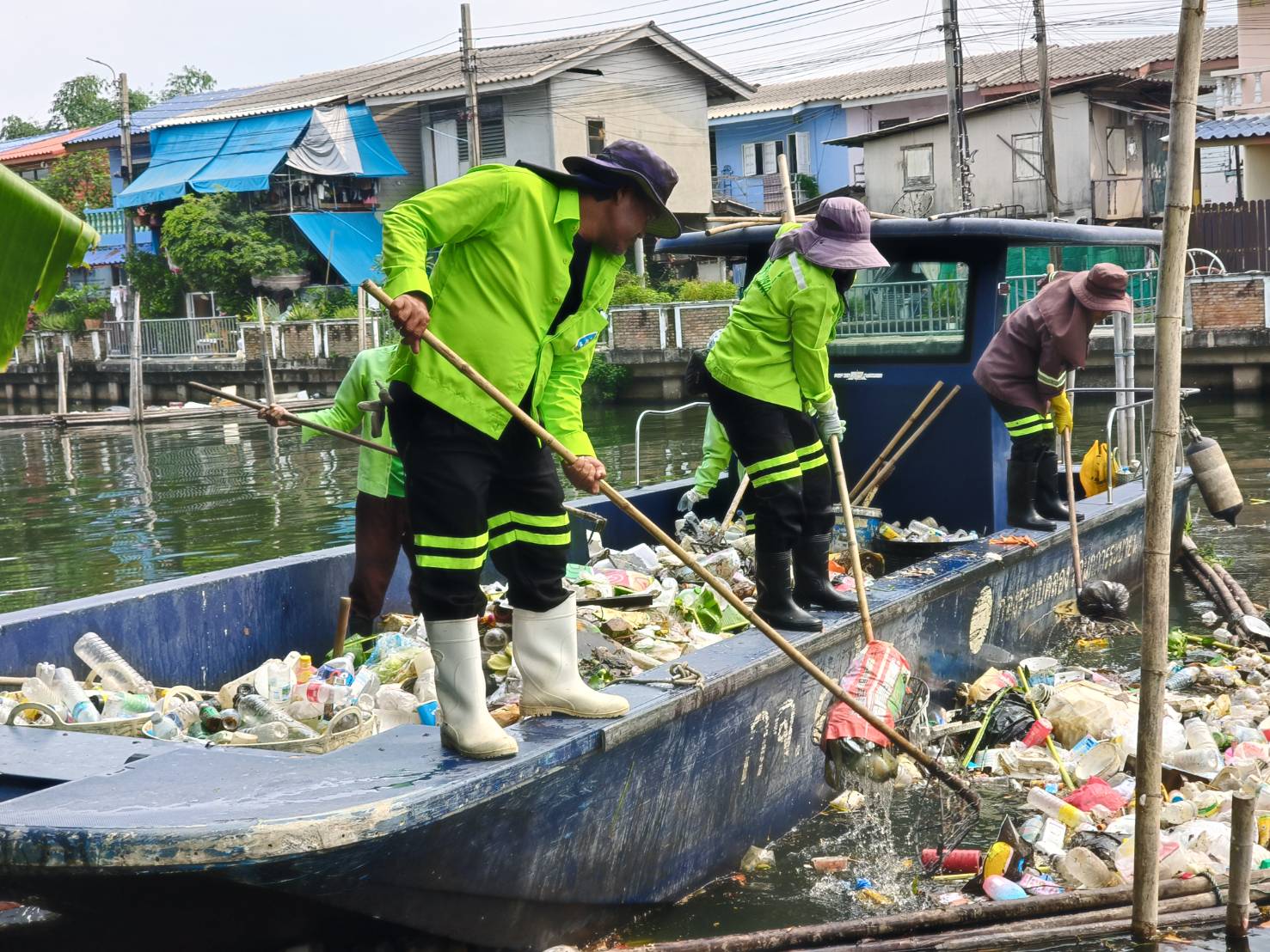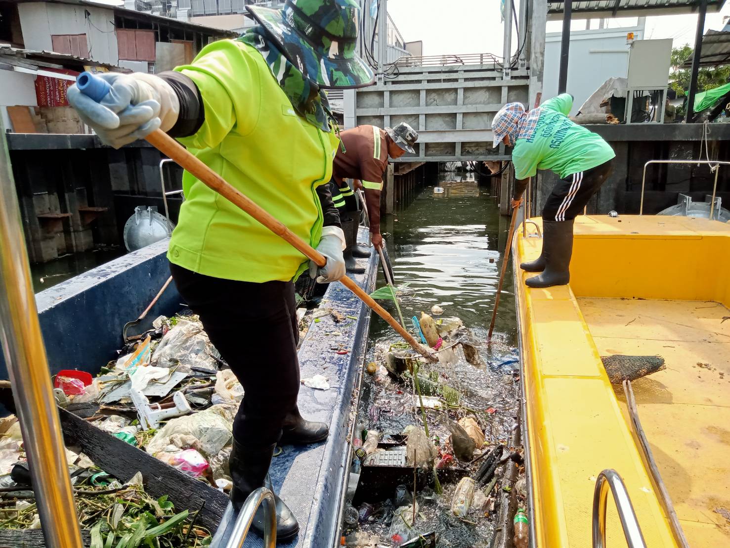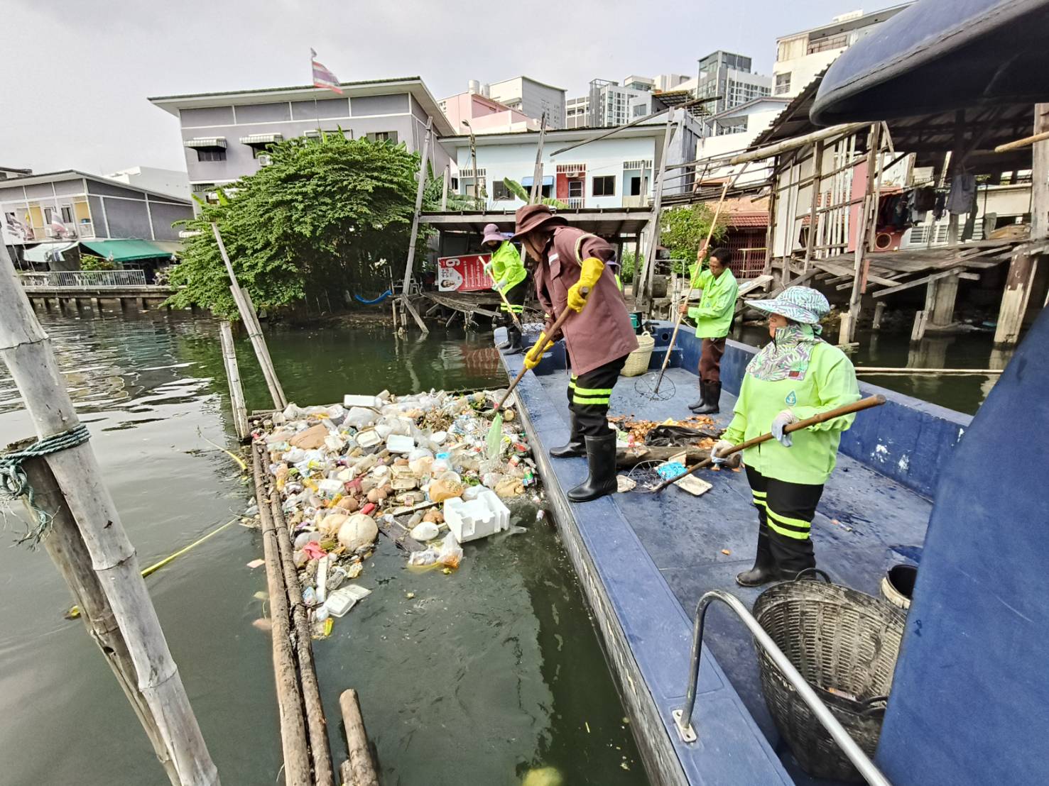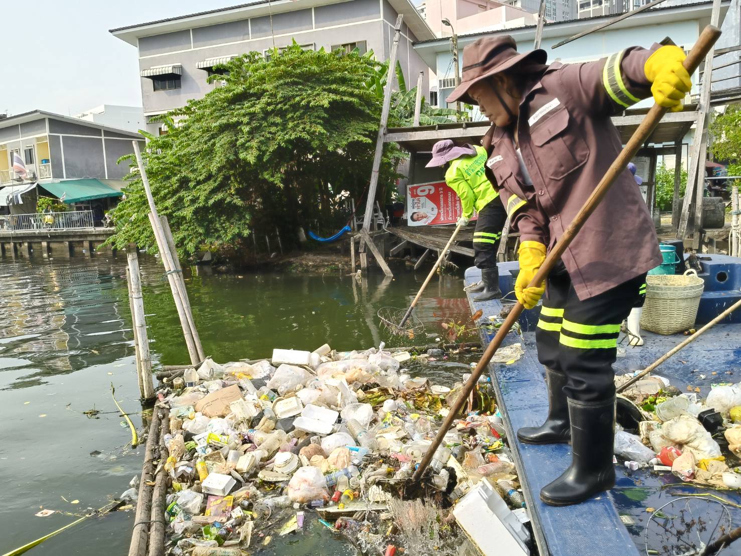เจ้าหน้าที่ เก็บขยะและวัชพืช คลองสอง-คลองลาดพร้าว พื้นที่เขตหลักสี่ เขตบางเขนและเขตลาดพร้าว