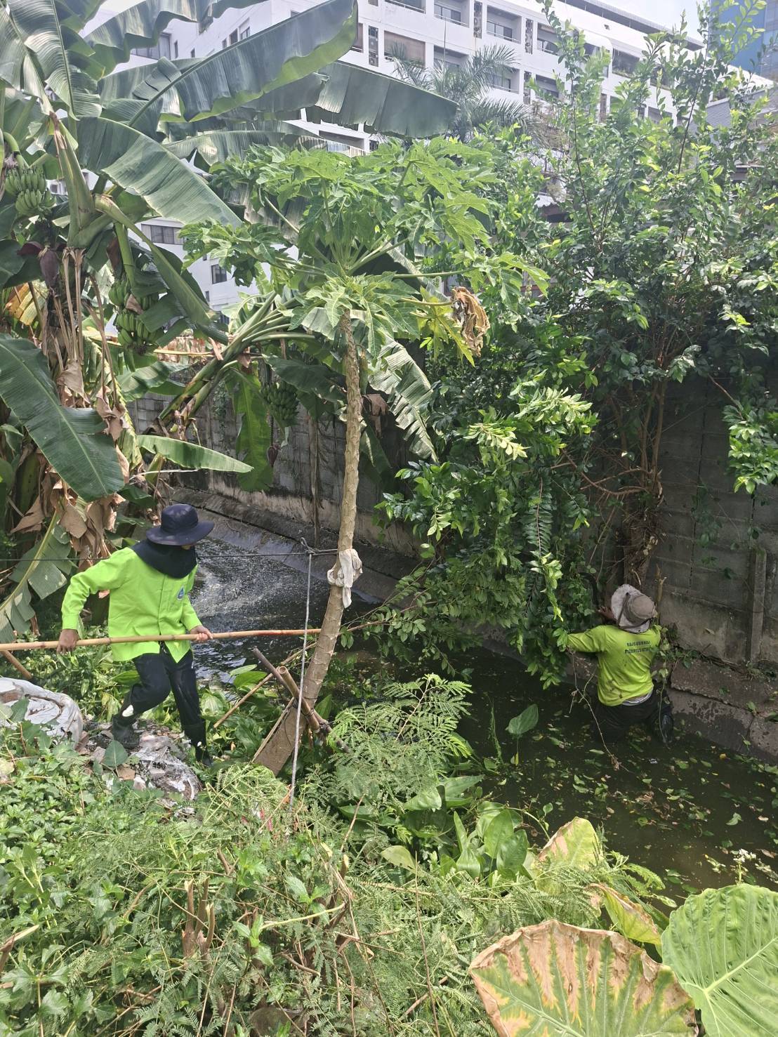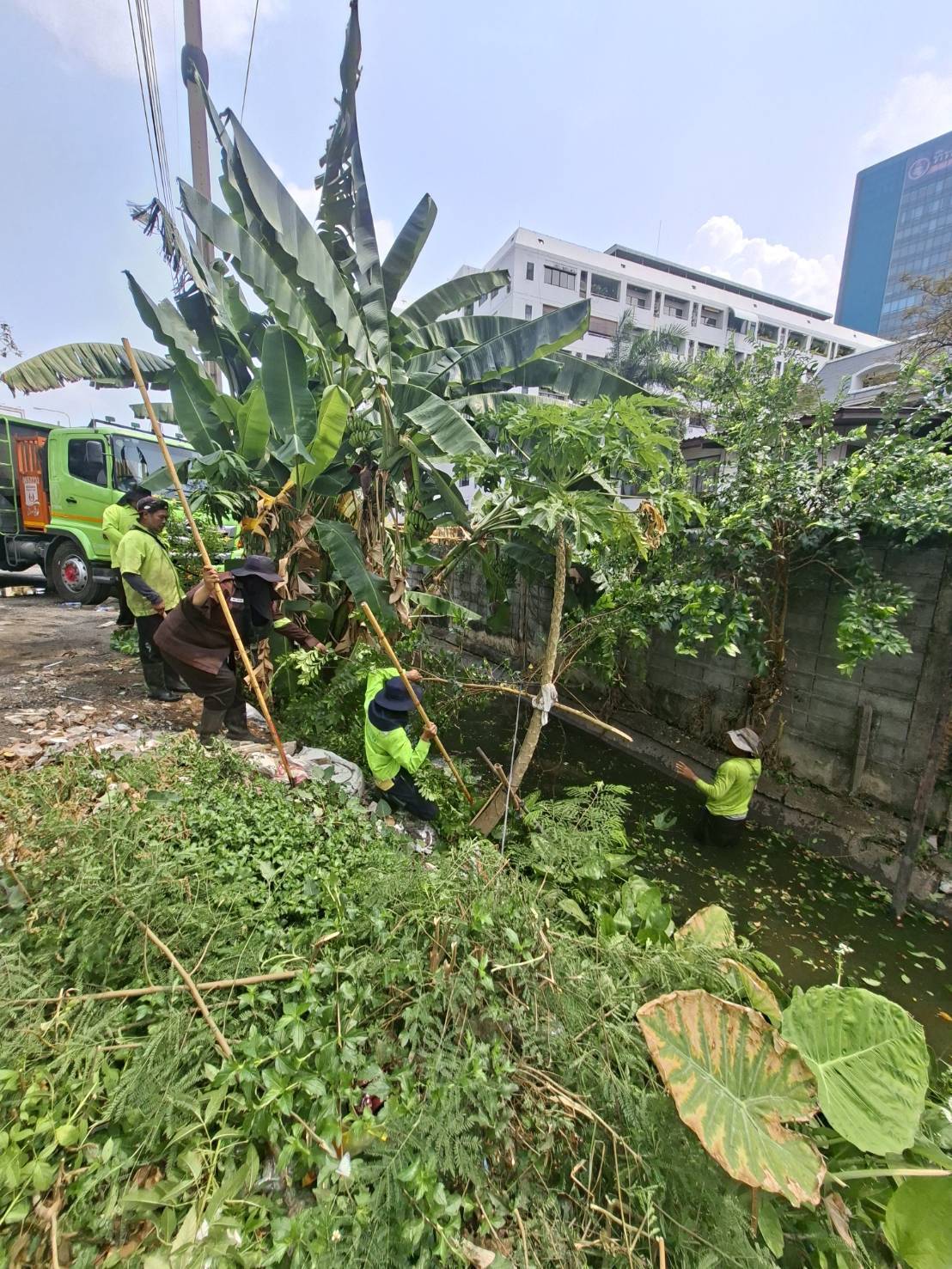 เจ้าหน้าที่ จัดเก็บขยะวัชพืชคลองเสาหิน พื้นที่เขตยานนาวา