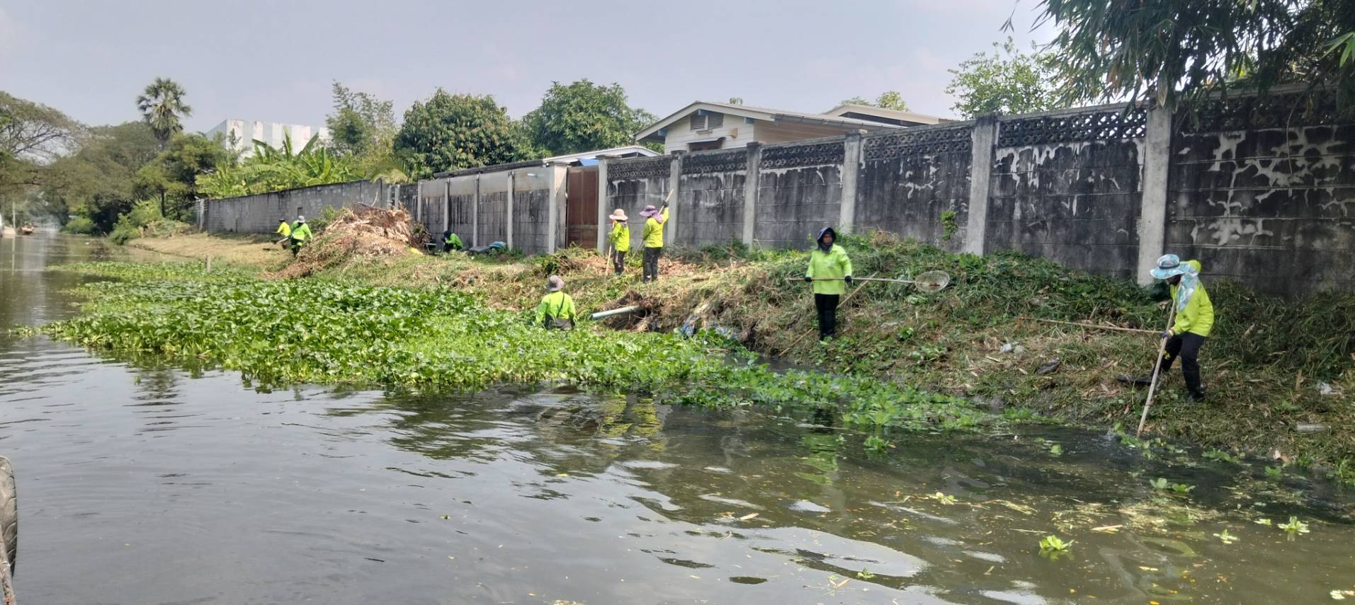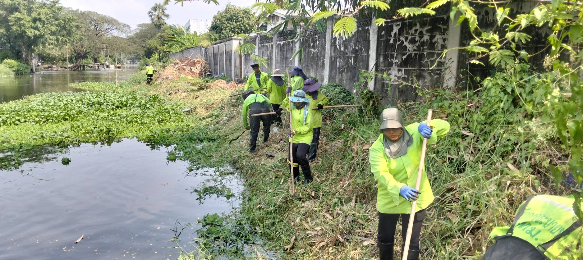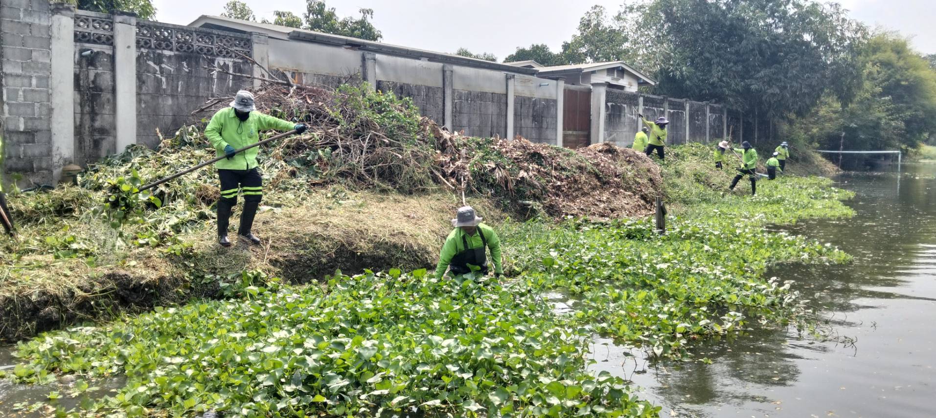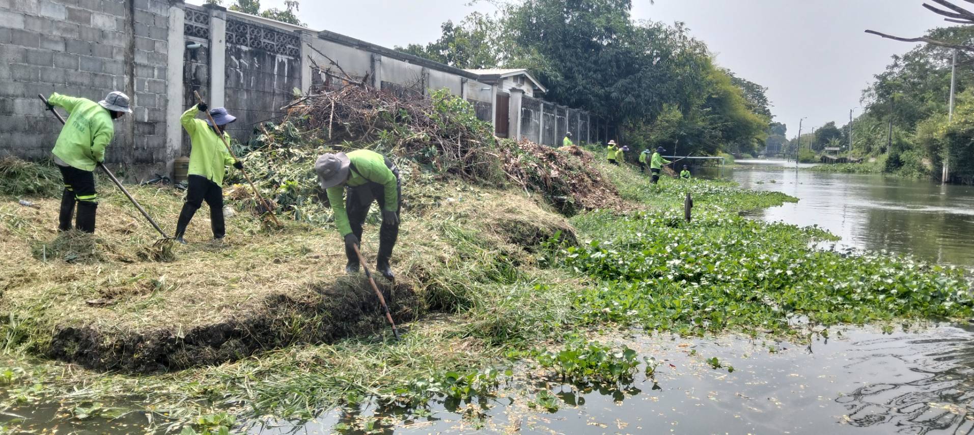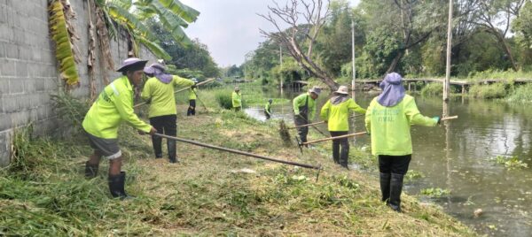 เจ้าหน้าที่ จัดเก็บวัชพืชตัดหญ้าริมคลองหนึ่ง พื้นที่เขตลาดกระบัง