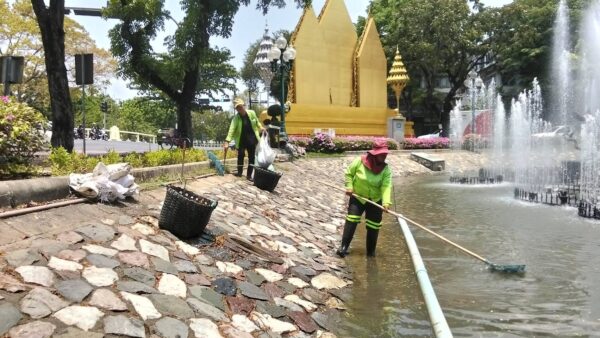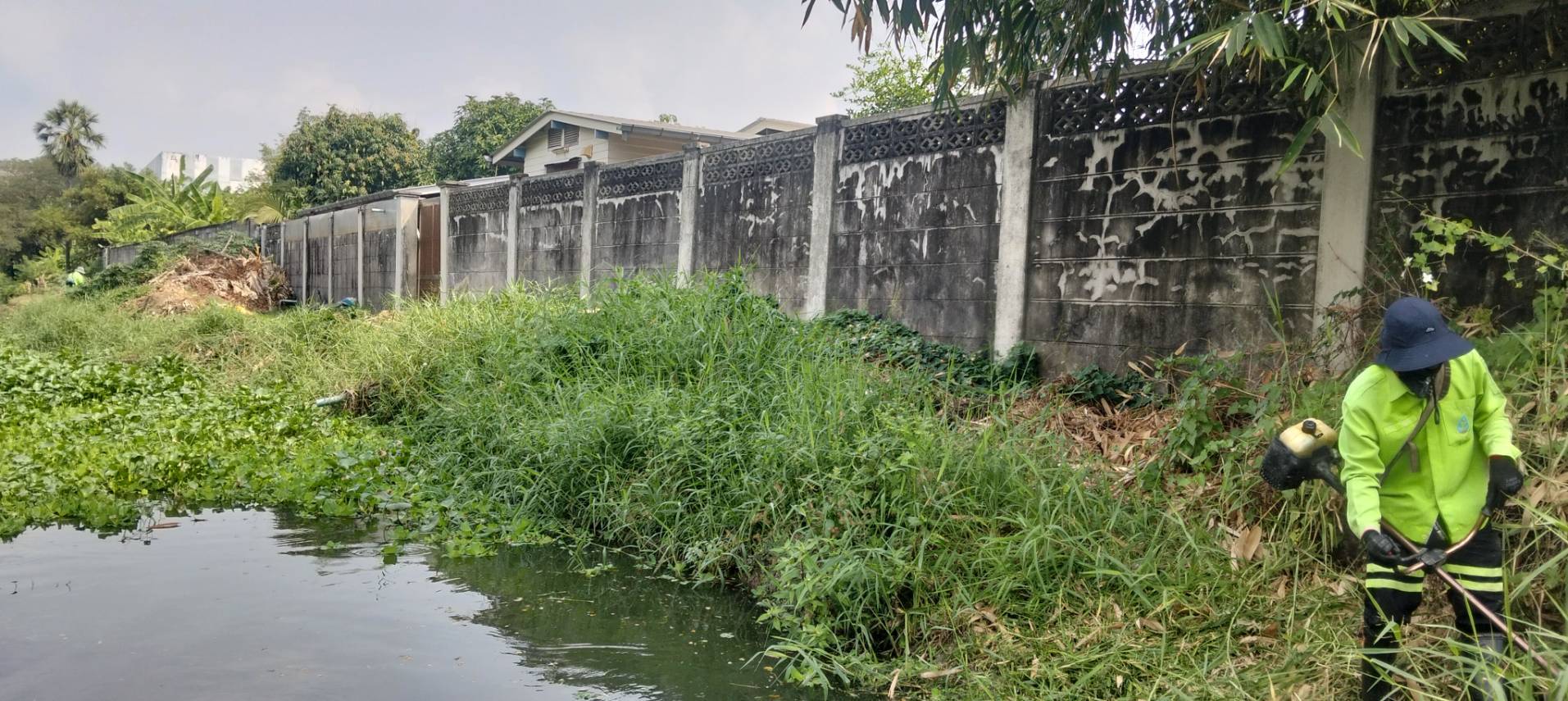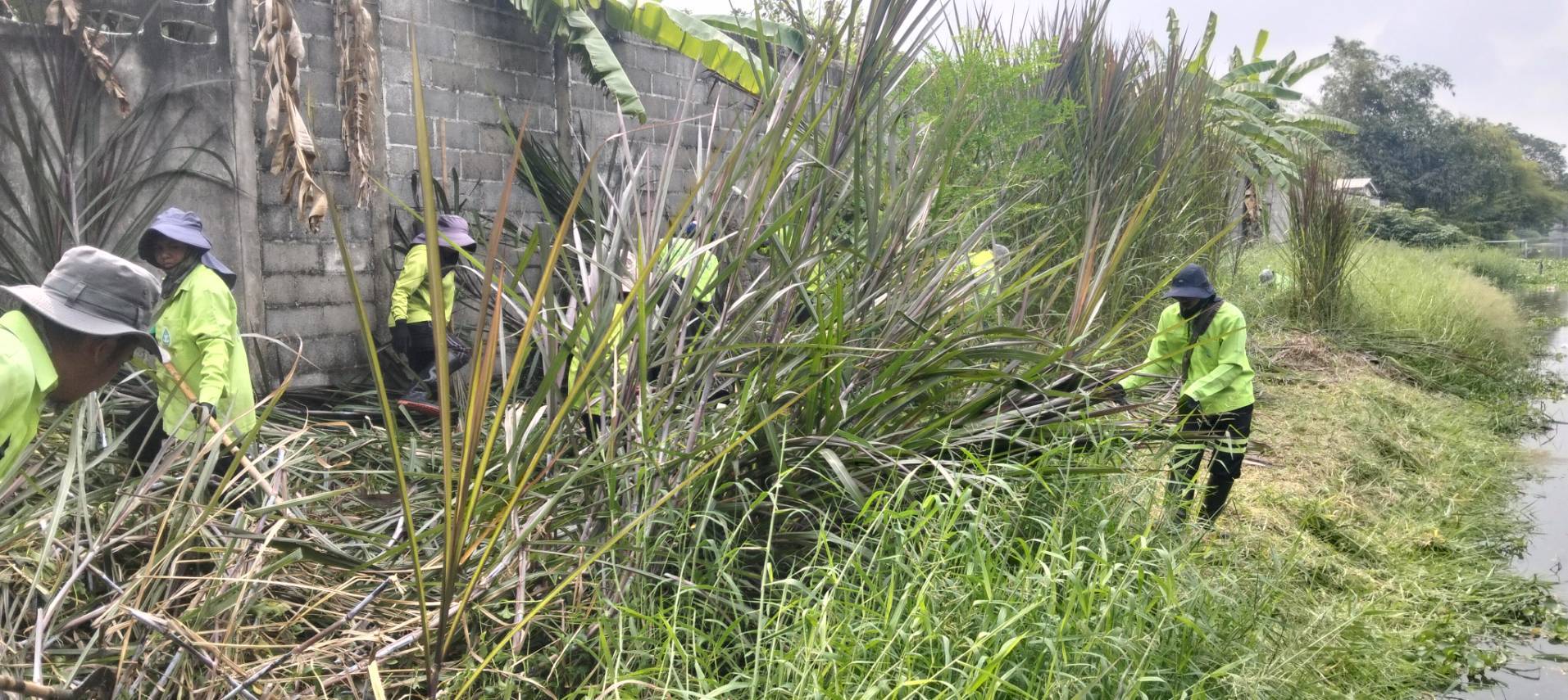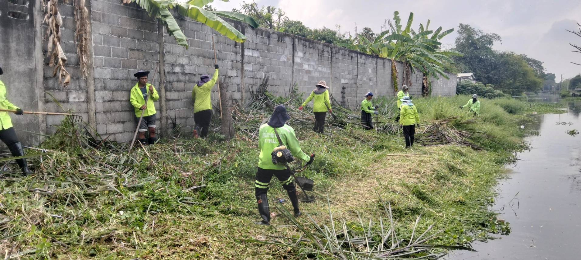 เจ้าหน้าที่ จัดเก็บวัชพืชตัดหญ้าริมคลองหนึ่ง พื้นที่เขตลาดกระบัง