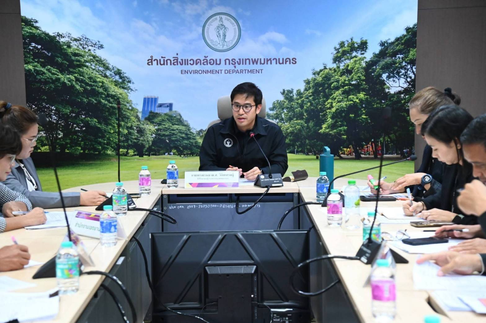 (19 ก.พ. 69) เวลา 10.30 น. นายพรพรหม วิกิตเศรษฐ์ ที่ปรึกษาของผู้ว่าราชการกรุงเทพมหานคร และผู้บริหารด้านความยั่งยืนของกรุงเทพมหานคร เป็นประธานการประชุมติดตามความก้าวหน้าการจัดเก็บขยะเศษอาหารภาคครัวเรือน สำหรับบ้านประชาชนที่ลงทะเบียนเข้าร่วมโครงการ “บ้านนี้ไม่เทรวม : แยกขยะลดค่าธรรมเนียม” ของกรุงเทพมหานคร ในพื้นที่เขตยานนาวา เขตบางคอแหลม และเขตสาทร เพื่อรับทราบปัญหา และอุปสรรคในการดำเนินงานจัดเก็บขยะเศษอาหารภาคครัวเรือน โดยมีผู้บริหารและเจ้าหน้าที่สำนักสิ่งแวดล้อม ผู้แทนสำนักงานเขตยานนาวา เขตบางคอแหลม เขตสาทร และเจ้าหน้าที่ที่เกี่ยวข้องร่วมประชุม ณ ห้องประชุม 1 สำนักสิ่งแวดล้อม ศาลาว่าการกรุงเทพมหานคร ดินแดง