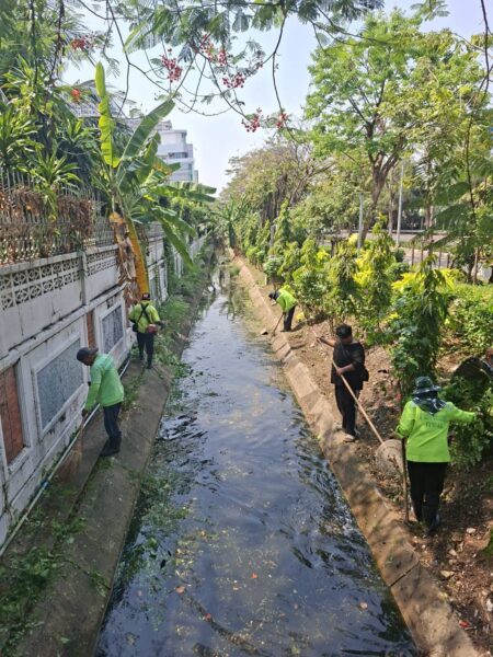 เจ้าหน้าที่ จัดเก็บขยะกำจัดวัชพืช คลองเสาหิน พื้นที่เขตยานนาวา