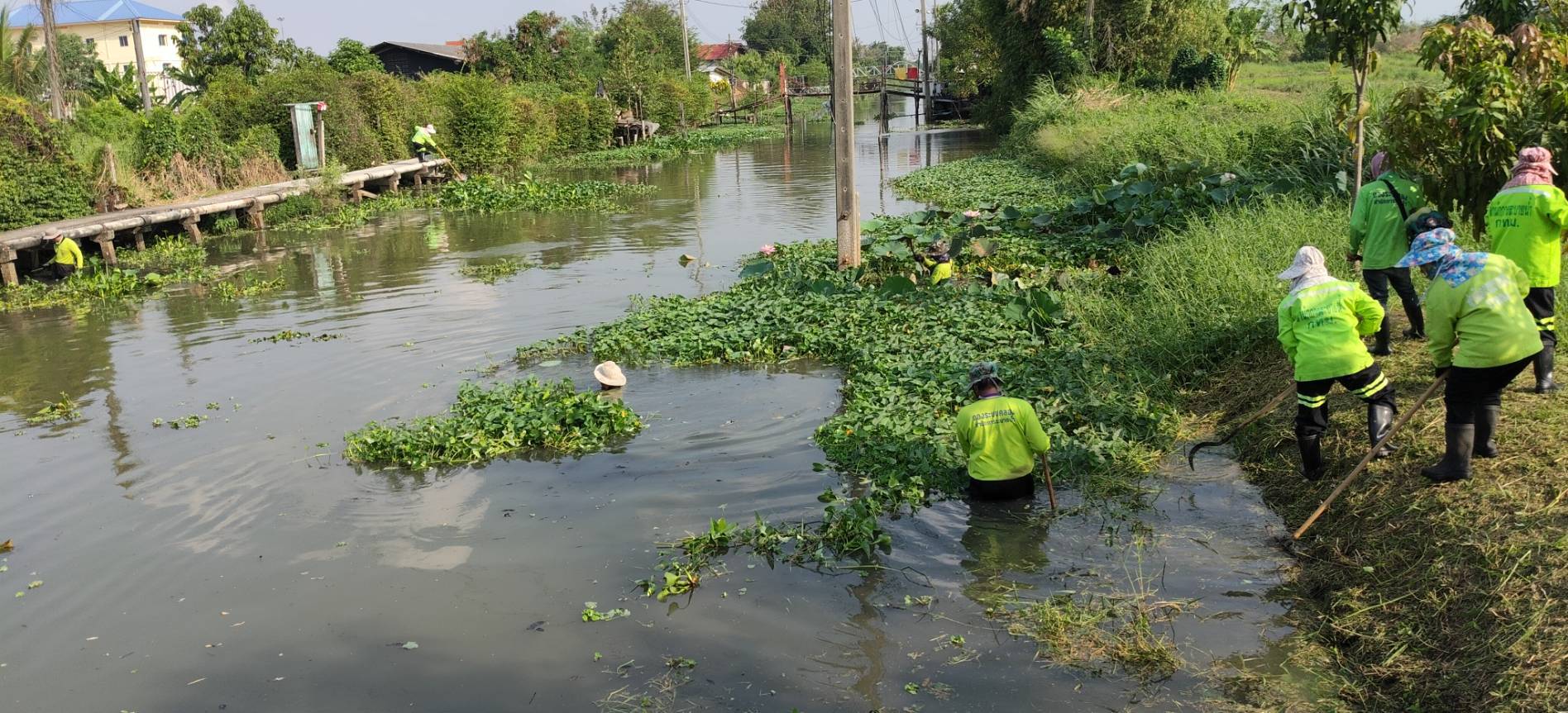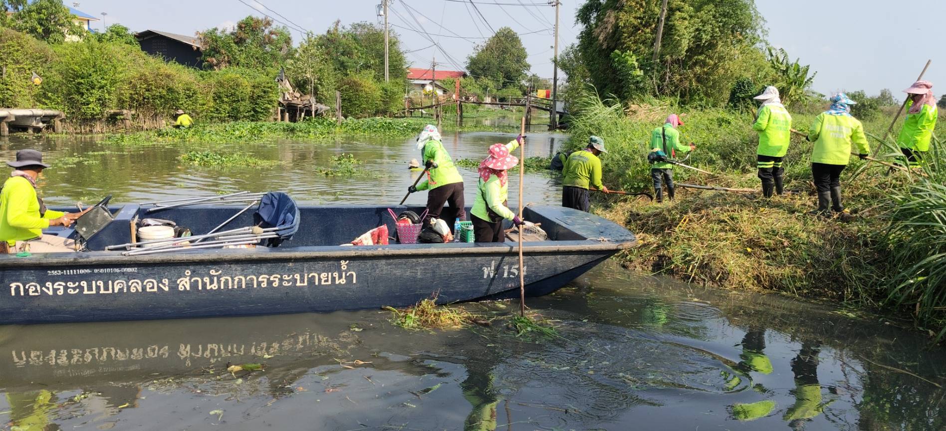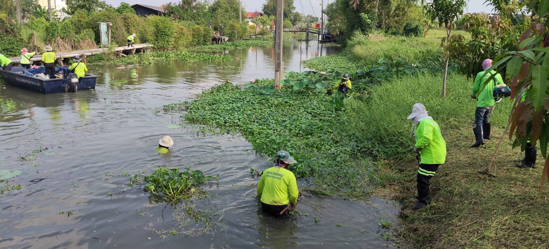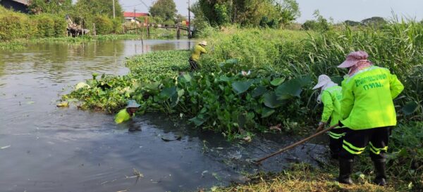 เจ้าหน้าที่ จัดเก็บขยะวัชพืชคลองสี่ประเวศ บริเวณซอยคุ้มเกล้า50 พื้นที่เขตลาดกระบัง