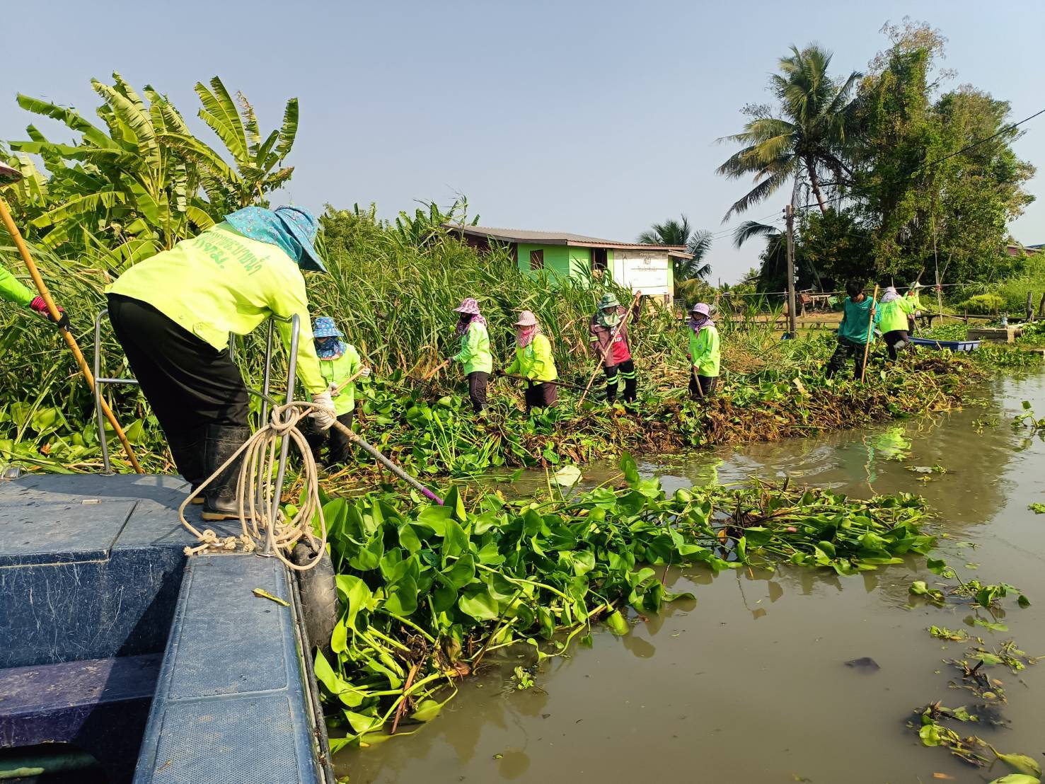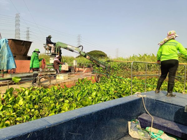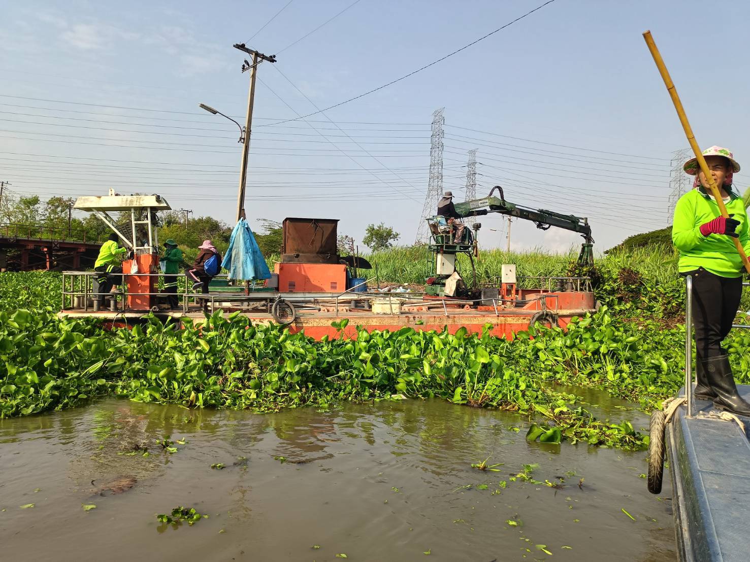 เจ้าหน้าที่ จัดเก็บวัชพืชคลองหลวงแพ่ง ช่วงสะพานรถไฟ พื้นที่เขตลาดกระบัง