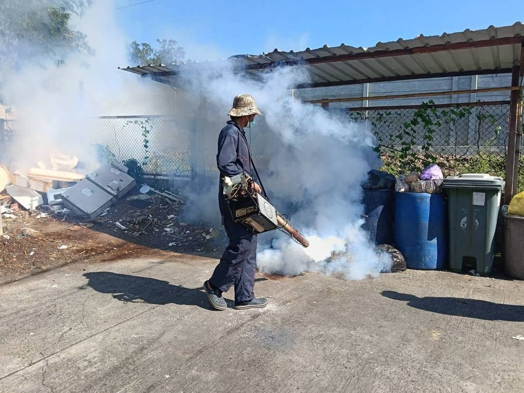 ทั้งนี้ สำนักงานเขตจะดำเนินการฉีดพ่นหมอกควันกำจัดยุงเมื่อพบผู้ป่วยโรคไข้เลือดออก โดยพ่นในบ้านผู้ป่วยและบริเวณโดยรอบในรัศมี 100 เมตร เพื่อกำจัดยุงตัวเต็มวัยที่อาจมีเชื้อไวรัสอยู่ในตัว กำหนดพ่นจำนวน 3 ครั้ง ได้แก่ วันพบผู้ป่วย (Day 0) วันที่ 3 และวันที่ 7 พร้อมติดตามสถานการณ์ต่อเนื่องตามมาตรการควบคุมโรค โดยการฉีดพ่นหมอกควันเป็นมาตรการที่จำเป็นในช่วงพบผู้ป่วยไข้เลือดออก เพื่อควบคุมการแพร่ระบาดอย่างรวดเร็ว โดยอาจมีกลิ่น หรือควันชั่วคราวจากสารละลายที่ใช้ผสม เช่น น้ำมันดีเซลในบางกรณี ซึ่งอาจก่อให้เกิดการระคายเคืองในผู้ที่ไวต่อกลิ่น หรือผู้ป่วยโรคทางเดินหายใจ สนอ. จึงแนะนำให้ประชาชนปิดบ้าน เก็บอาหาร และหลีกเลี่ยงการอยู่ในพื้นที่ระหว่างการพ่น หากมีอาการผิดปกติ เช่น ระคายเคืองตา แน่นหน้าอก หรือเวียนศีรษะ ควรออกจากพื้นที่และปรึกษาแพทย์