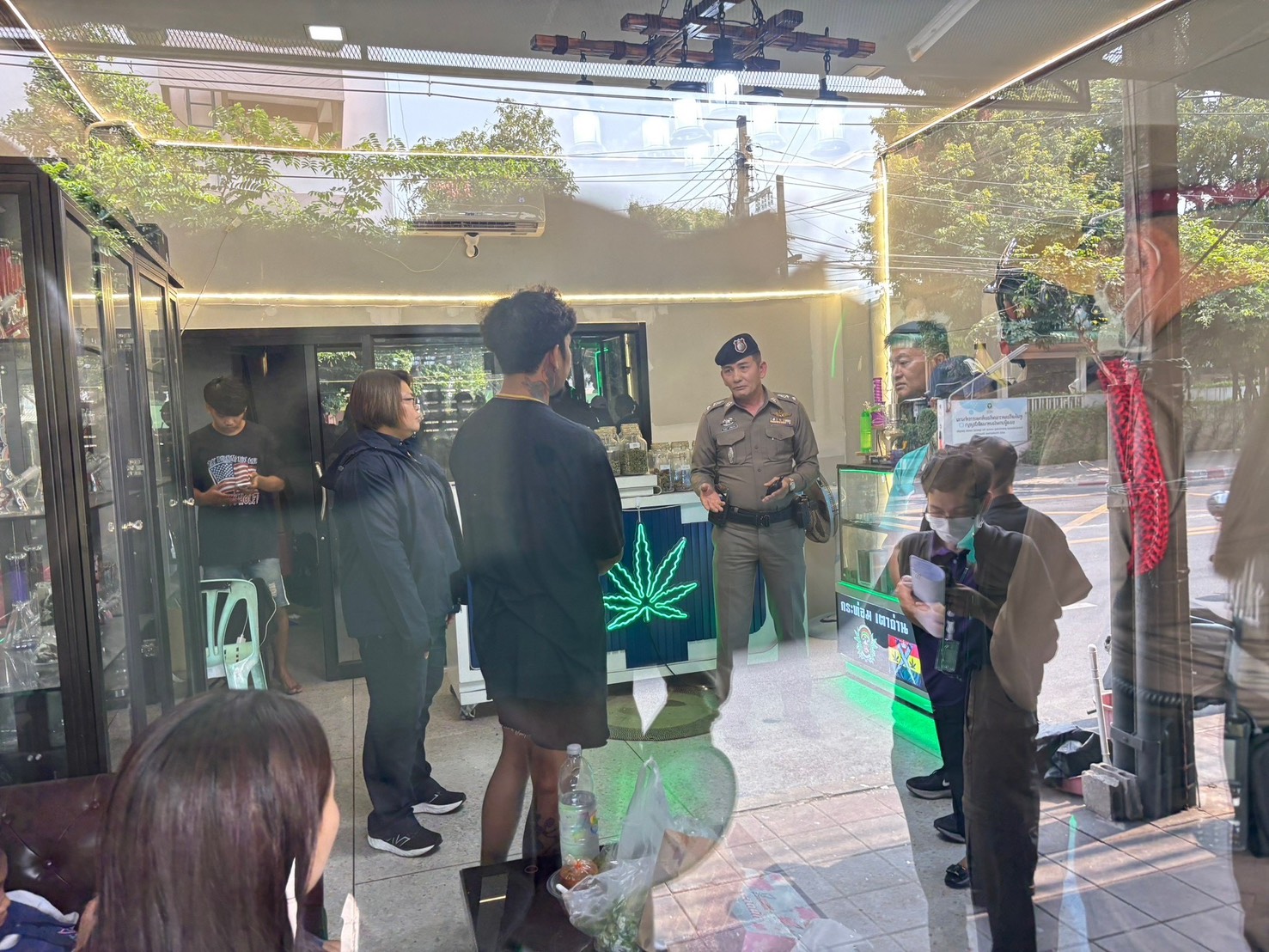 อย่างไรก็ตาม จากการตรวจสอบพบว่า ร้านดังกล่าวมีการจัดพื้นที่นั่งบริเวณหน้าร้าน ซึ่งอาจเข้าข่ายการจัดให้มีการสูบและจำหน่ายสมุนไพรควบคุม เพื่อการสูบในบริเวณสถานที่จำหน่ายได้ เจ้าหน้าที่จึงได้แจ้งให้ผู้ประกอบการปฏิบัติตามประกาศกระทรวงสาธารณสุข เรื่อง สมุนไพรควบคุม (กัญชา) พ.ศ.2568 อย่างเคร่งครัด เพื่อไม่ให้ขัดต่อกฎหมาย