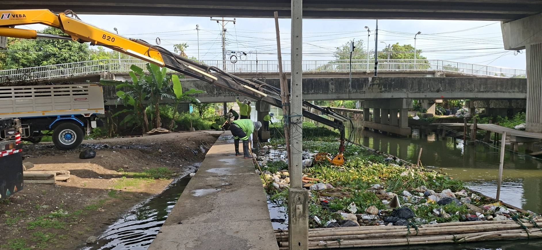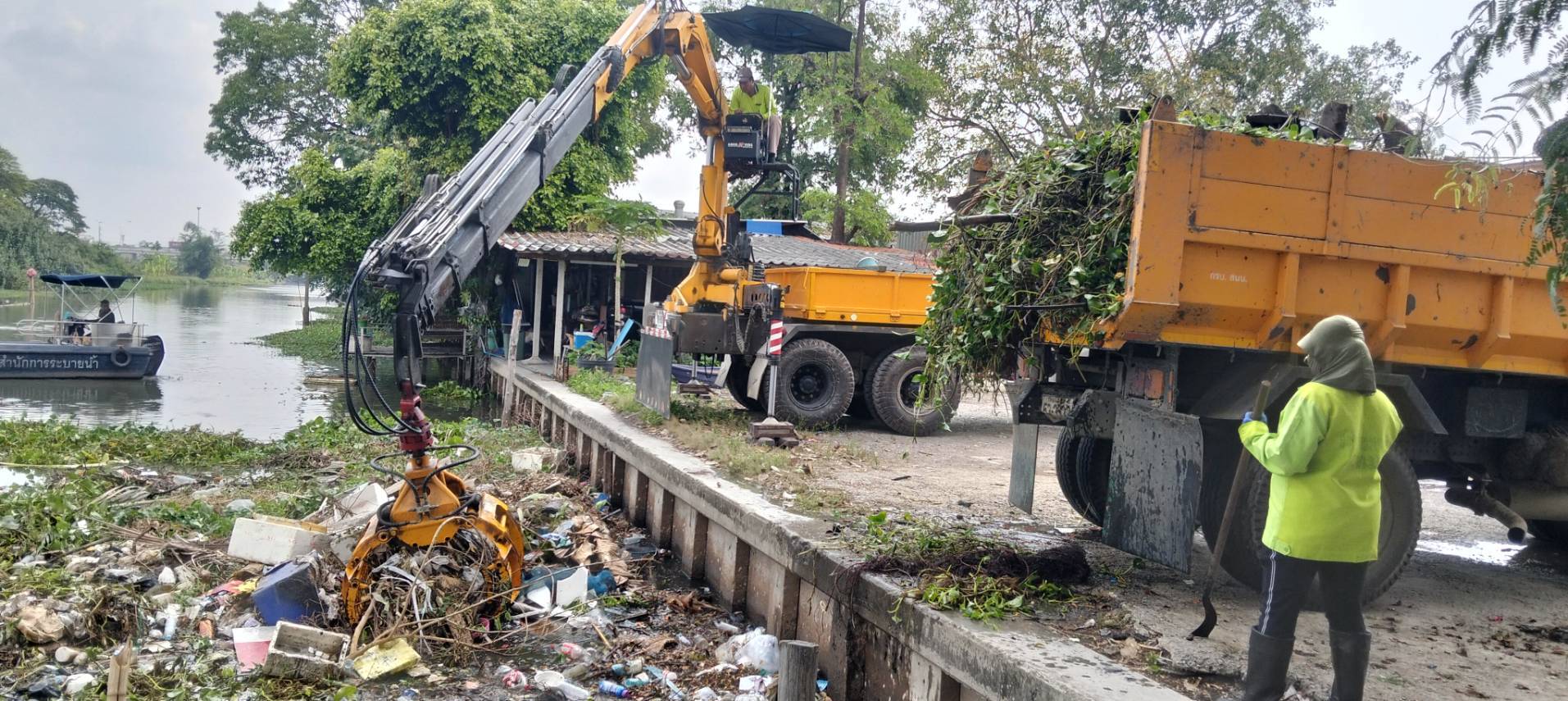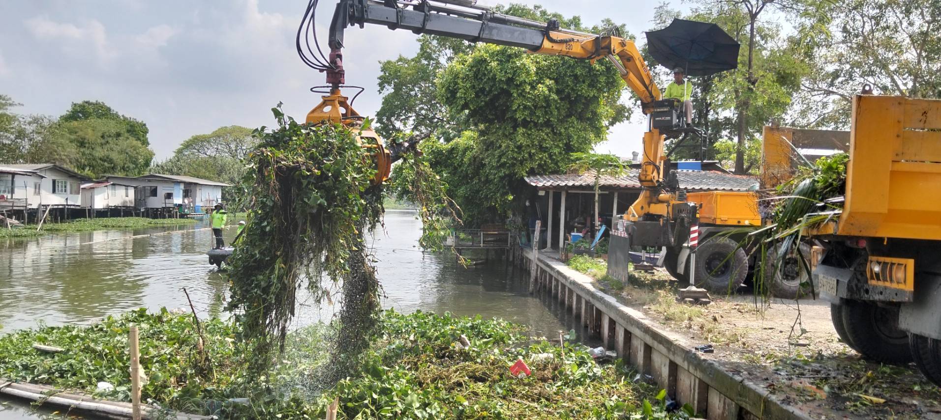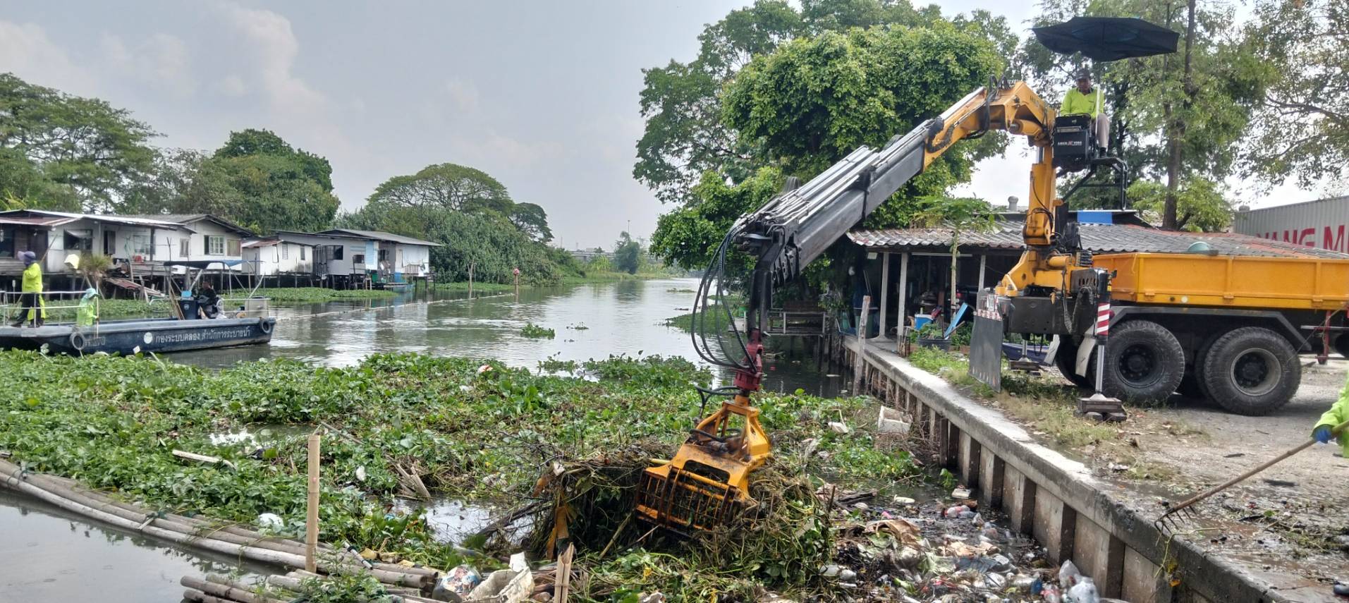 เจ้าหน้าที่ จัดเก็บขยะวัชพืชคลองสองต้นนุ่น-คลองประเวศบุรีรมย์ ช่วงแพถนนศรีนครินทร์ตัดใหม่-ช่วงแพสะพานประปา พื้นที่เขตลาดกระบัง