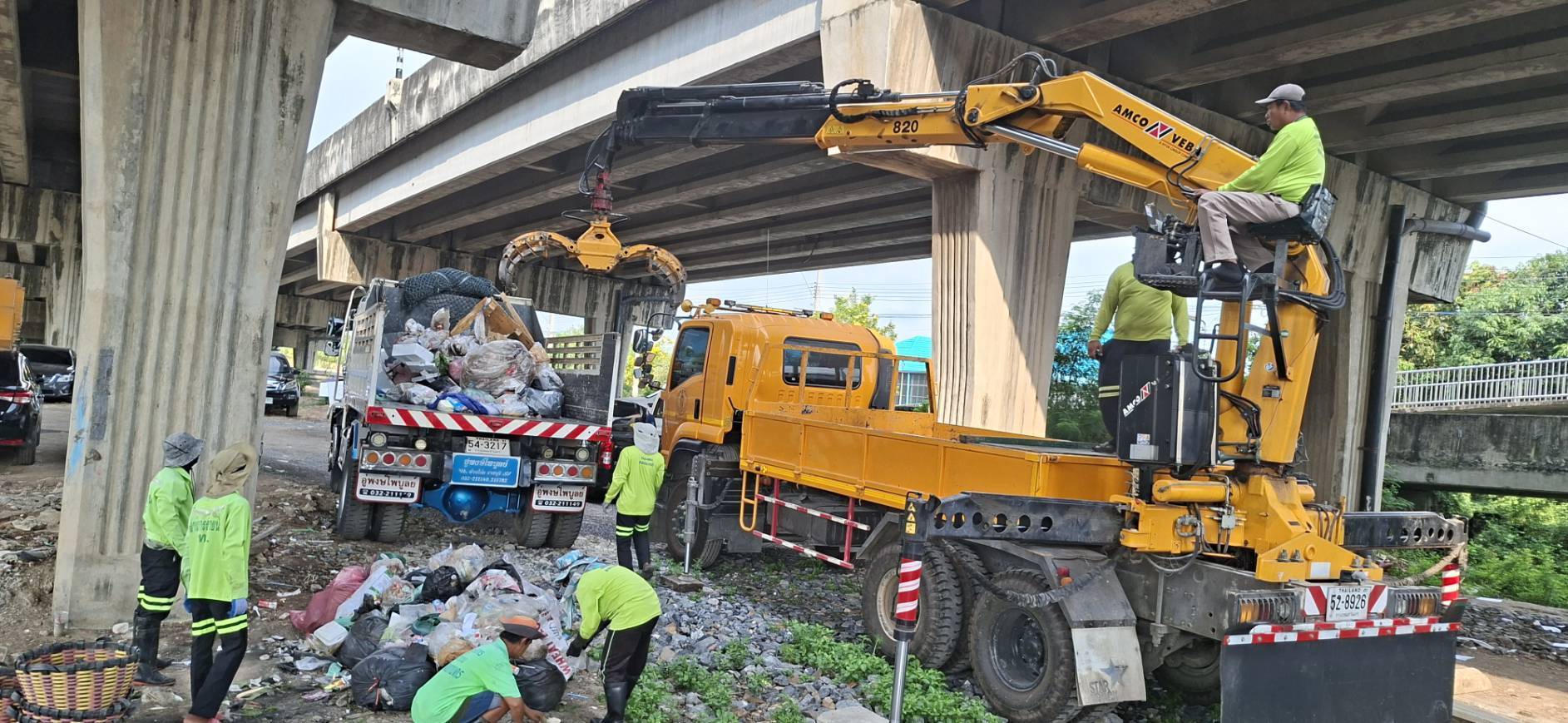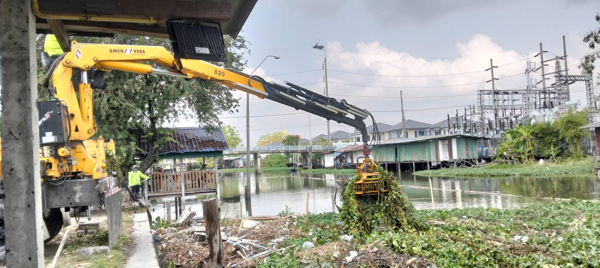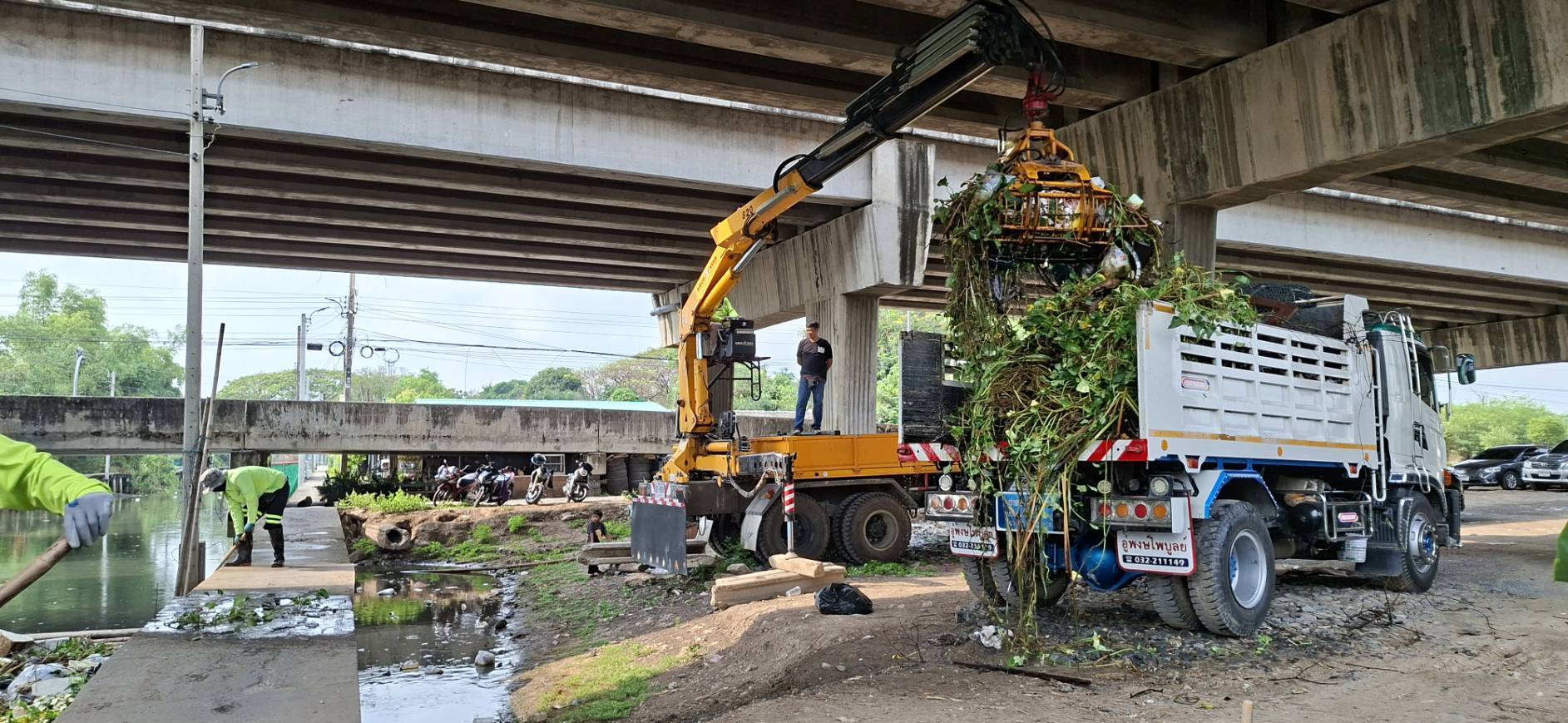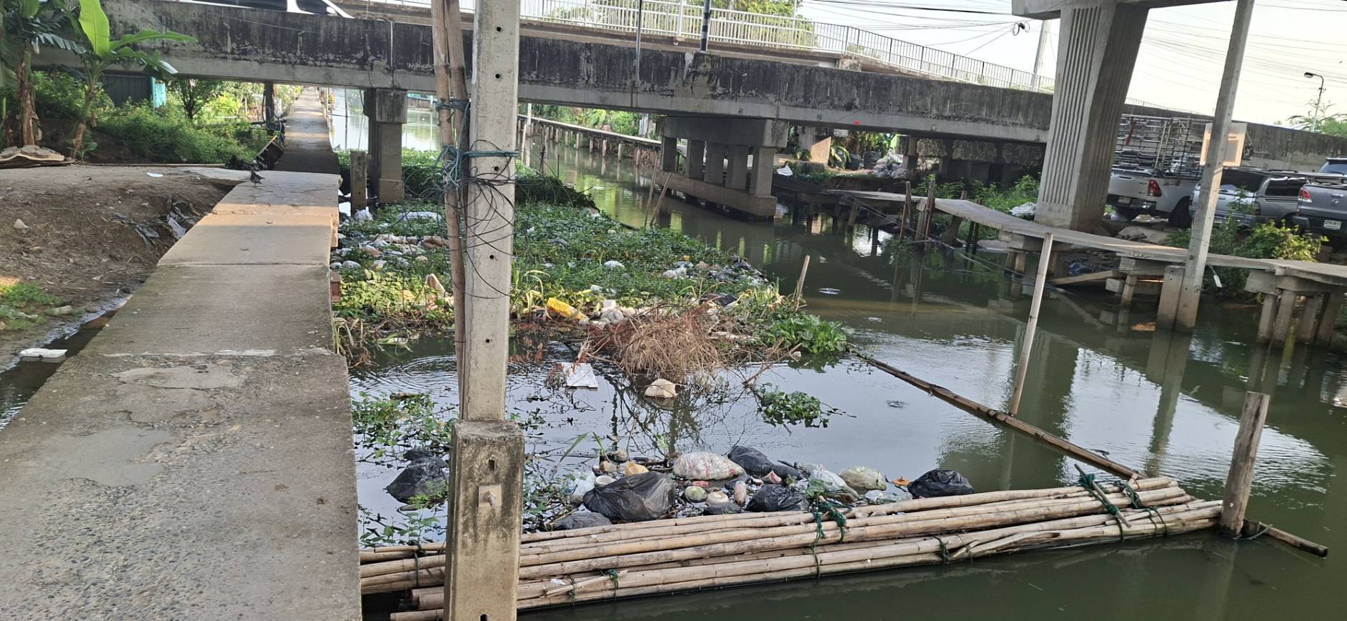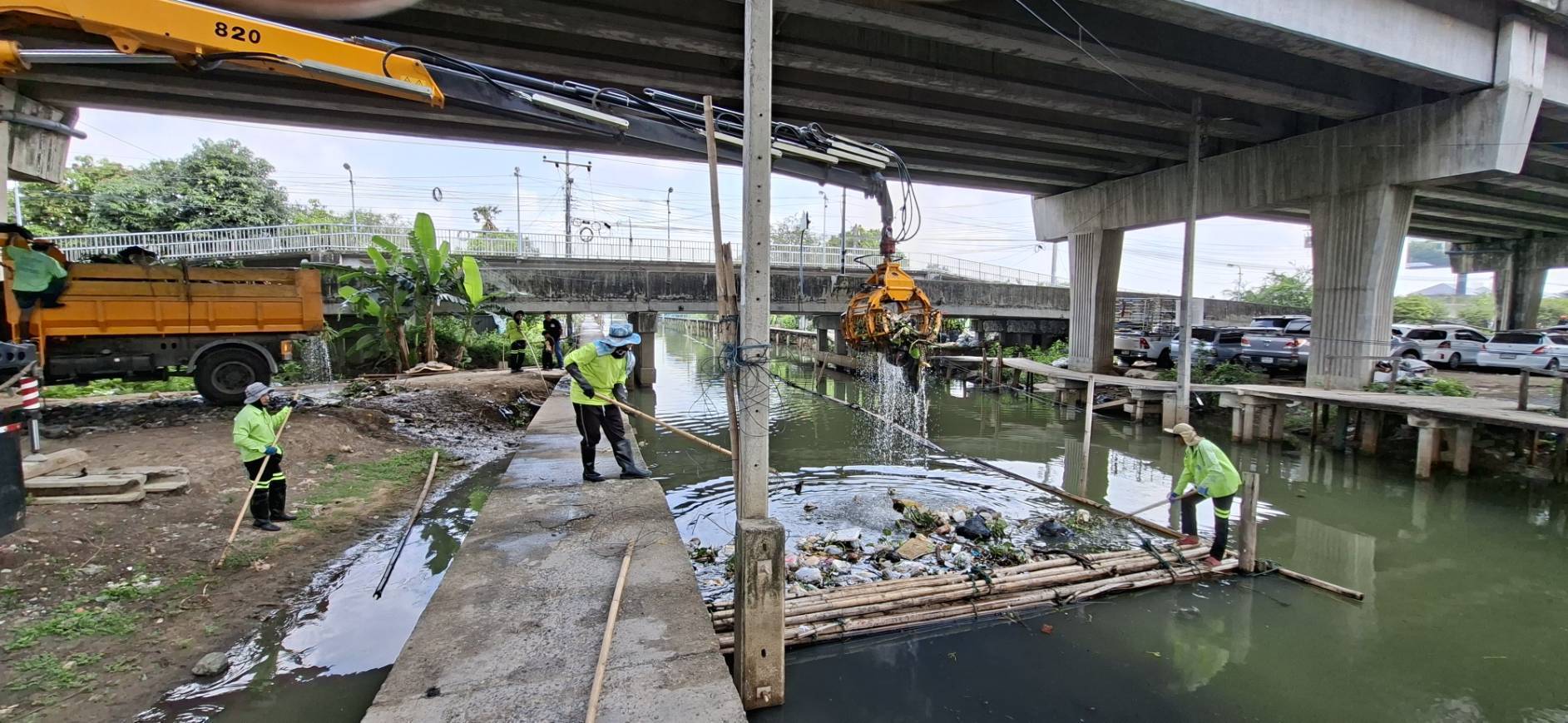 เจ้าหน้าที่ จัดเก็บขยะวัชพืชคลองสองต้นนุ่น-คลองประเวศบุรีรมย์ ช่วงแพถนนศรีนครินทร์ตัดใหม่-ช่วงแพสะพานประปา พื้นที่เขตลาดกระบัง