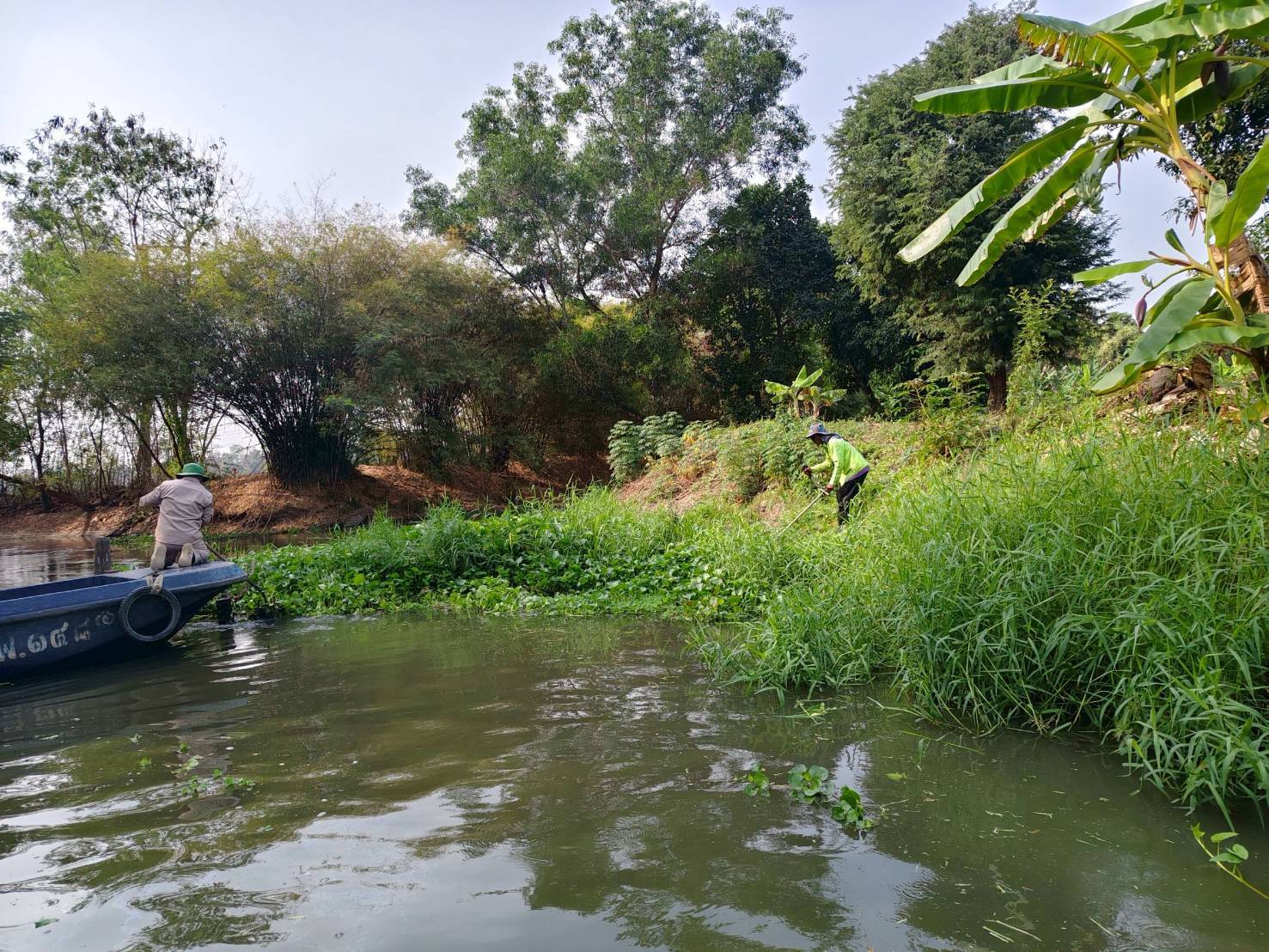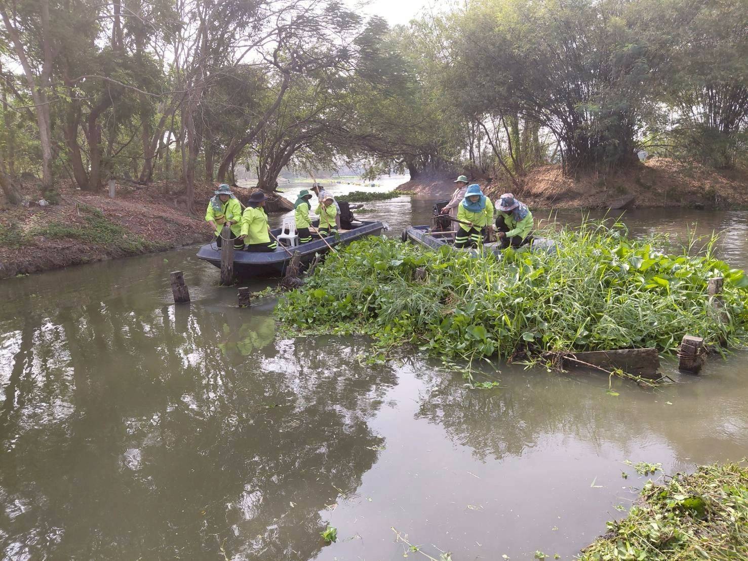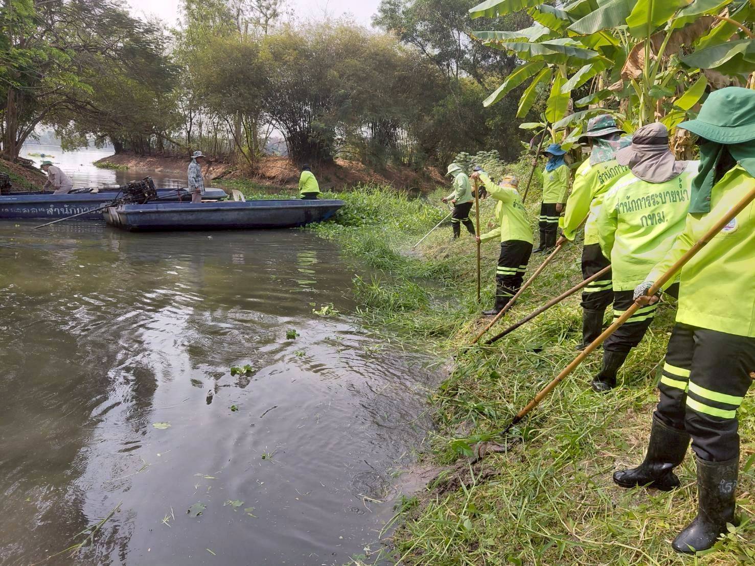 เจ้าหน้าที่ จัดเก็บขยะและวัชพืช คลองพระราชดำริ2 บริเวณซอยวัดสุขใจ26 พื้นที่เขตคลองสามวา
