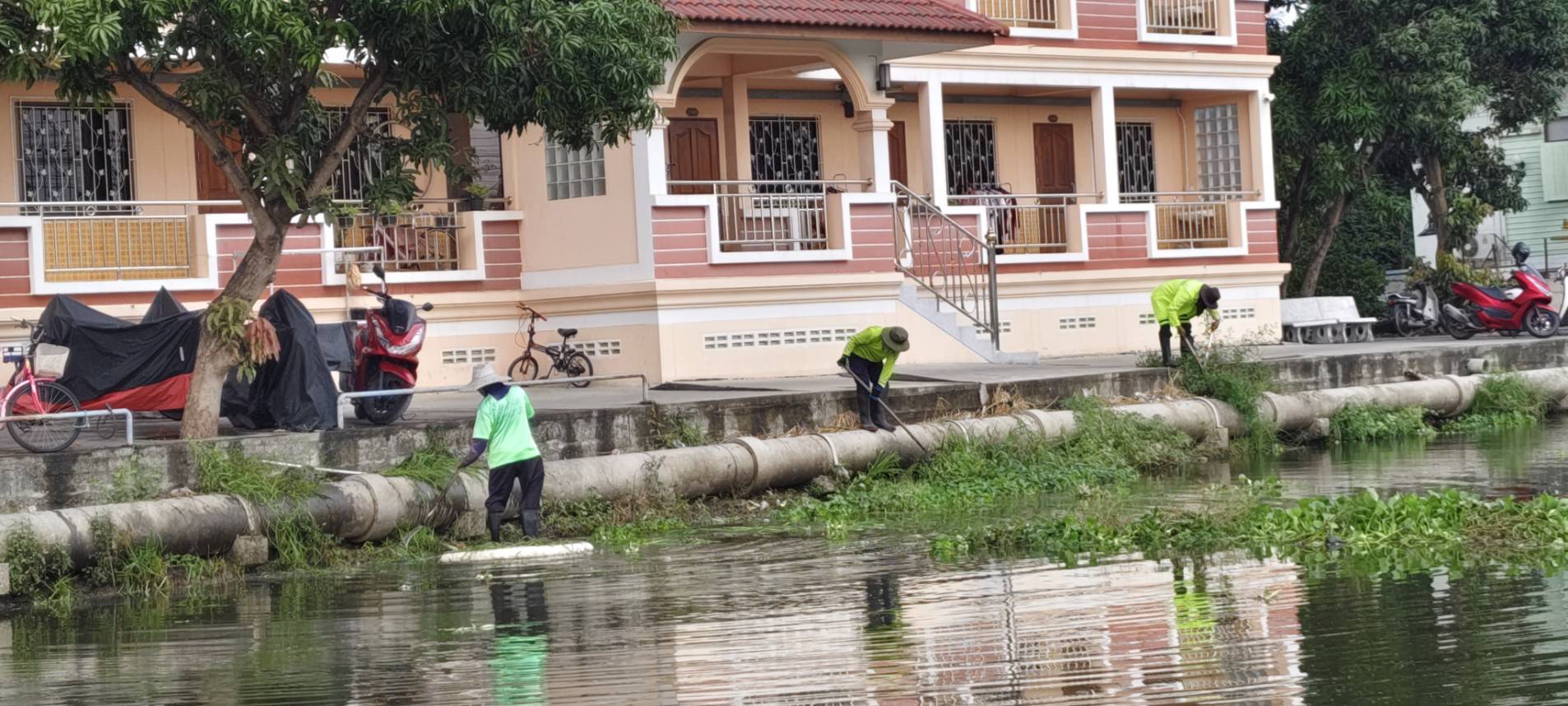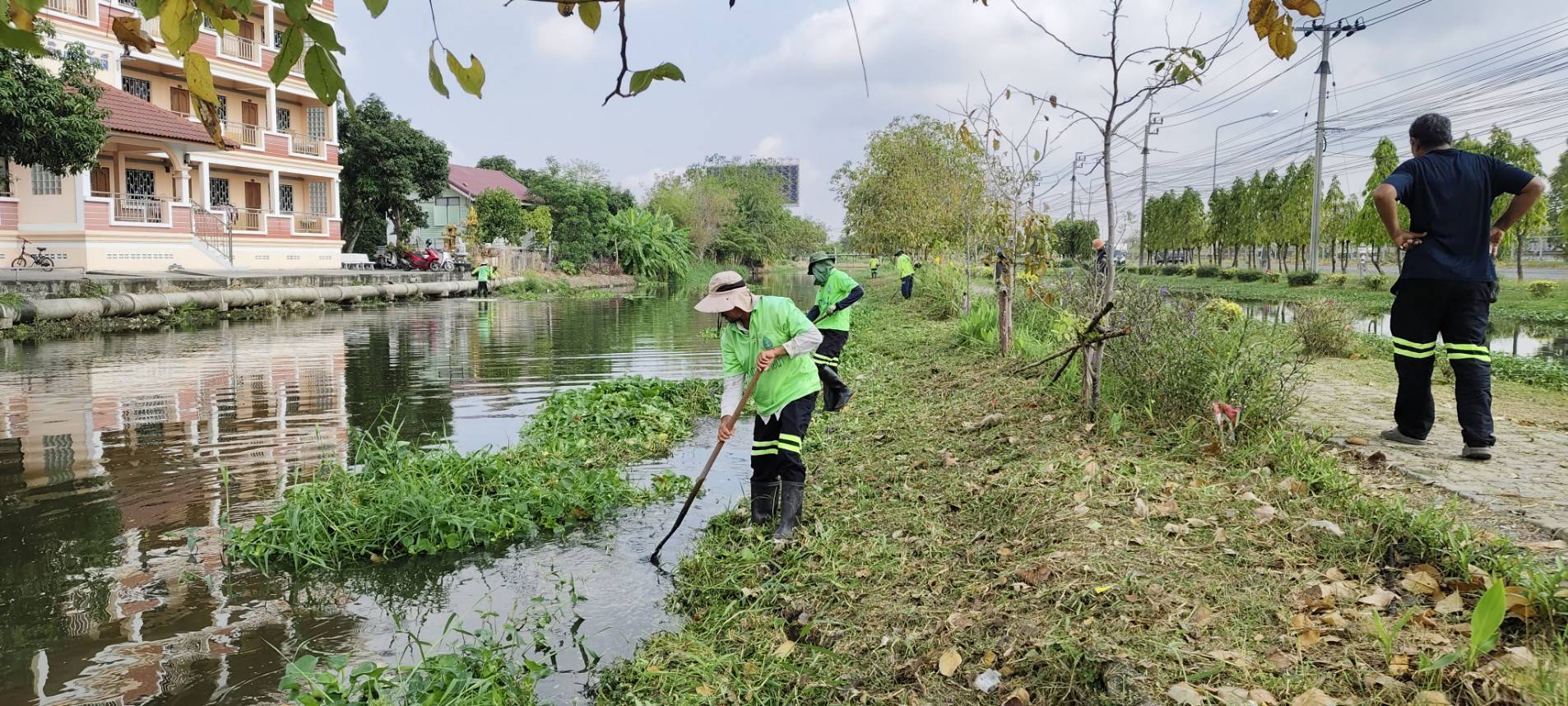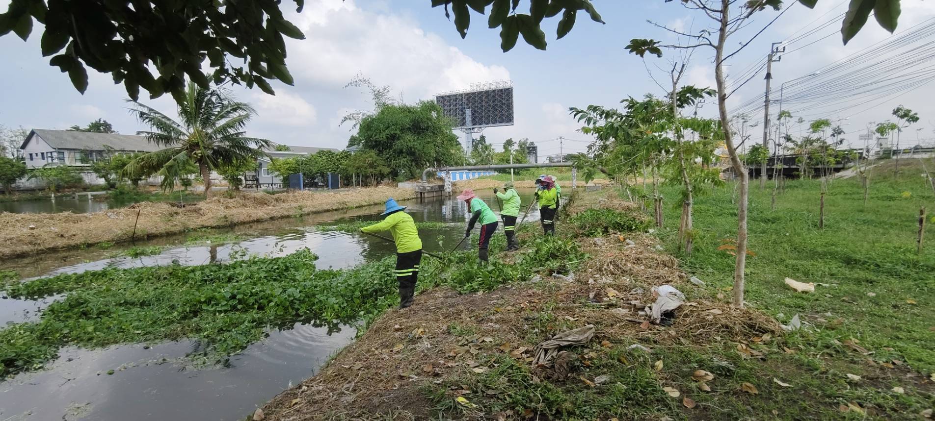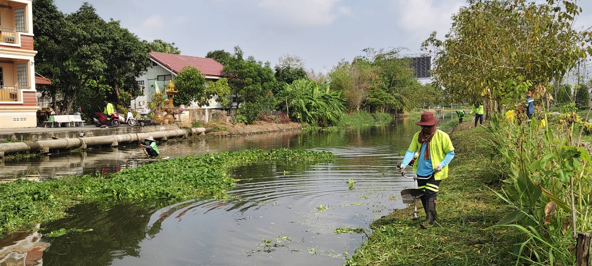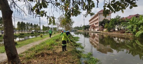 เจ้าหน้าที่ เก็บวัชพืชและขยะ คลองปักหลัก พื้นที่เขตประเวศ