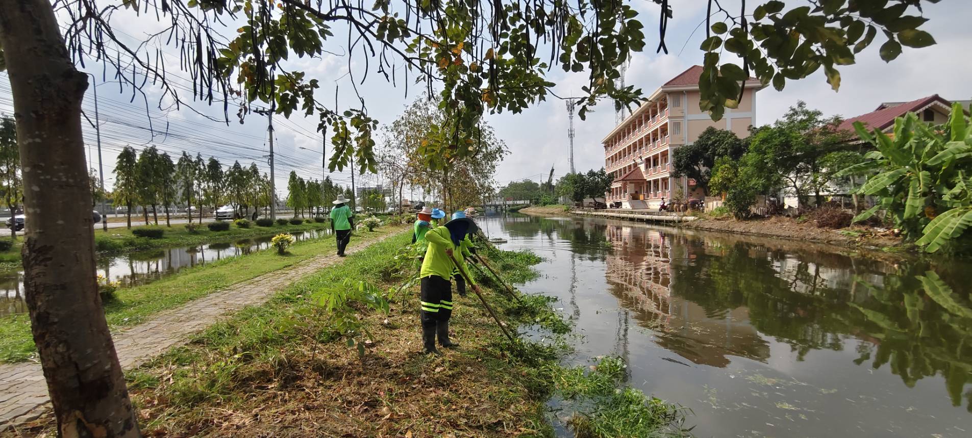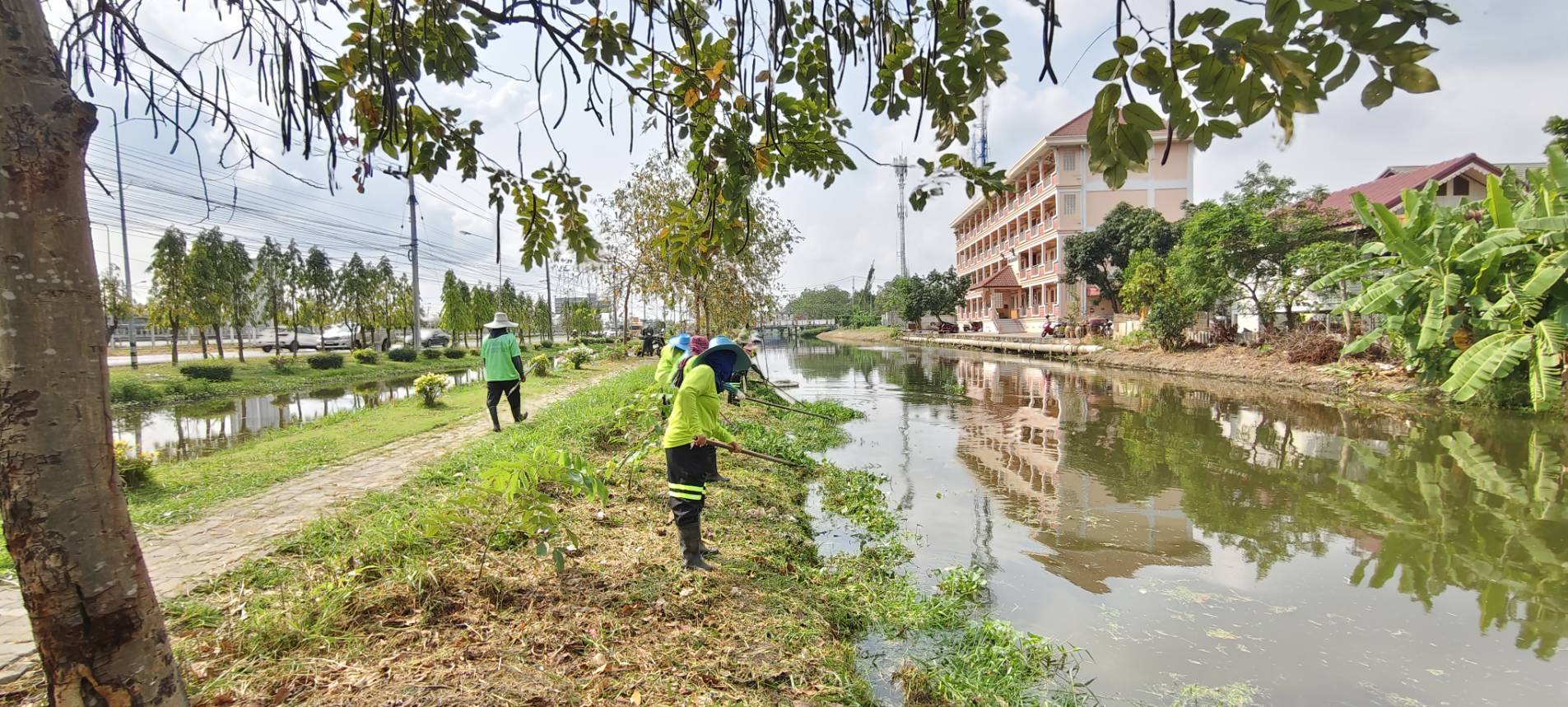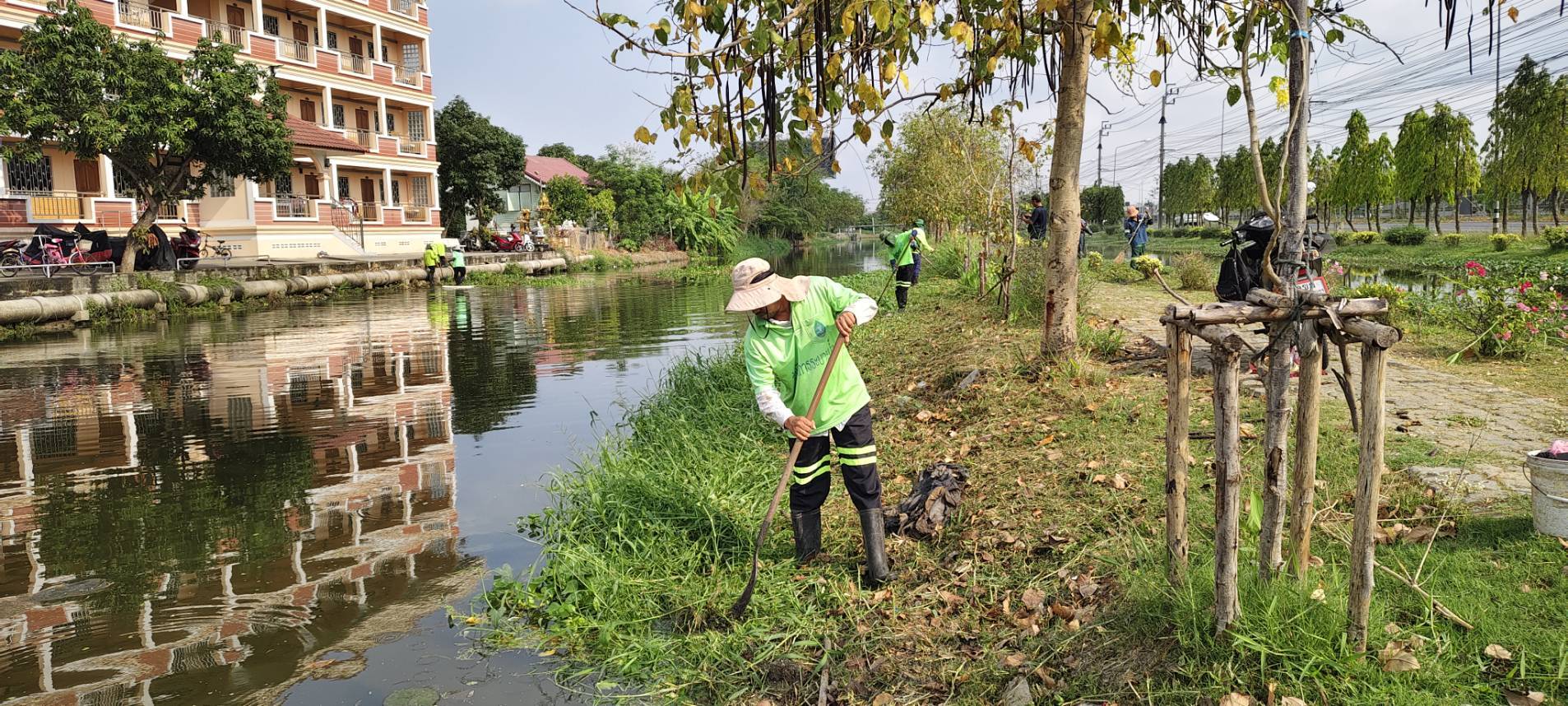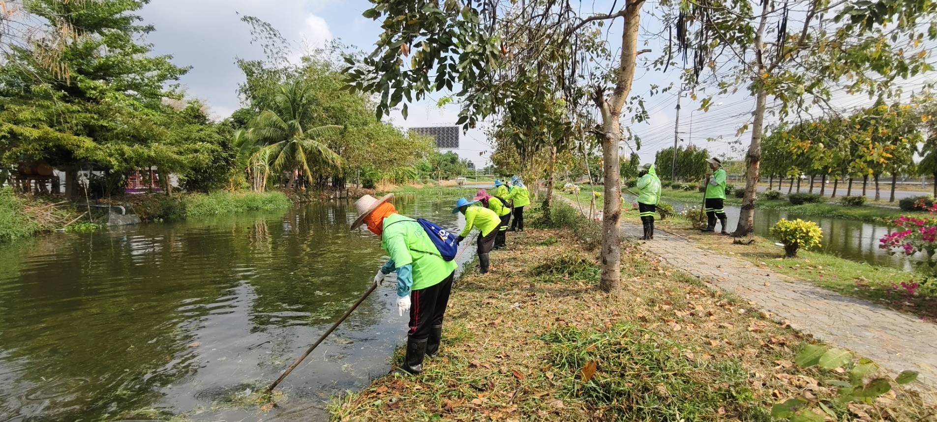 เจ้าหน้าที่ เก็บวัชพืชและขยะ คลองปักหลัก พื้นที่เขตประเวศ