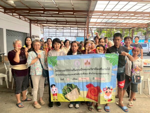 คลองสาน นำชุมชนวัดทองเพลงร่วมกิจกรรม “พับเหรียญโปรยทาน” ฝึกอบรมวิชาชีพเสริมรายได้