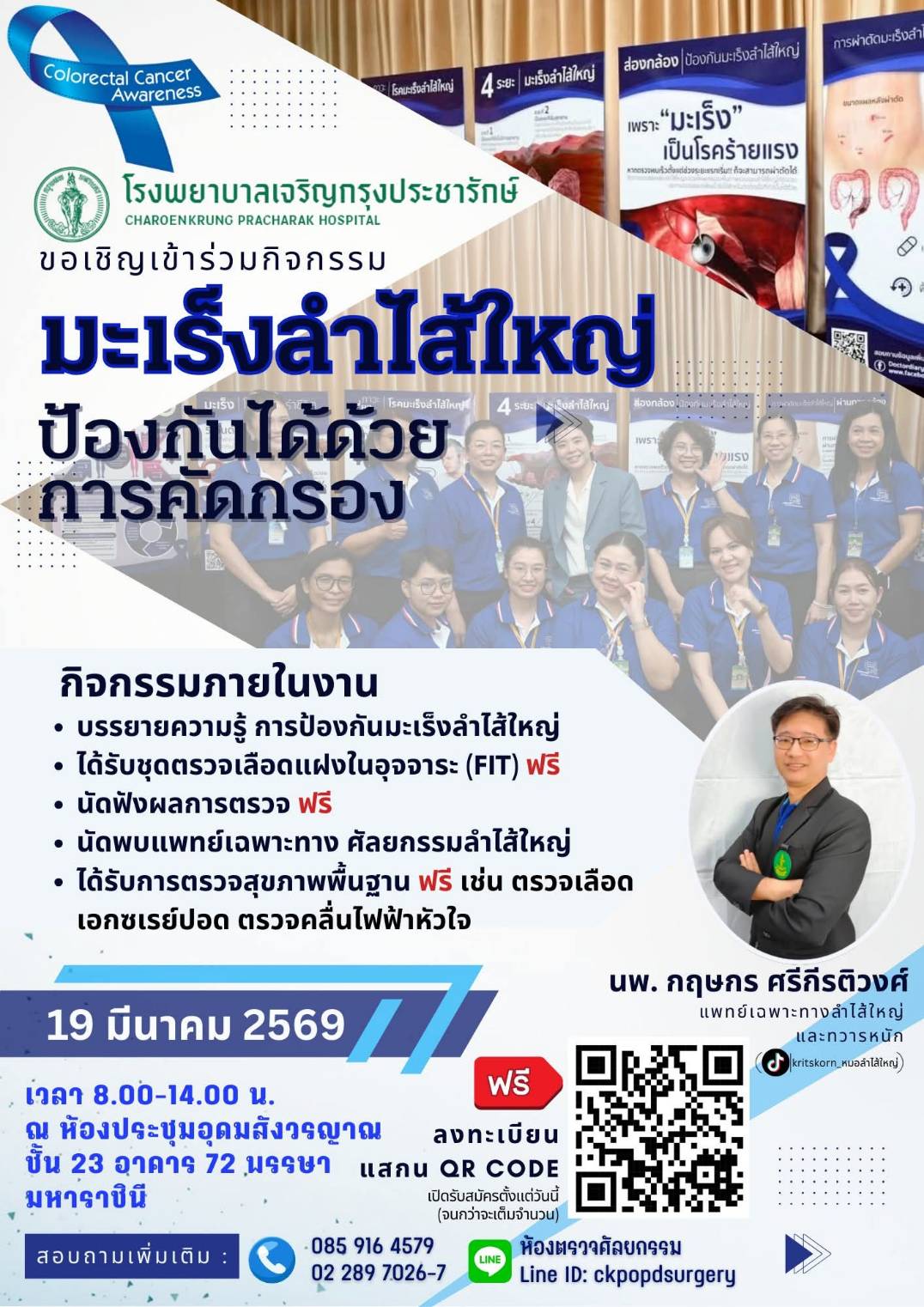 ขอเชิญเข้าร่วมงาน “มะเร็งลำไส้ใหญ่ ป้องกันได้ด้วยการคัดกรอง”