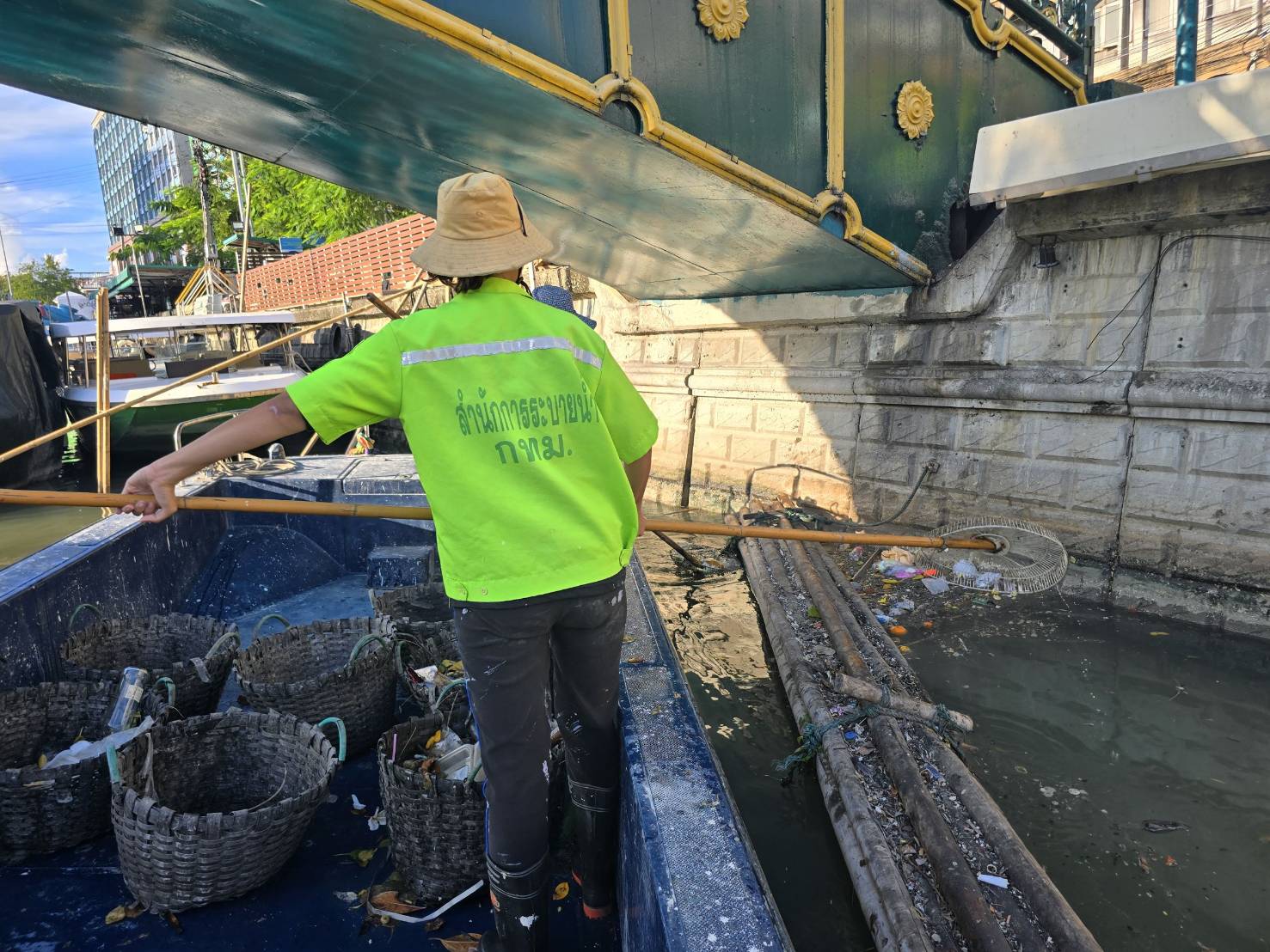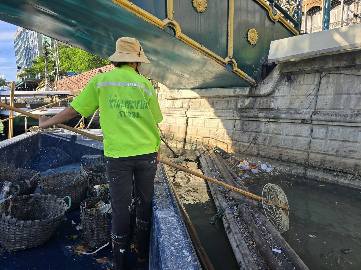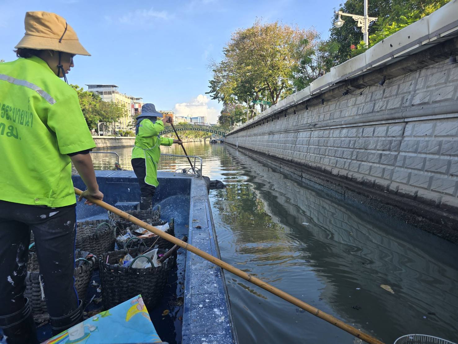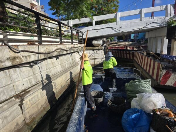 เจ้าหน้าที่ เก็บขยะช่วงสถานีสูบน้ำกรุงเกษม-สะพานเจริญสวัสดิ์-สะพานนพวงศ์-สะพานกษัตริย์ศึก ถึงสี่แยกมหานาค เขตปทุมวันและเขตป้อมปราบศัตรูพ่าย