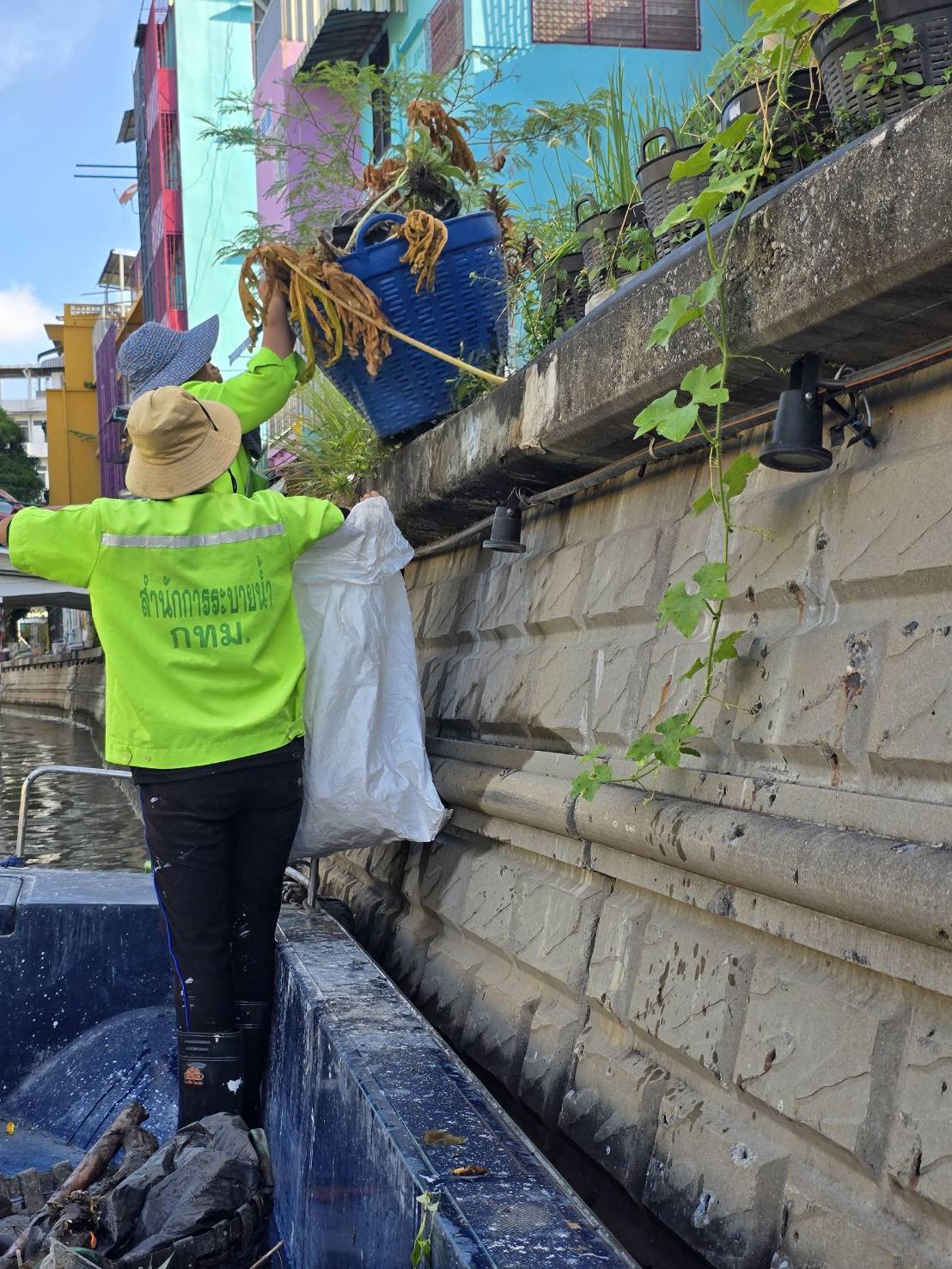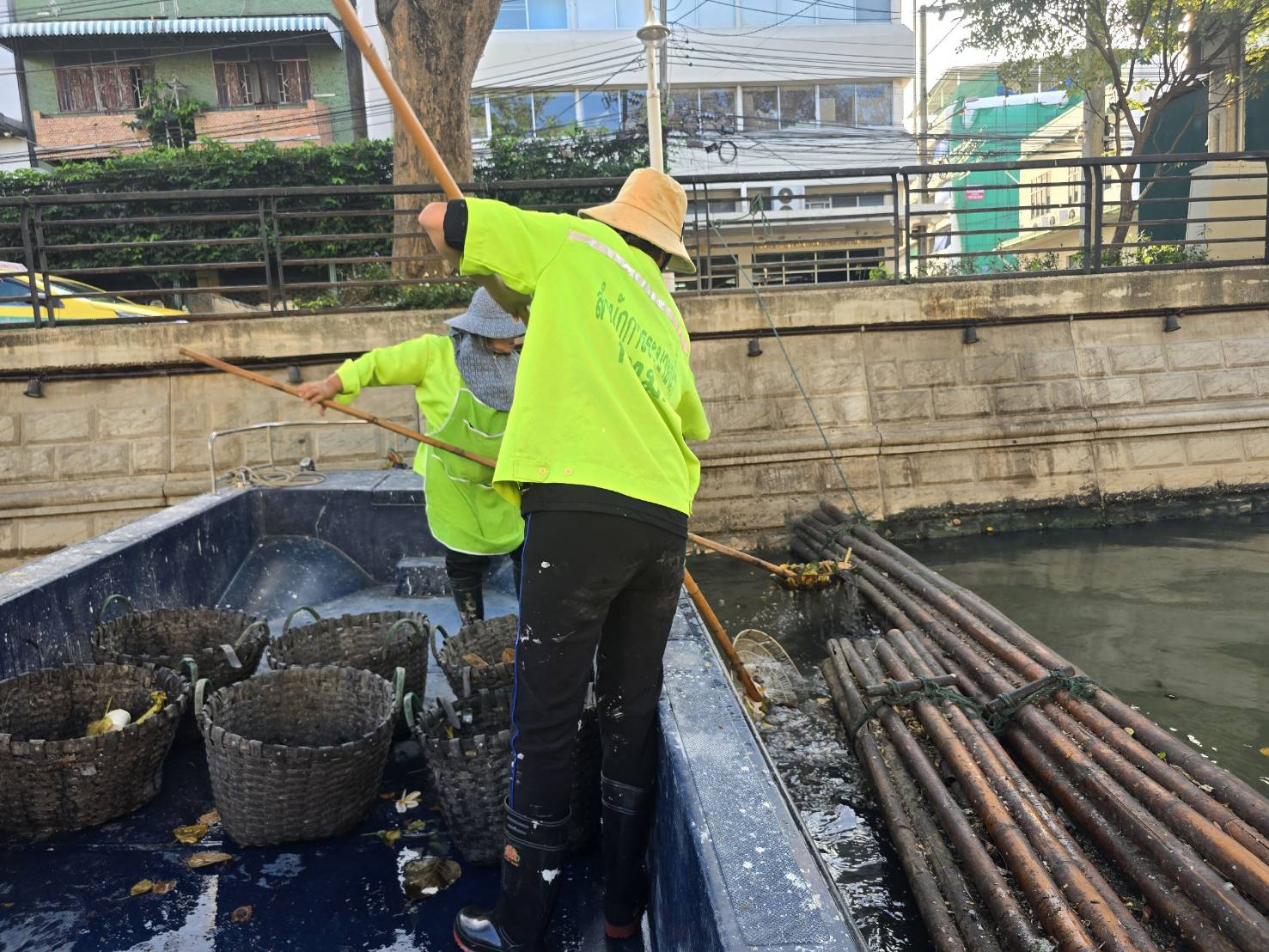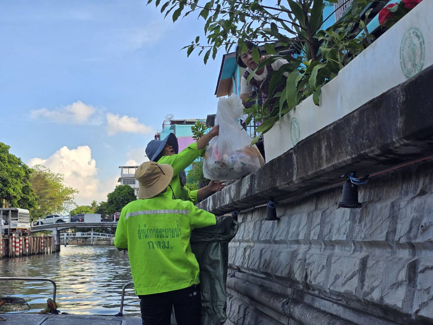 เจ้าหน้าที่ เก็บขยะช่วงสถานีสูบน้ำกรุงเกษม-สะพานเจริญสวัสดิ์-สะพานนพวงศ์-สะพานกษัตริย์ศึก ถึงสี่แยกมหานาค เขตปทุมวันและเขตป้อมปราบศัตรูพ่าย