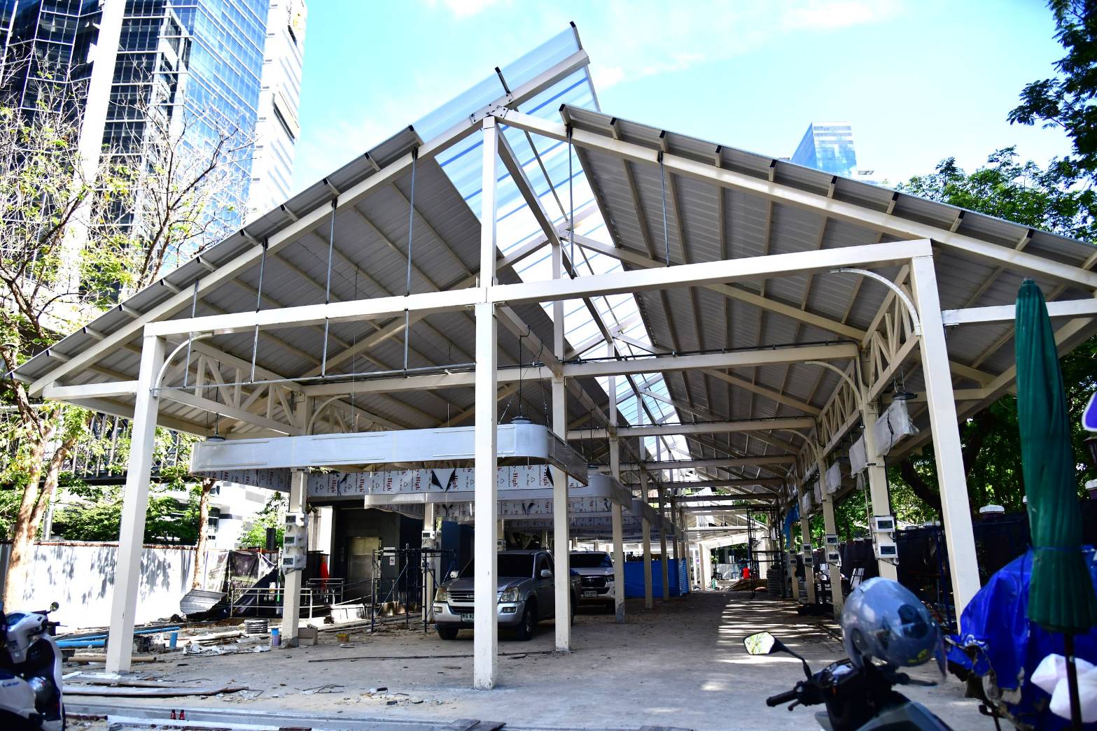 ทั้งนี้ รองผู้ว่าราชการกรุงเทพมหานคร ได้มอบหมายให้สำนักการโยธาเร่งรัดติดตามโครงการก่อสร้างศูนย์อาหาร Hawker Center สวนลุมพินีอย่างต่อเนื่องให้แล้วเสร็จโดยเร็ว สำนักการคลังพิจารณาการจัดเก็บค่าธรรมเนียมการจอดรถยนต์และรถจักรยานยนต์บริเวณลานจอดรถด้านหน้าประตู 5 สวนลุมพินี สำนักงานตลาดกรุงเทพมหานครพิจารณาการบริหารจัดการแผงค้าและพื้นที่ให้ได้มาตรฐาน สะอาด และเป็นระเบียบเรียบร้อย จากการสอบถามผู้รับจ้าง ปัจจุบันโครงการดังกล่าวมีความคืบหน้า 85% จะแล้วเสร็จภายในวันที่ 31 มีนาคม 2569 หลังจากนั้นสำนักการโยธาจะตรวจสอบความเรียบร้อยเพื่อให้เป็นไปตามรายการในสัญญาจ้าง ก่อนรับมอบงานจากผู้รับจ้าง เพื่อส่งต่อให้หน่วยงานที่ดูแลรับผิดชอบดำเนินงานบริหารจัดการต่อไป อย่างไรก็ตามคาดว่าศูนย์อาหาร Hawker Center สวนลุมพินี จะเปิดให้บริการเต็มรูปแบบในเดือนพฤษภาคม 2569