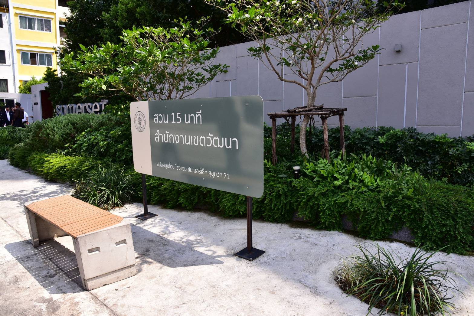 พัฒนาสวน 15 นาที สวนปรีดีพนมยงค์ 45 ซึ่งเขตฯ ได้ปรับปรุงพื้นที่ว่างภายในซอยปรีดีพนมยงค์ 45 จัดทำสวน 15 นาที ตั้งวางม้านั่ง ปูหญ้า ปลูกไม้ดอกไม้ประดับ ปัจจุบันเขตฯ มีสวน 15 นาที จำนวน 11 แห่ง ได้แก่ 1.สวนริมคลองเป้ง พื้นที่ 870 ตารางเมตร 2.Pocket Park 39 ปลายซอยสุขุมวิท 39 พื้นที่ 200 ตารางเมตร 3.Vadhana Pocket Park ทองหล่อ 10 พื้นที่ 200 ตารางเมตร 4.สวนหย่อมหลังเขตวัฒนา พื้นที่ 40 ตารางเมตร 5.สวนสามเก้า ปลายซอยสุขุมวิท 39 ริมคลองแสนแสบ พื้นที่ 365 ตารางเมตร 6.สวนหย่อมพานิชอนันต์ (แห่งที่ 2) ซอยปรีดีพนมยงค์ 42 พื้นที่ 1,984 ตารางเมตร 7.สวนทองหล่อ 9 พื้นที่ 321 ตารางเมตร 8.สวนชุมชนพิบูลเวศม์ ซอยปรีดีพนมยงค์ 13 พื้นที่ 450 ตารางเมตร 9.สวนปรีดีพนมยงค์ 45 พื้นที่ 185 ตารางเมตร 10.สวนริมคลองศาลาลอย ซอยปรีดีพนมยงค์ 14 แยก 16 พื้นที่ 360 ตารางเมตร 11.สวนริมคลอง 39 บริเวณริมคลองแสนแสบ ท้ายซอยสุขุมวิท 39 พื้นที่ 200 ตารางเมตร ทั้งนี้ รองผู้ว่าราชการกรุงเทพมหานคร ได้มอบหมายให้เขตฯ ดูแลบำรุงรักษาสวนที่จัดทำเสร็จแล้วให้มีความร่มรื่นสวยงามอยู่เสมอ รวมทั้งสำรวจพื้นที่ว่างที่มีความเหมาะสมเพื่อจัดทำสวน 15 นาทีเพิ่มเติม ออกแบบพื้นที่ใช้สอยภายในสวนให้ตรงกับความต้องการของประชาชนในพื้นที่ เพื่อให้การจัดทำสวน 15 นาที เป็นไปตามวัตถุประสงค์และเกิดประโยชน์แก่ประชาชนที่เข้ามาใช้บริการอย่างแท้จริง
