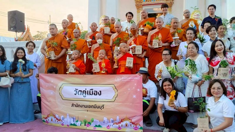 สำนักงานเขตมีนบุรี ได้แจกจ่ายต้นไม้ตามโครงการธนาคารต้นไม้ เพื่อให้ประชาชนนำไปเวียนเทียนภายในวัด แทนการใช้ธูปเทียน ลดควัน และฝุ่นละอองที่อาจเกิดขึ้นเมื่อเราจุดธูปและเทียน ส่งเสริมให้ประชาชนมีส่วนร่วมในการดูแลรักษาสิ่งแวดล้อม เพิ่มพื้นที่สีเขียวตามโครงการต้นไม้บ้านต้น สร้างกำแพงกรองฝุ่น และเป็นการปลูกฝังจิตสำนึกที่ดีต่อส่วนรวม และยังส่งเสริมการทำนุบำรุงพระศาสนา การน้อมนำหลักธรรมในวันสำคัญทางพระพุทธศาสนาไปสู่การปฏิบัติอย่างเป็นรูปธรรม