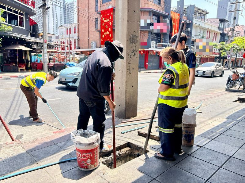 (3 มี.ค. 69) ดร.นรเทพ ชูพูล ผู้อำนวยการเขตปทุมวัน พร้อมด้วยเจ้าหน้าที่ฝ่ายโยธา เจ้าหน้าที่ฝ่ายเทศกิจ และเจ้าหน้าที่หน่วย Best ลงพื้นที่ดำเนินการเปิดท่อระบายน้ำสาธารณะ ขุด ลอก ตักไขมันที่อุดตันในท่อระบายน้ำเพื่อเปิดทางน้ำไหล แก้ไขปัญหาน้ำท่วมขัง บริเวณถนนบรรทัดทอง