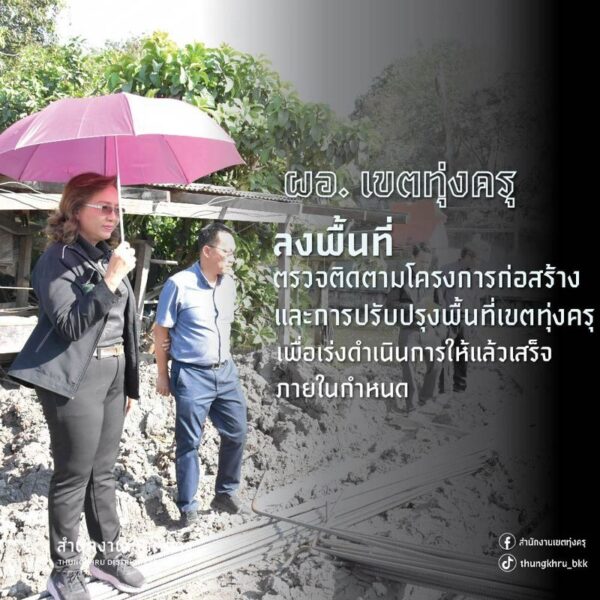 วันที่ 2 มีนาคม 2569 เวลา 14.00 น. นางประเพ็ญ ดิษฐสุวรรณ ผู้อำนวยการเขตทุ่งครุ พร้อมด้วยนายสิริวัฒน์ ไทยสุริโย หัวหน้าฝ่ายโยธา และเจ้าหน้าที่ฝ่ายโยธาผู้เกี่ยวข้อง ลงพื้นที่ตรวจติดตามการดำเนินงานการก่อสร้างและการปรับปรุงพื้นที่ ณ บริเวณต่างๆ ในพื้นที่เขตทุ่งครุ ดังนี้ 👇