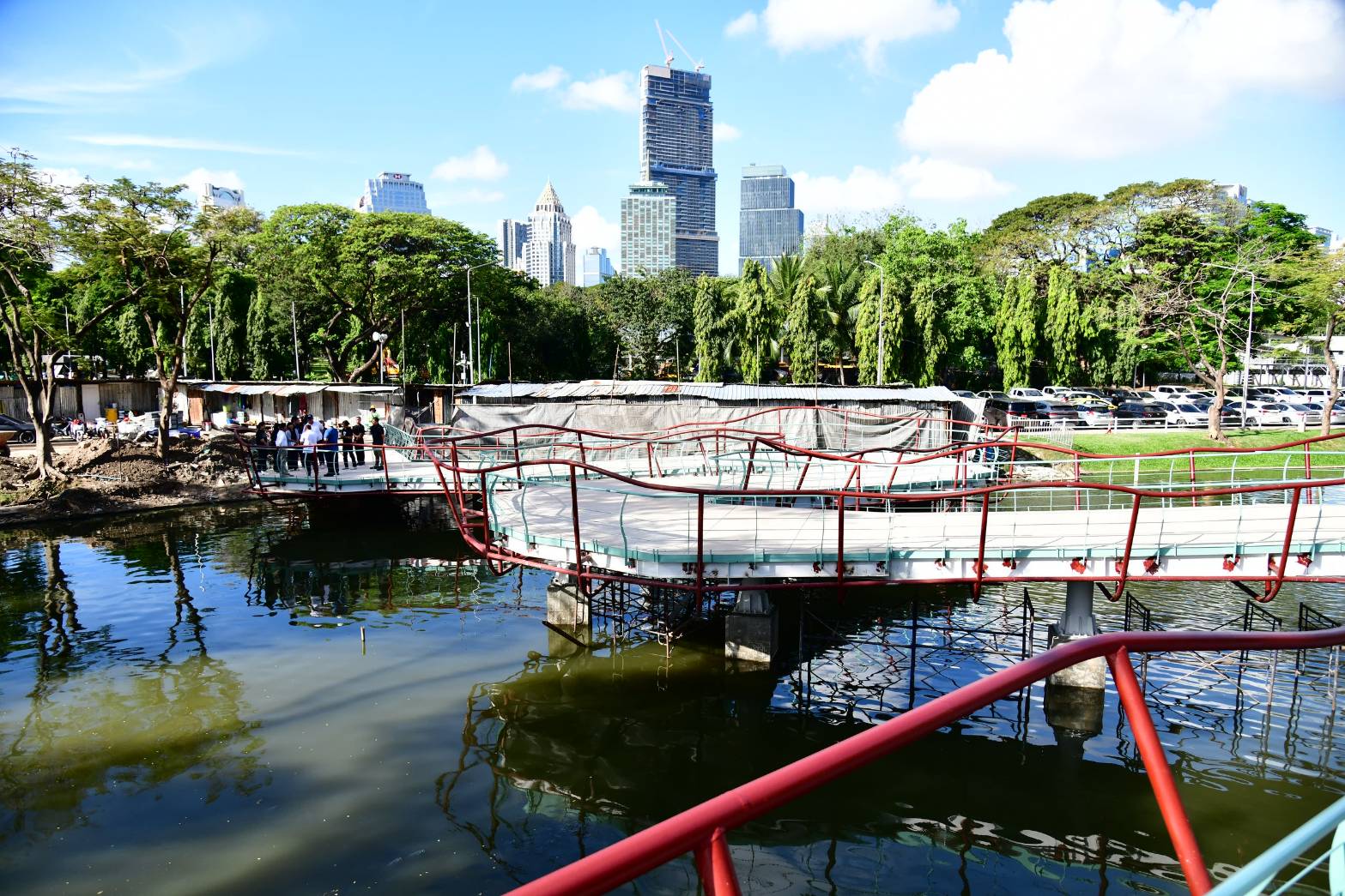 On February 28, 2026, Mr. Chakkaphan Phewngam, Deputy Governor of Bangkok, conducted a site inspection to monitor the final stages of the Lumphini Park Improvement project, popularly known as the “Green Bridge”. This vital infrastructure endeavor, managed by the BMA Environment Department, is designed to create a seamless 250-meter elevated walkway connecting the Lumphini Park directly to the Benchakitti Park in Pathum Wan District. Accompanied by Environment Department Director-General Woranuch Suaykakaow and a team of civil engineers, the Deputy Governor reviewed the project’s multifaceted components, including the construction of the bridge’s main foundation, the demolition of outdated radio station structures, and the comprehensive renovation of auxiliary buildings for public use.