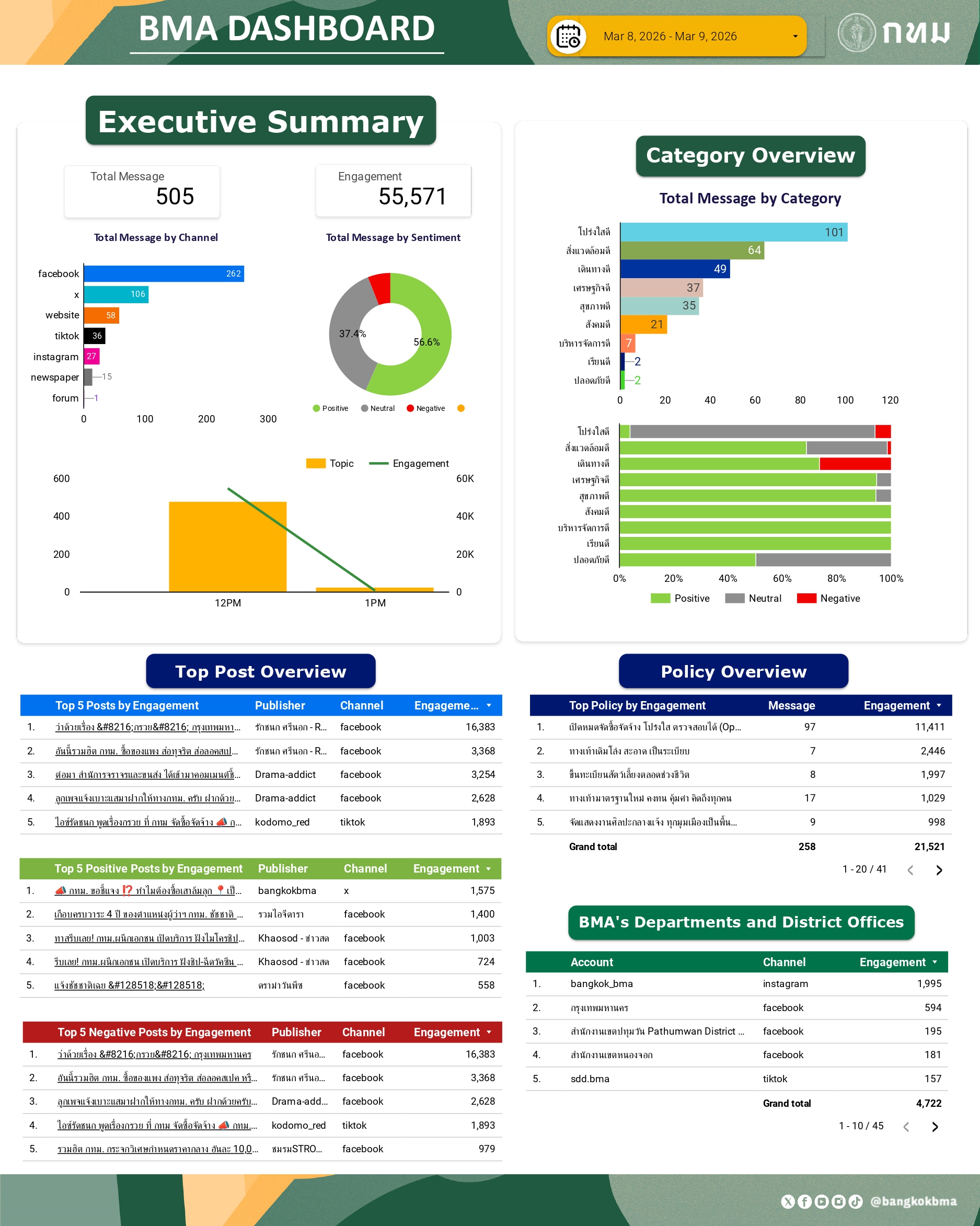 ภาพรวมการกล่าวถึงกรุงเทพมหานครในสื่อออนไลน์ วันที่ 9 มี.ค. 69
